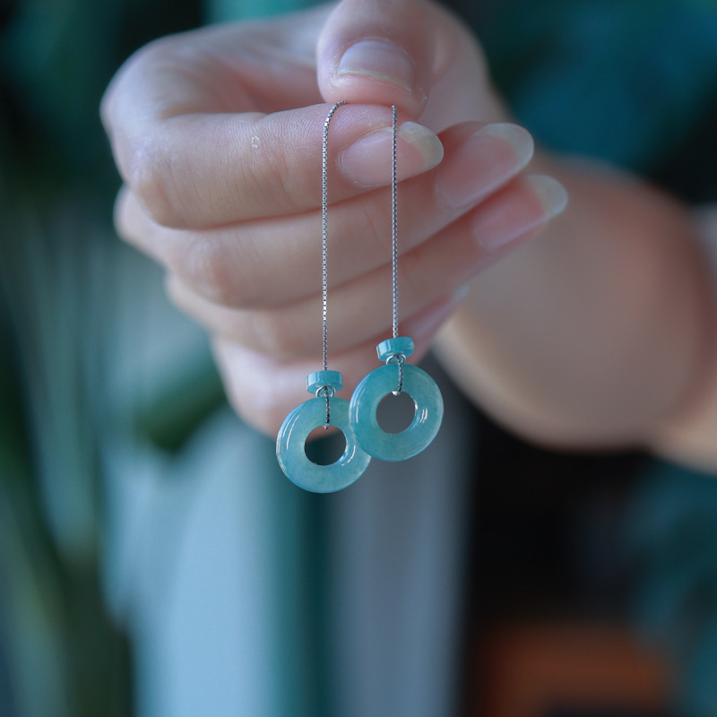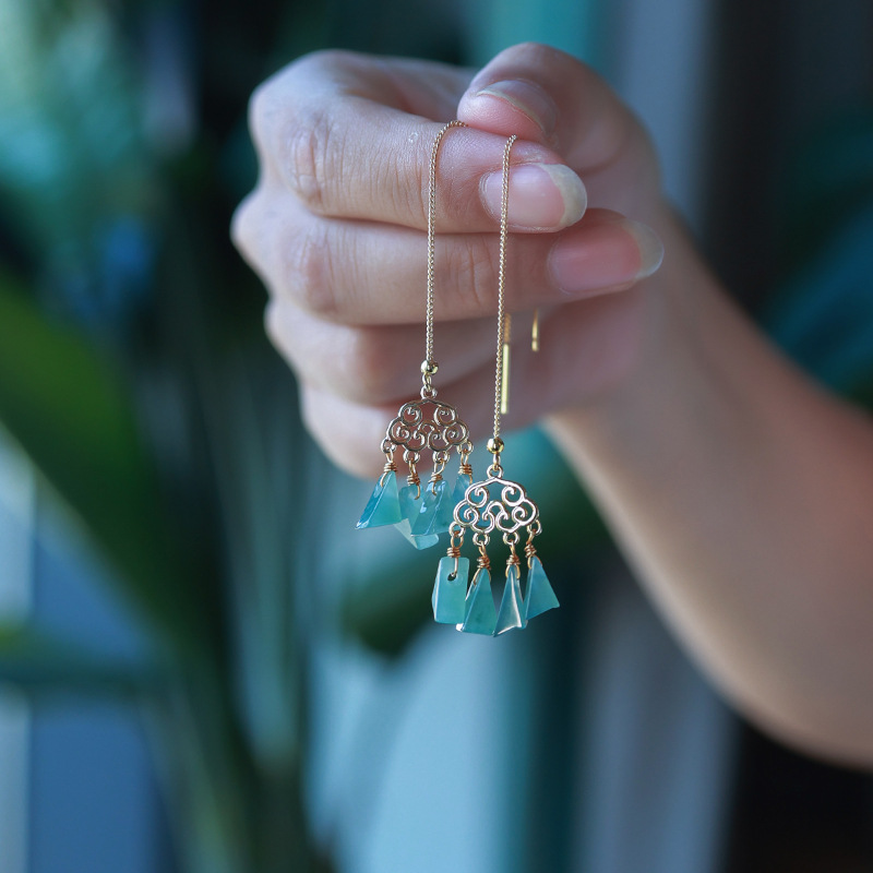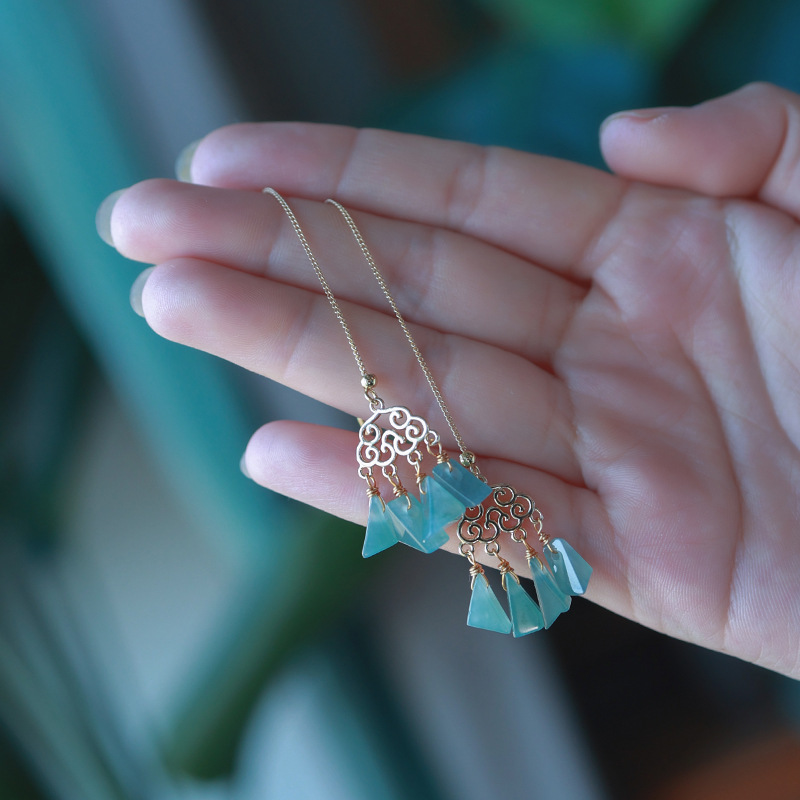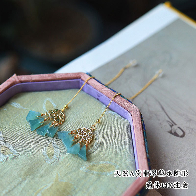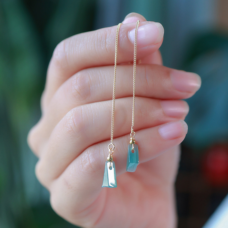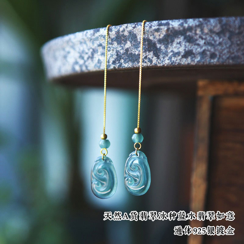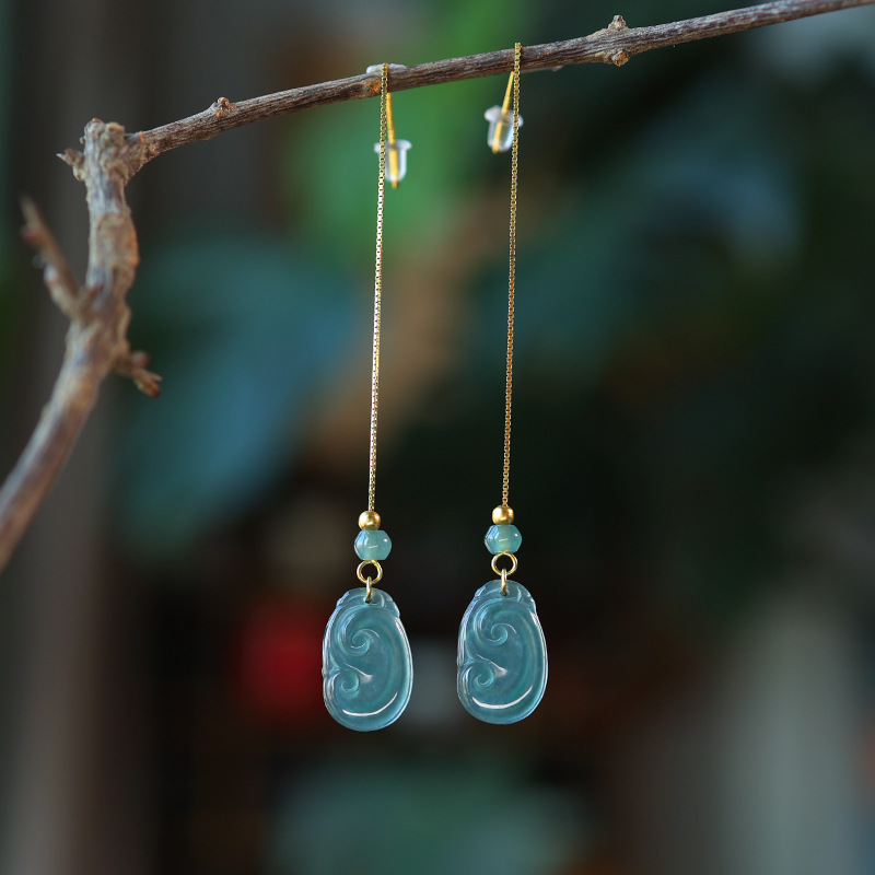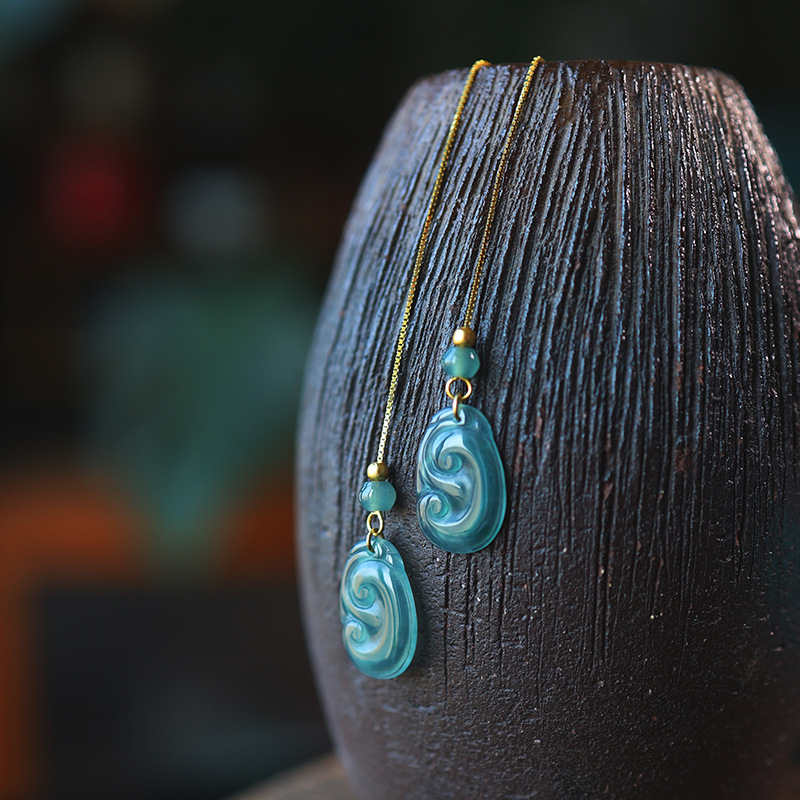 16. Новое поступление, серьги с полыми серьгами изумрудно-синей воды, узел Ruyi