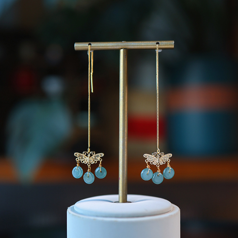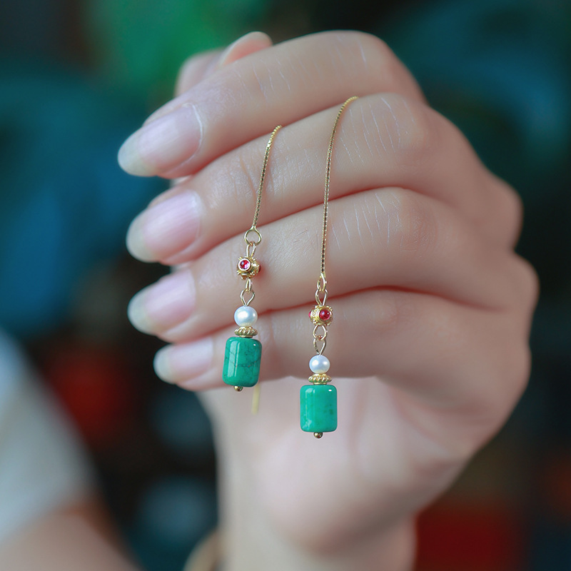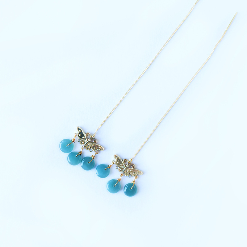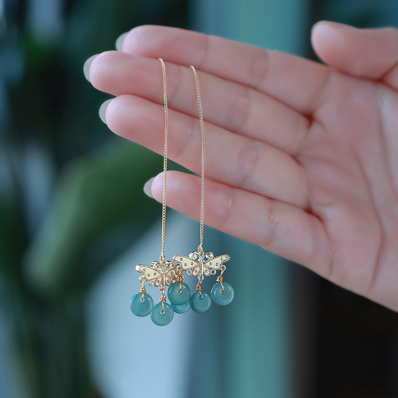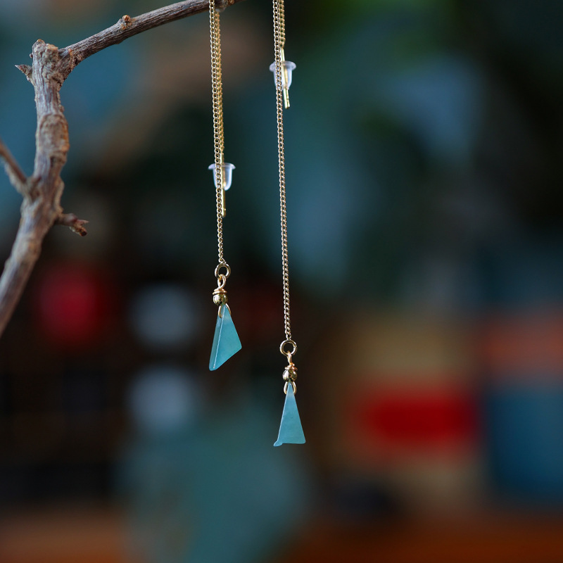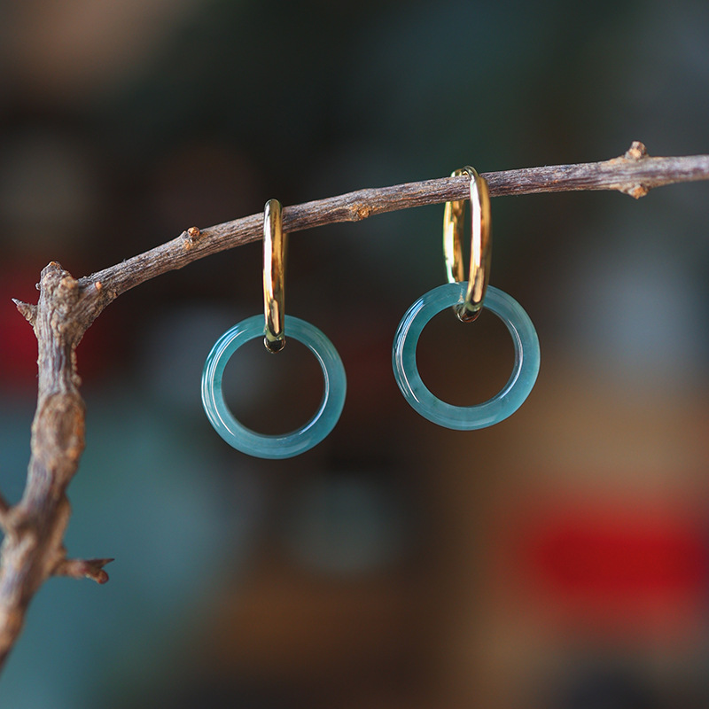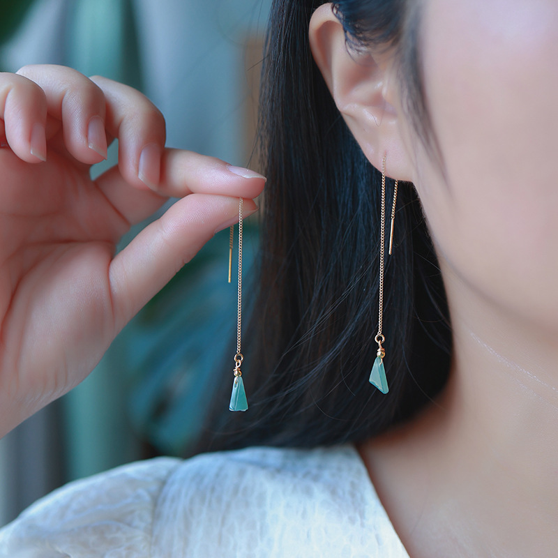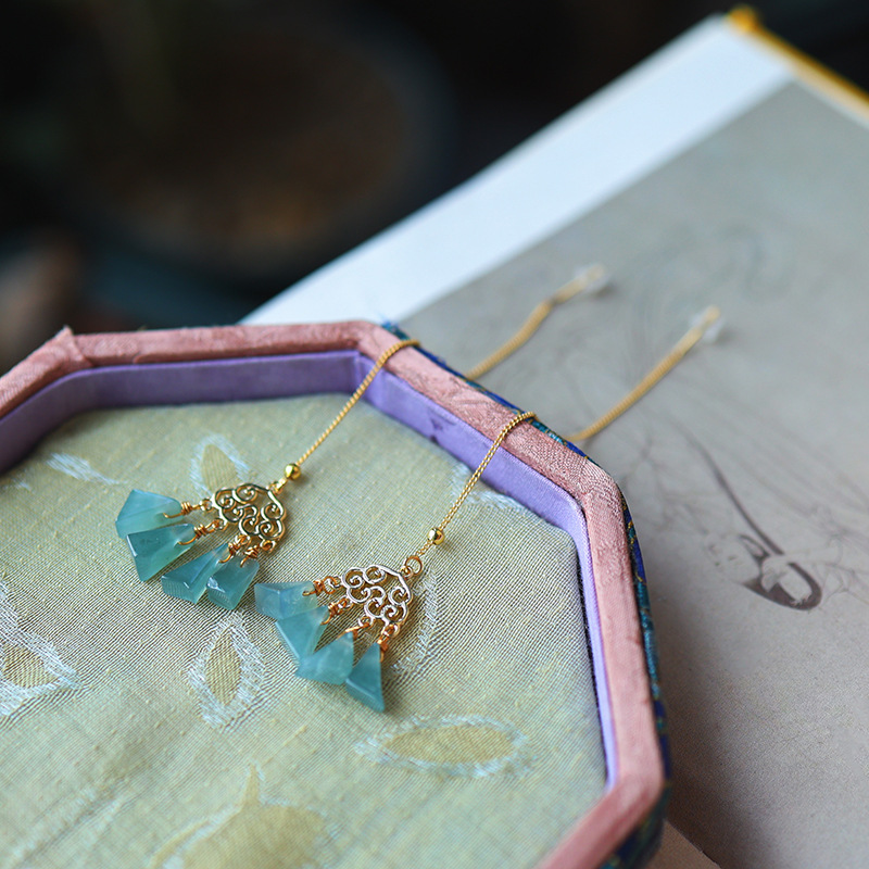 16. Новое поступление, серьги с полыми серьгами изумрудно-синей воды, узел Ruyi