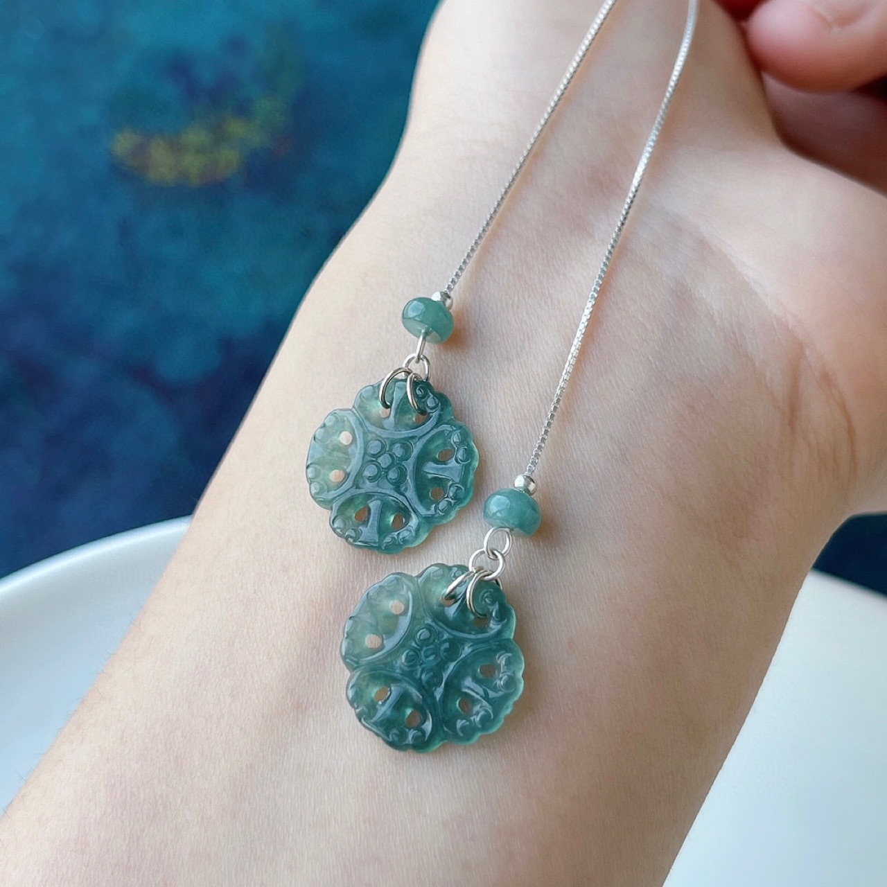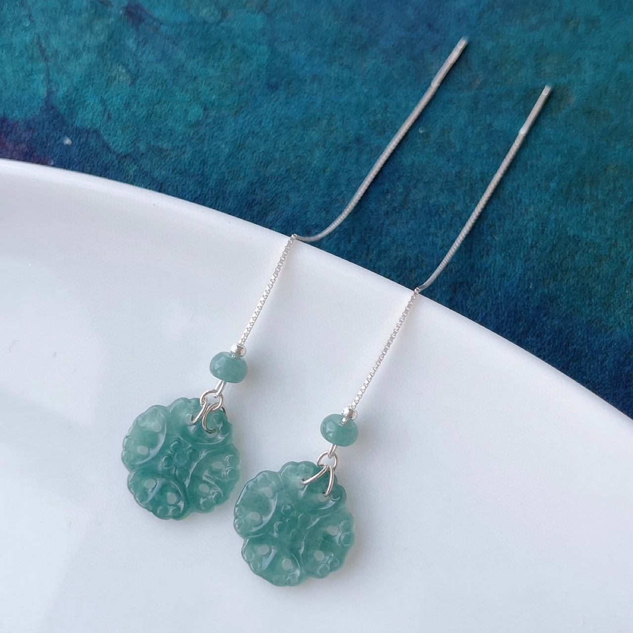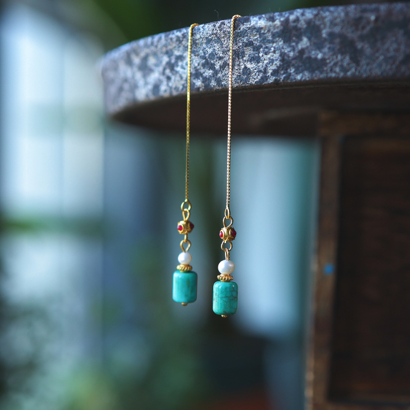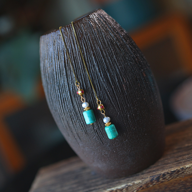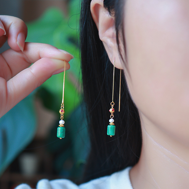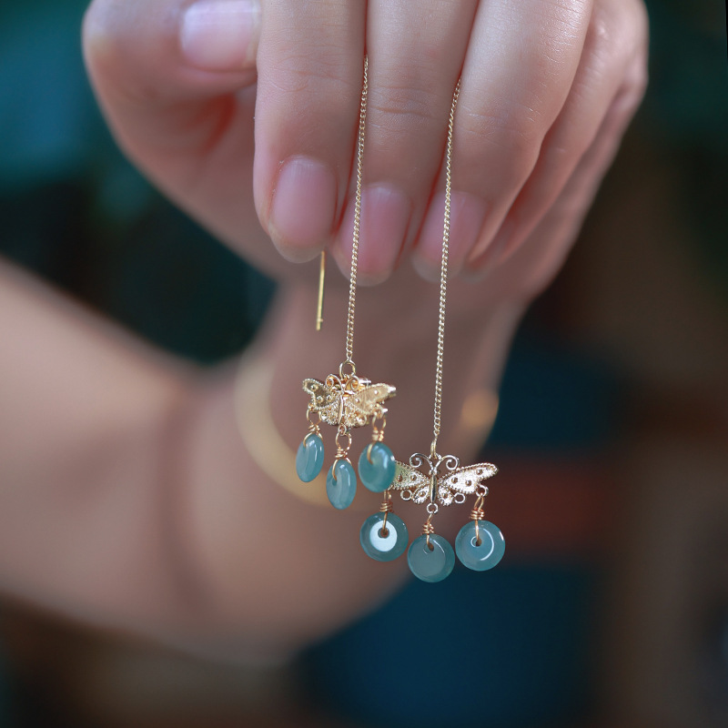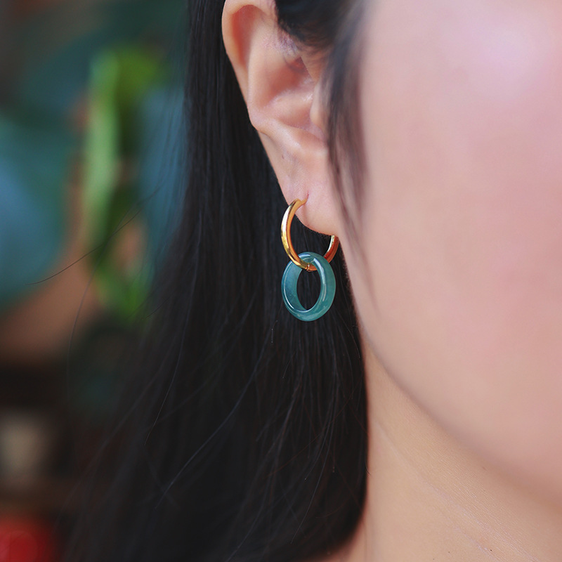 16. Новое поступление, серьги с полыми серьгами изумрудно-синей воды, узел Ruyi