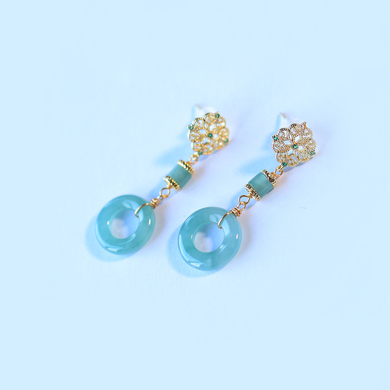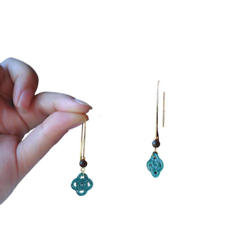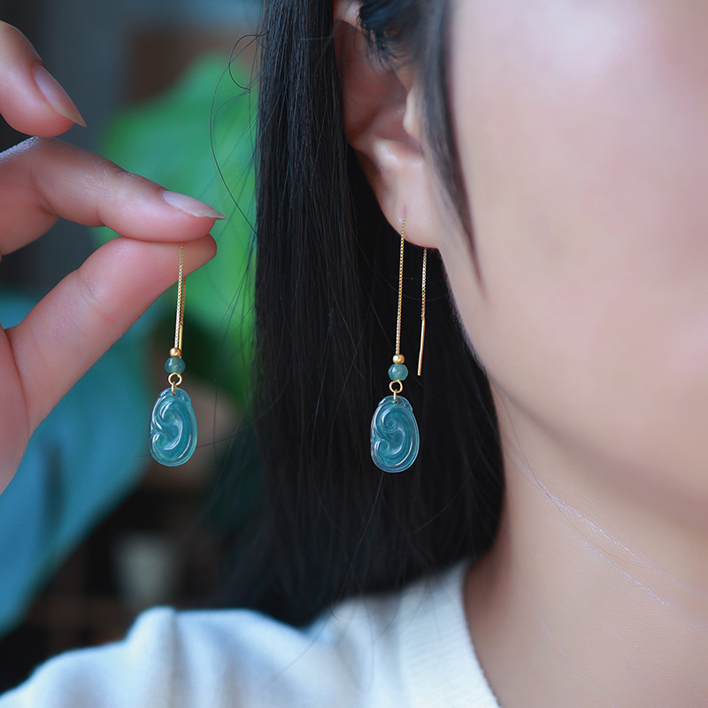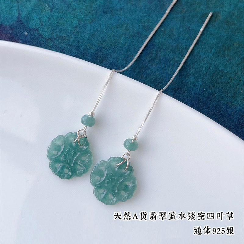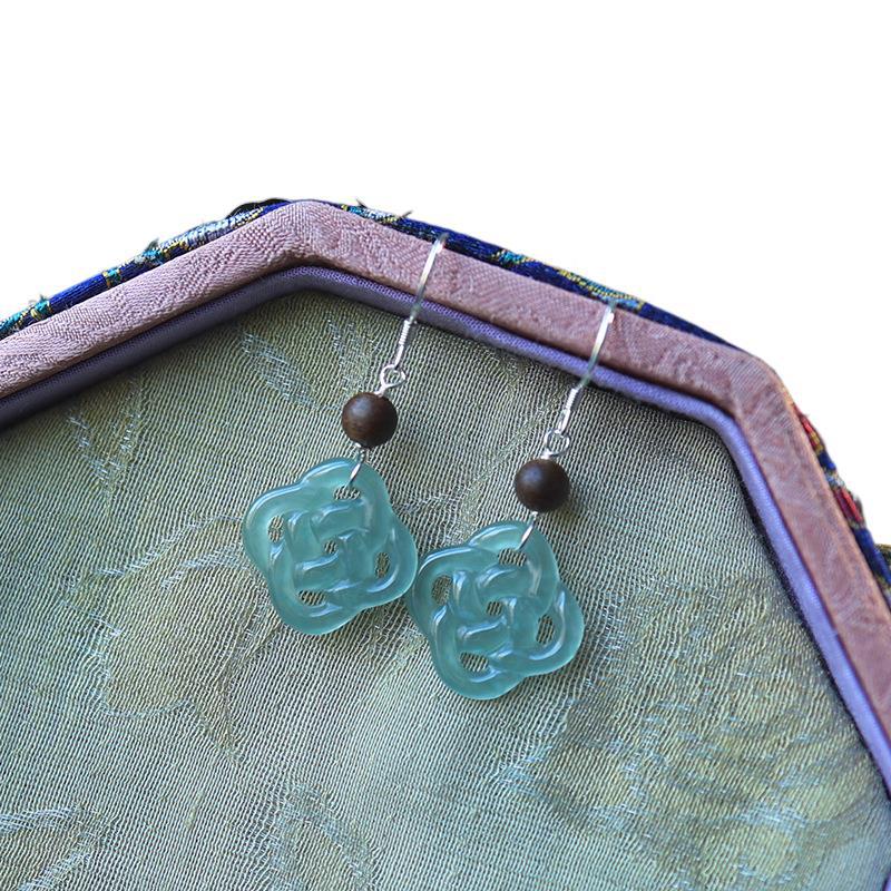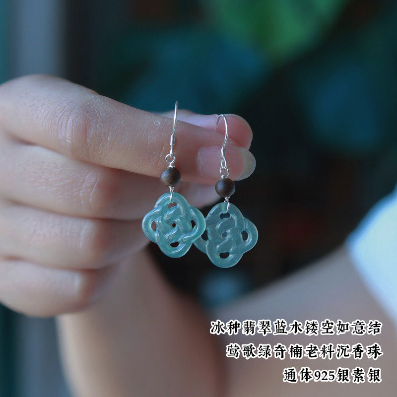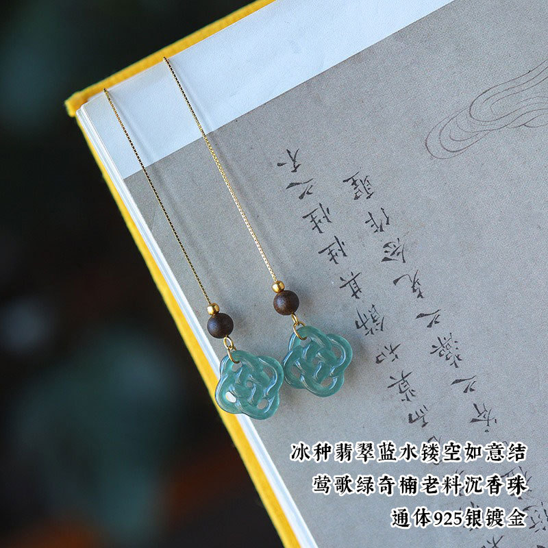 Серьги Amazon в винтажном стиле, из серебра 925 пробы, с натуральным нефритом, синие, с полым узором «Руйи», серьги с агаровым деревом Циньань