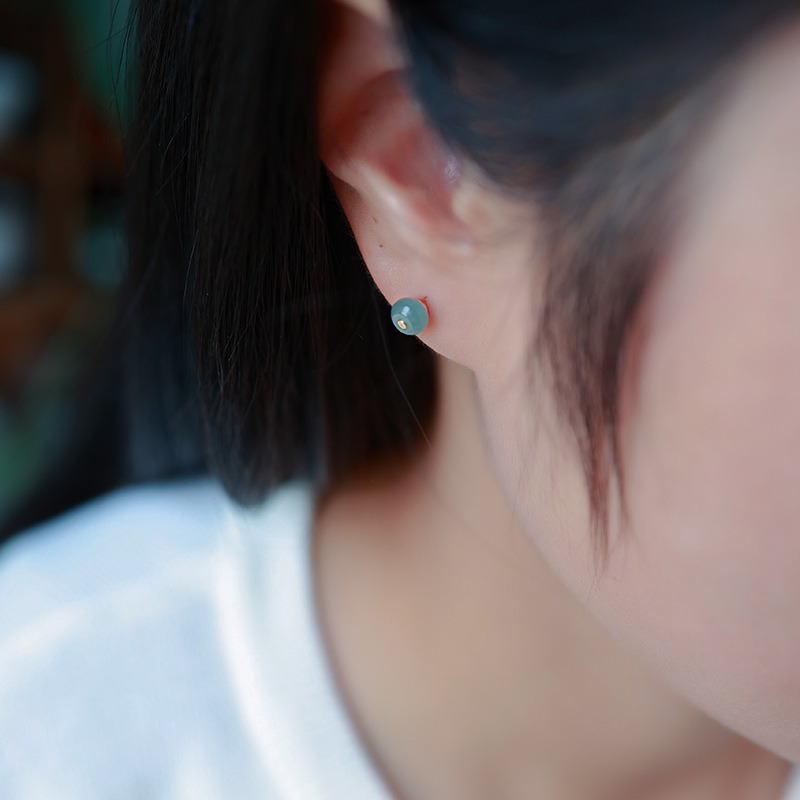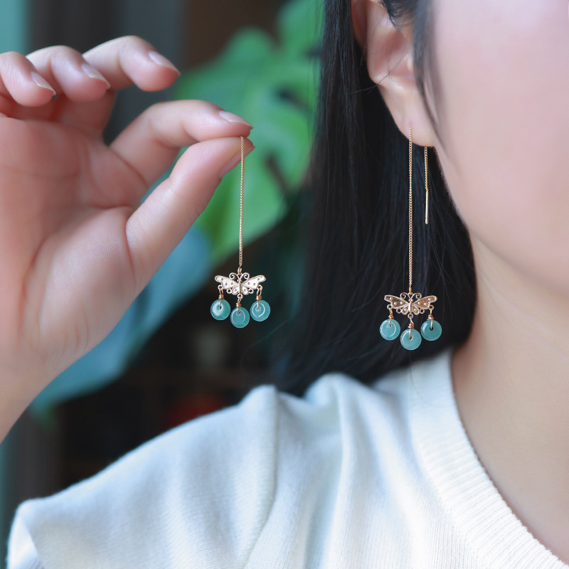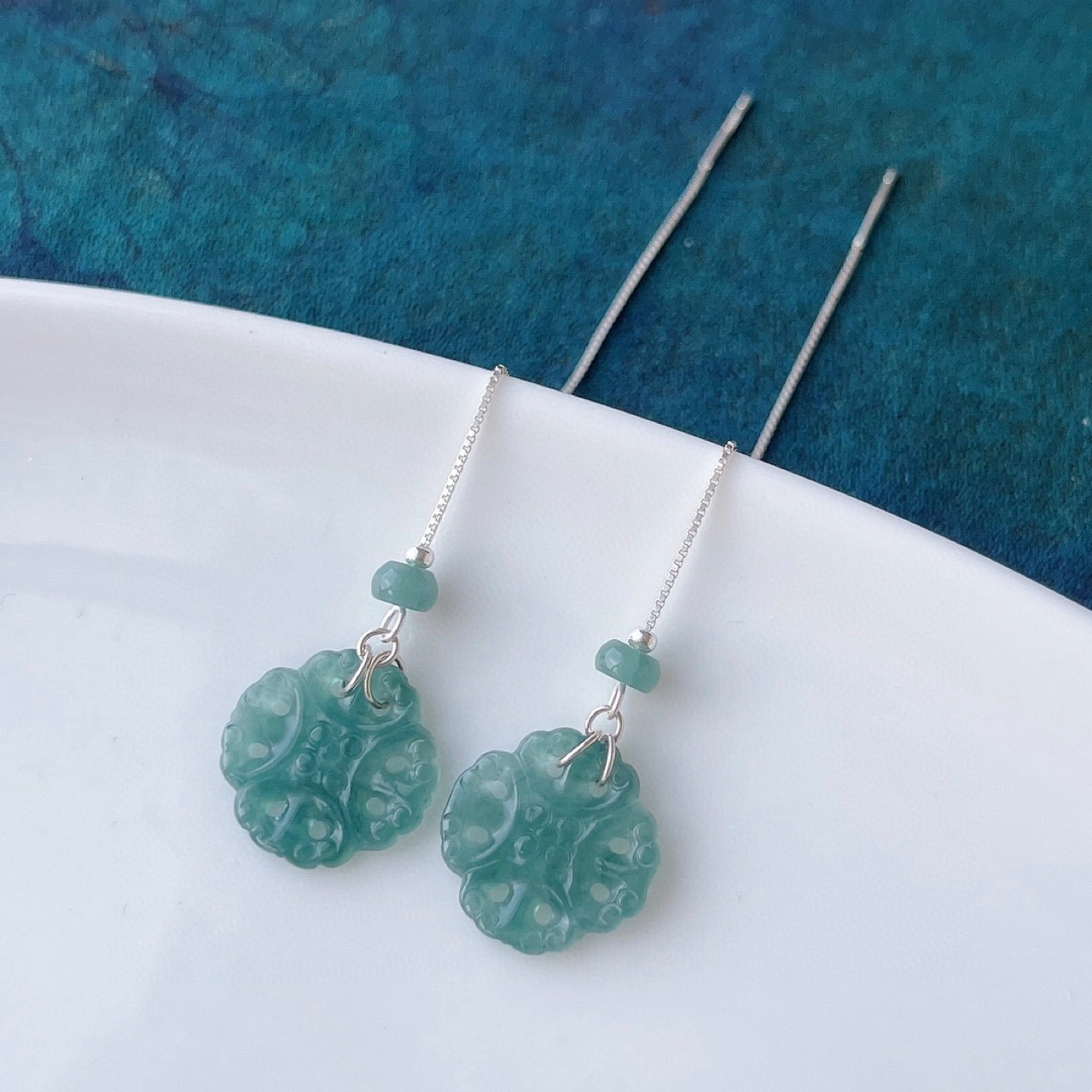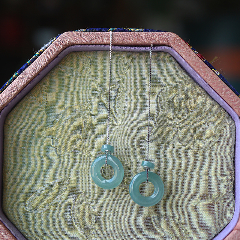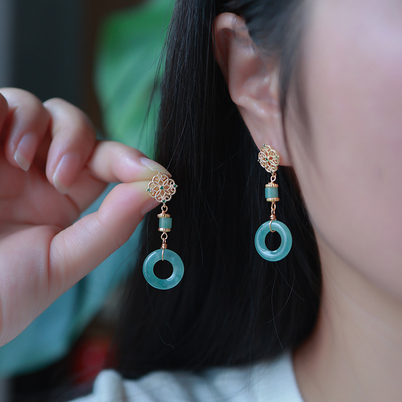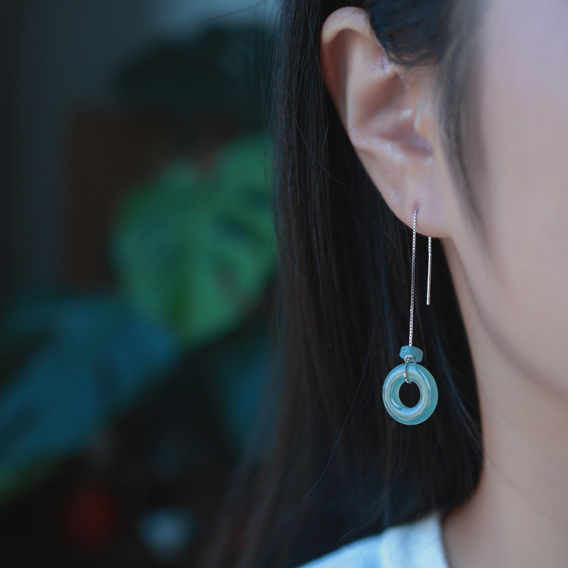 Серьги Amazon в винтажном стиле, из серебра 925 пробы, с натуральным нефритом, синие, с полым узором «Руйи», серьги с агаровым деревом Циньань