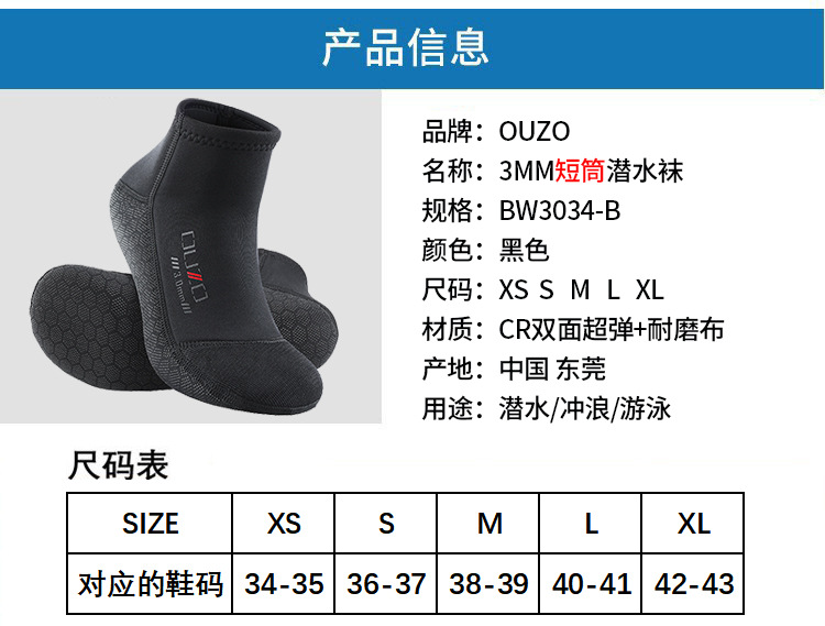 Новые 3 мм короткоствольные водолазные носки OUZO Подводное плавание Подводное носки CR Супер пуленепробиваемые нескользящие и износостойкие плавательные теплые пляжные носки
