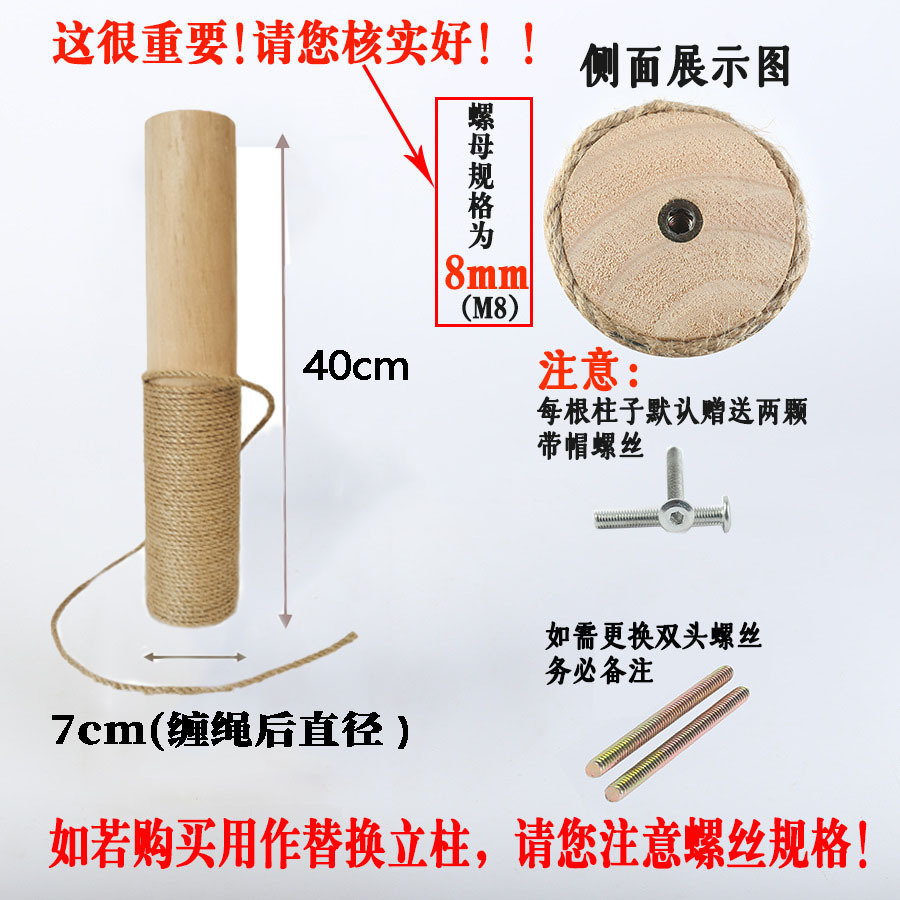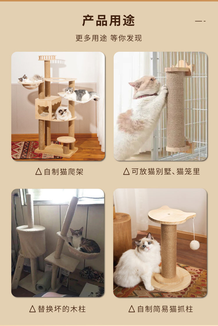 Деревянная стойка для кошек, сменная стойка для когтетроя, аксессуары для самостоятельной сборки, сизалевая стойка, стойка из джутовой веревки