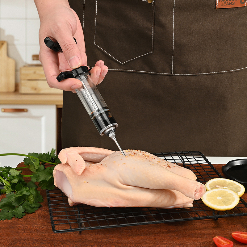 Шприц из индейки Приправа для барбекю Инъекция Кухонный инструмент из нержавеющей стали с шкалой Рождественская индейка Барбекю Инъекция