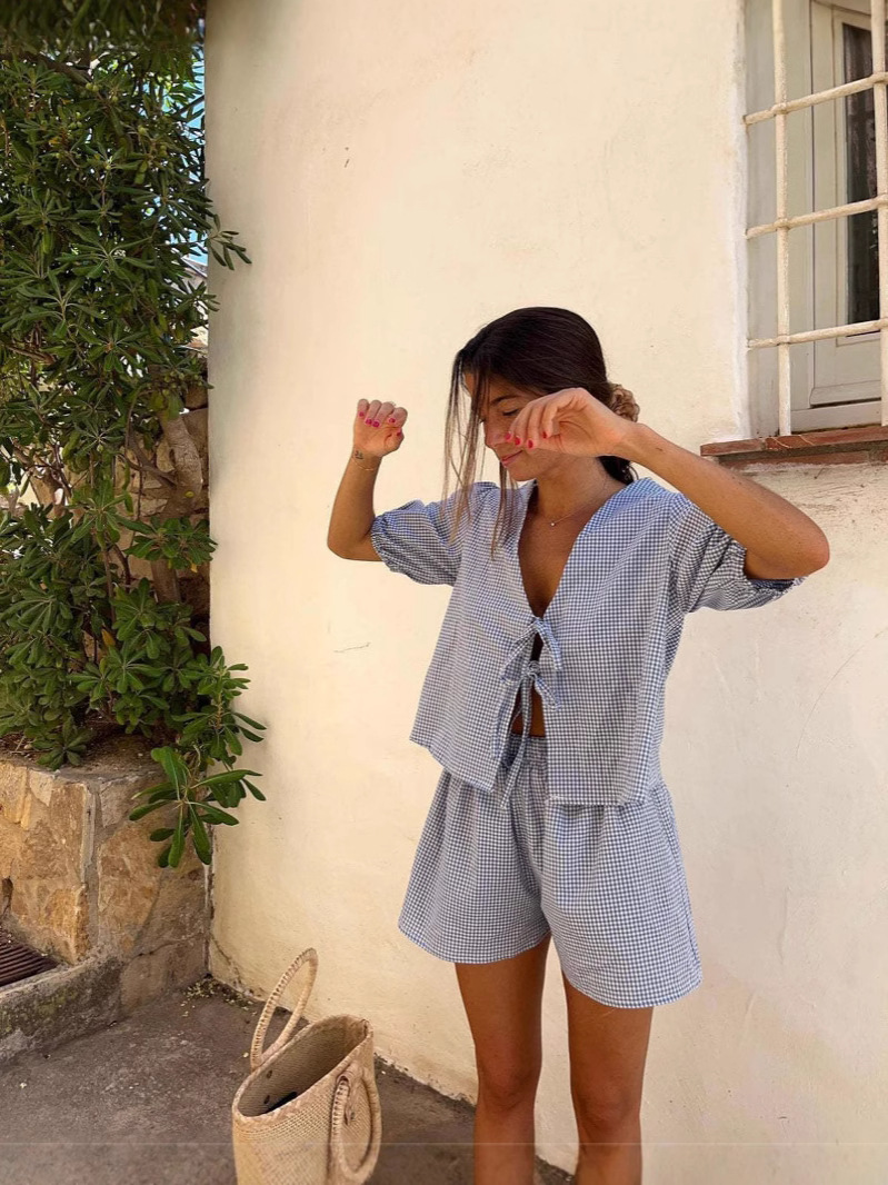 2024 новая европейская и американская женская клетка в полоску резиновые манжеты повседневная мода шнурки эластические шорты