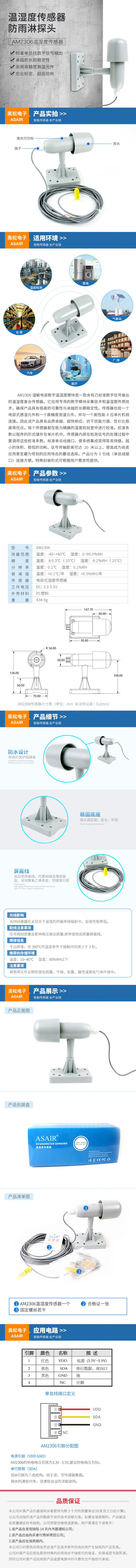 AM2306 Открытый цифровой датчик температуры и влажности анти-дождевой и пылевой чувствительный к влаге конденсаторный зонд ASAIR/Oson