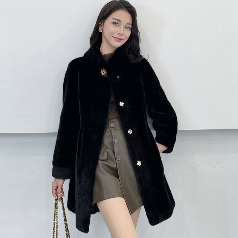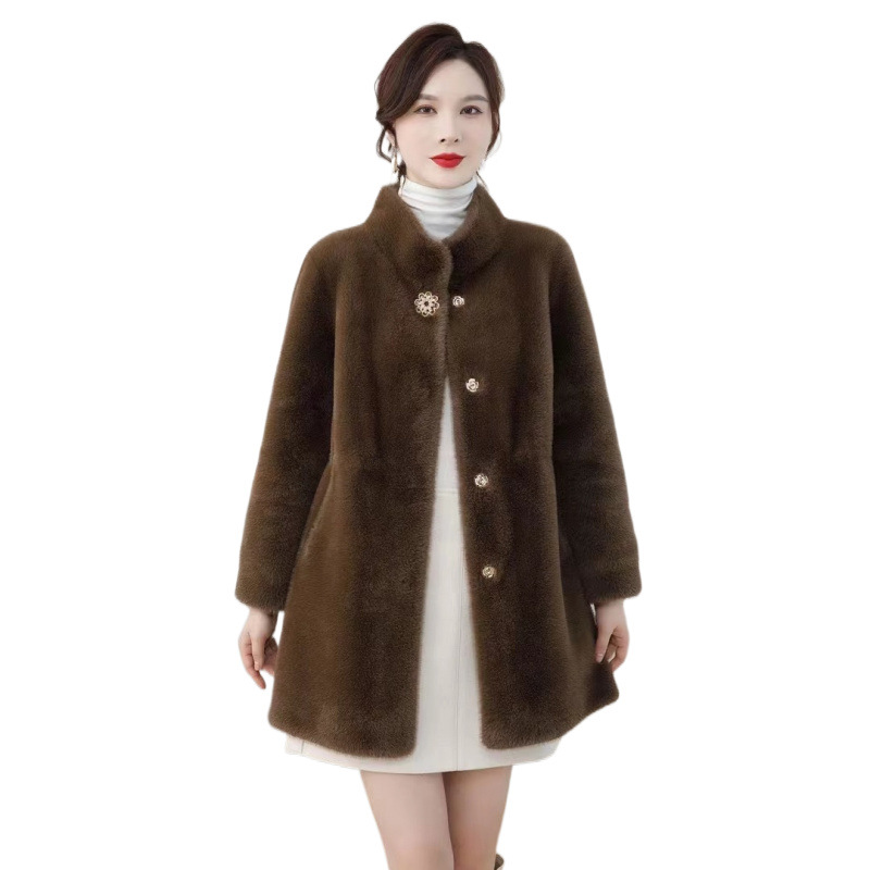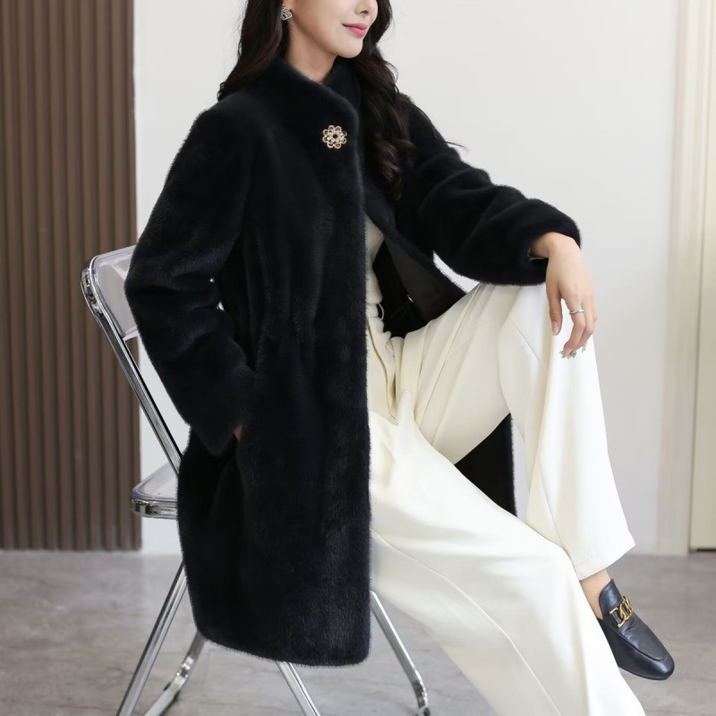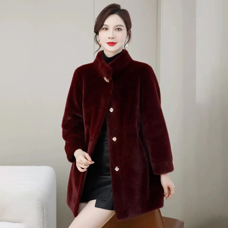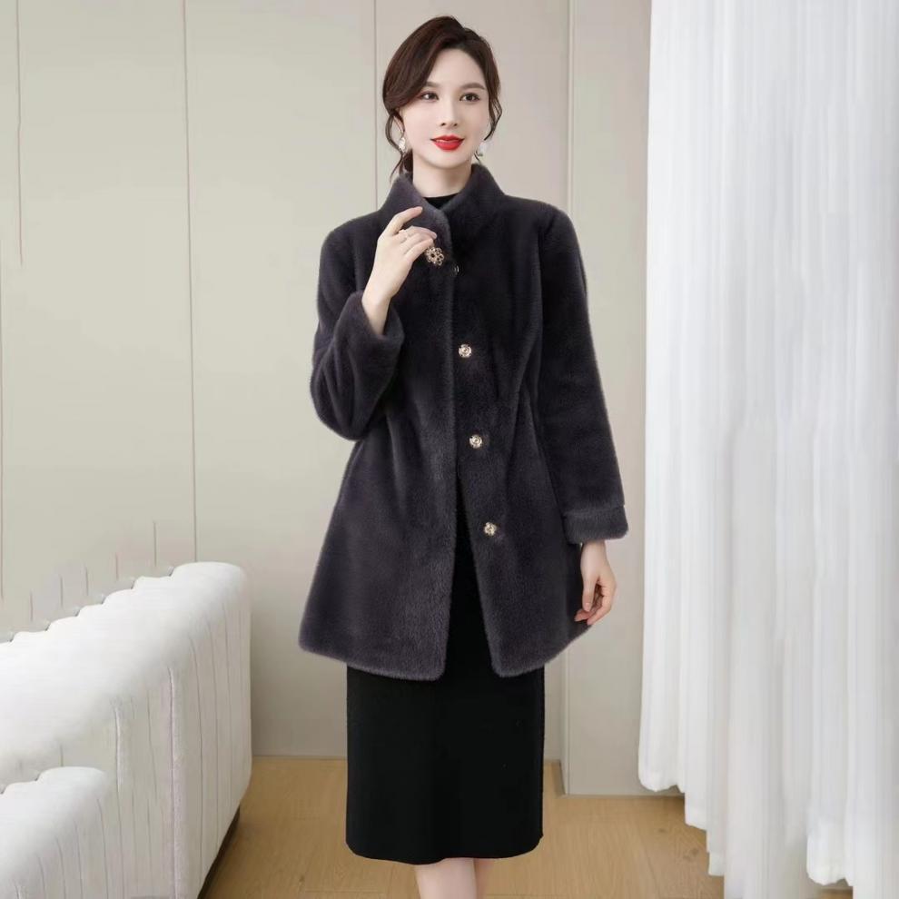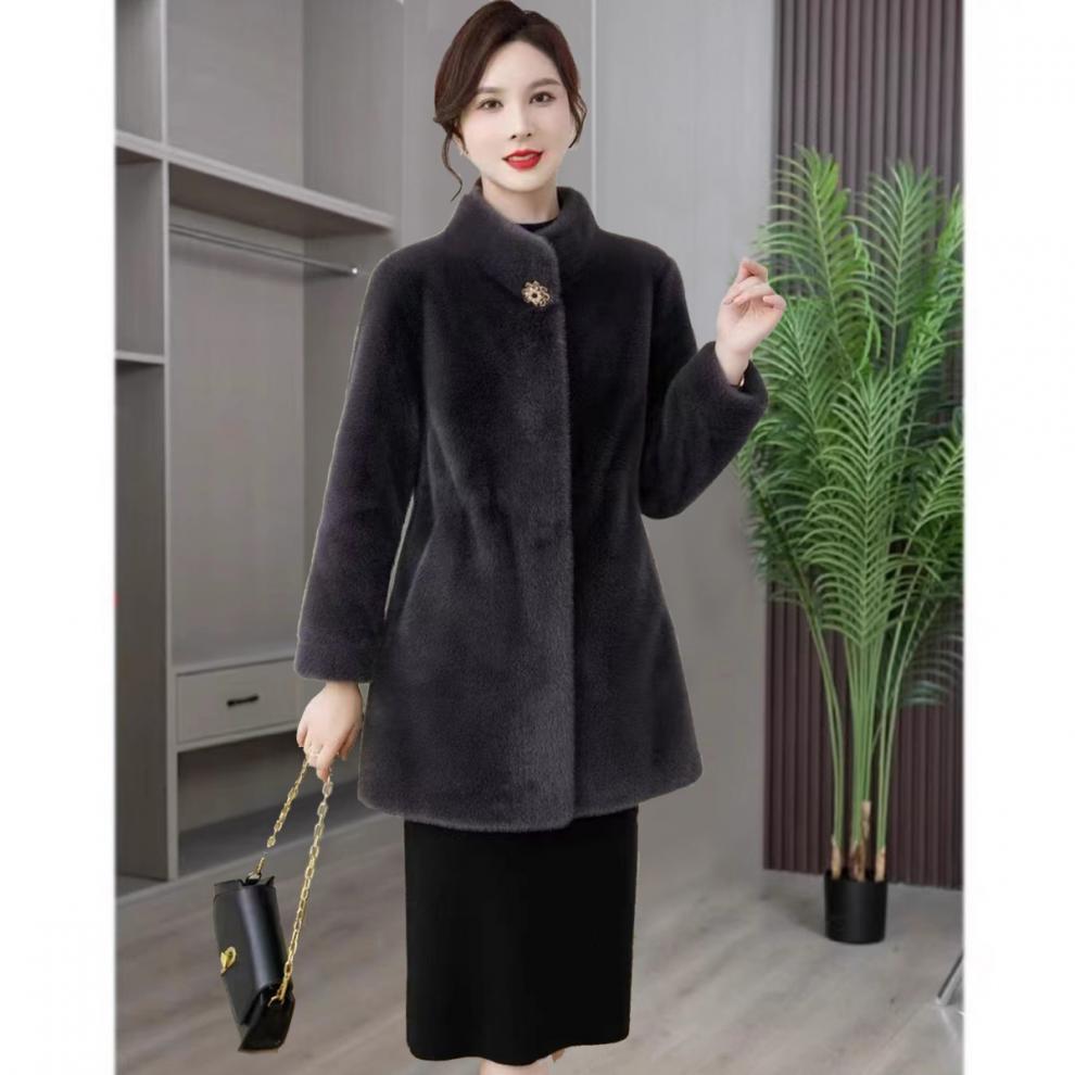 Кожаное пальто норковый женский средний и длинный свободный большой размер мехового пальто среднего и пожилого возраста благородная мама
