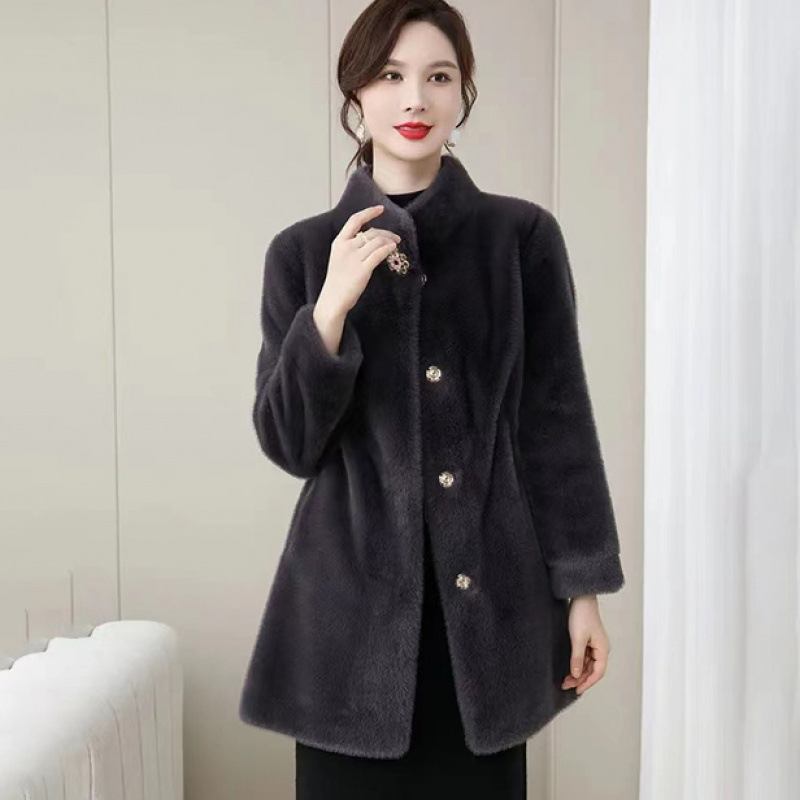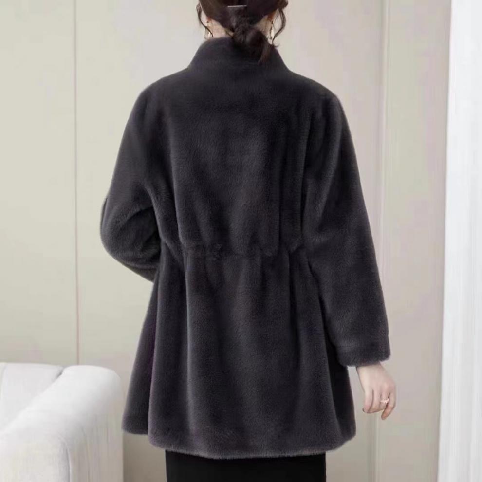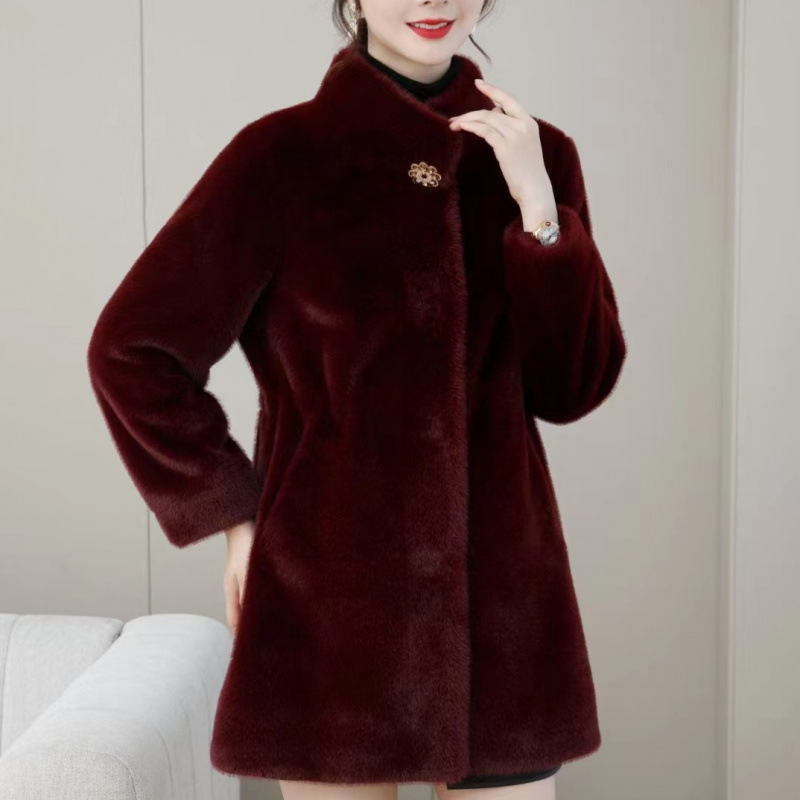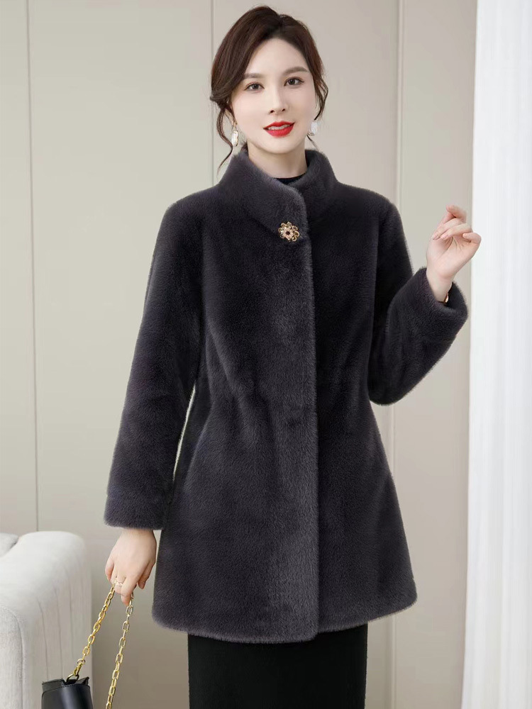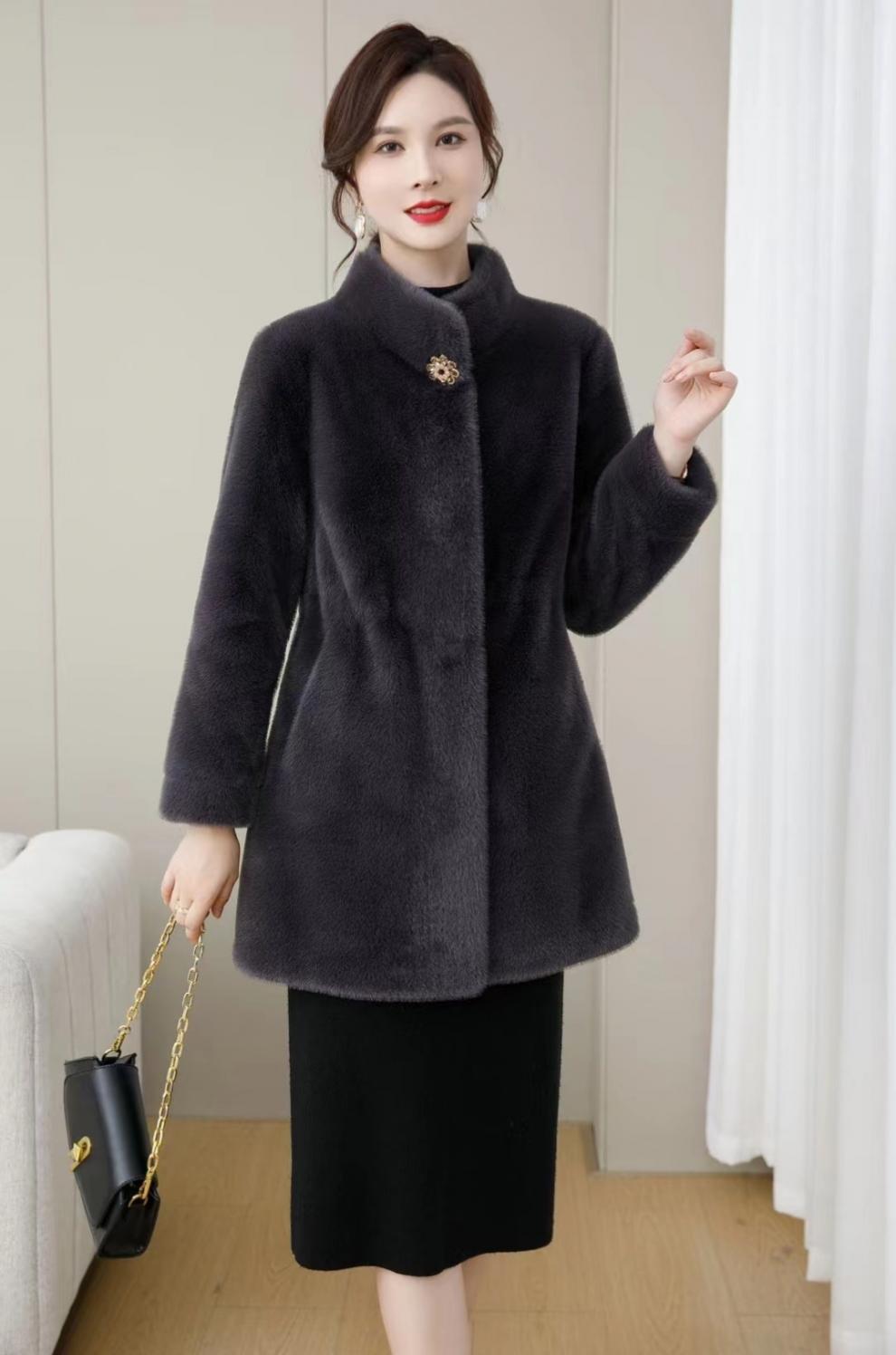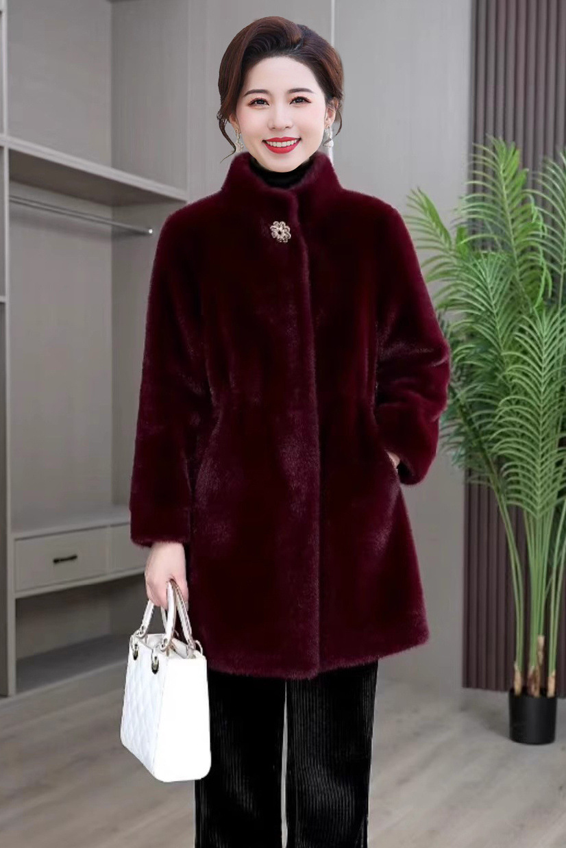 Кожаное пальто норковый женский средний и длинный свободный большой размер мехового пальто среднего и пожилого возраста благородная мама