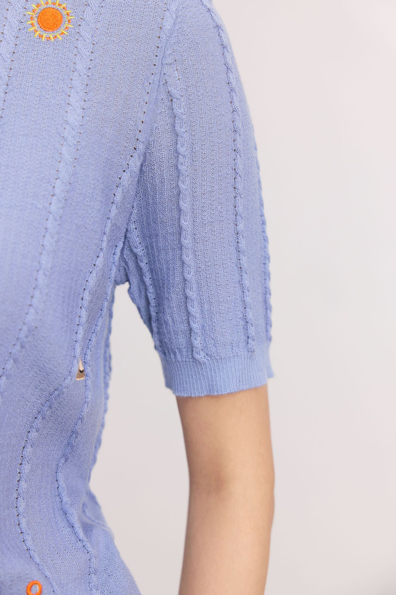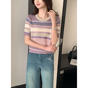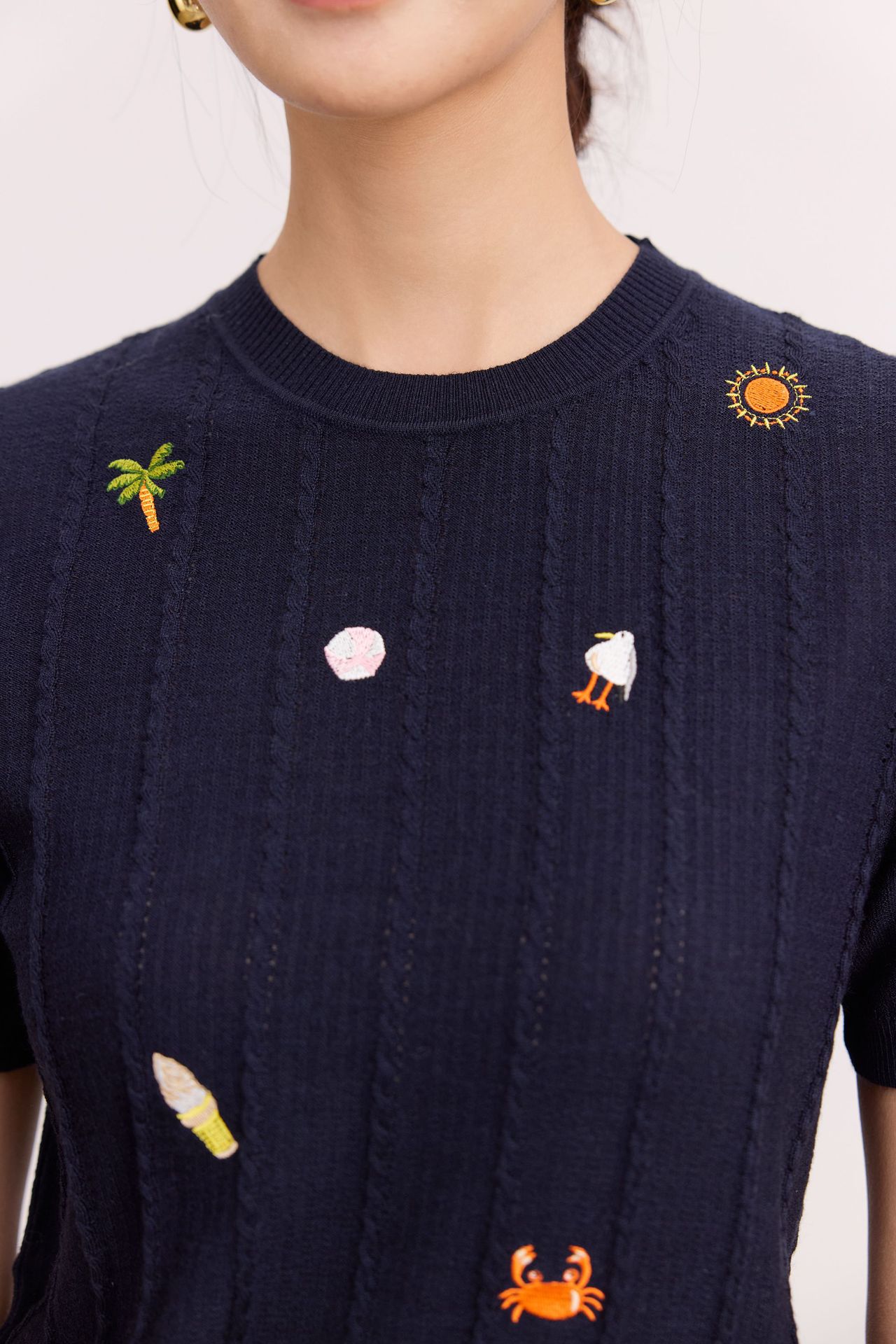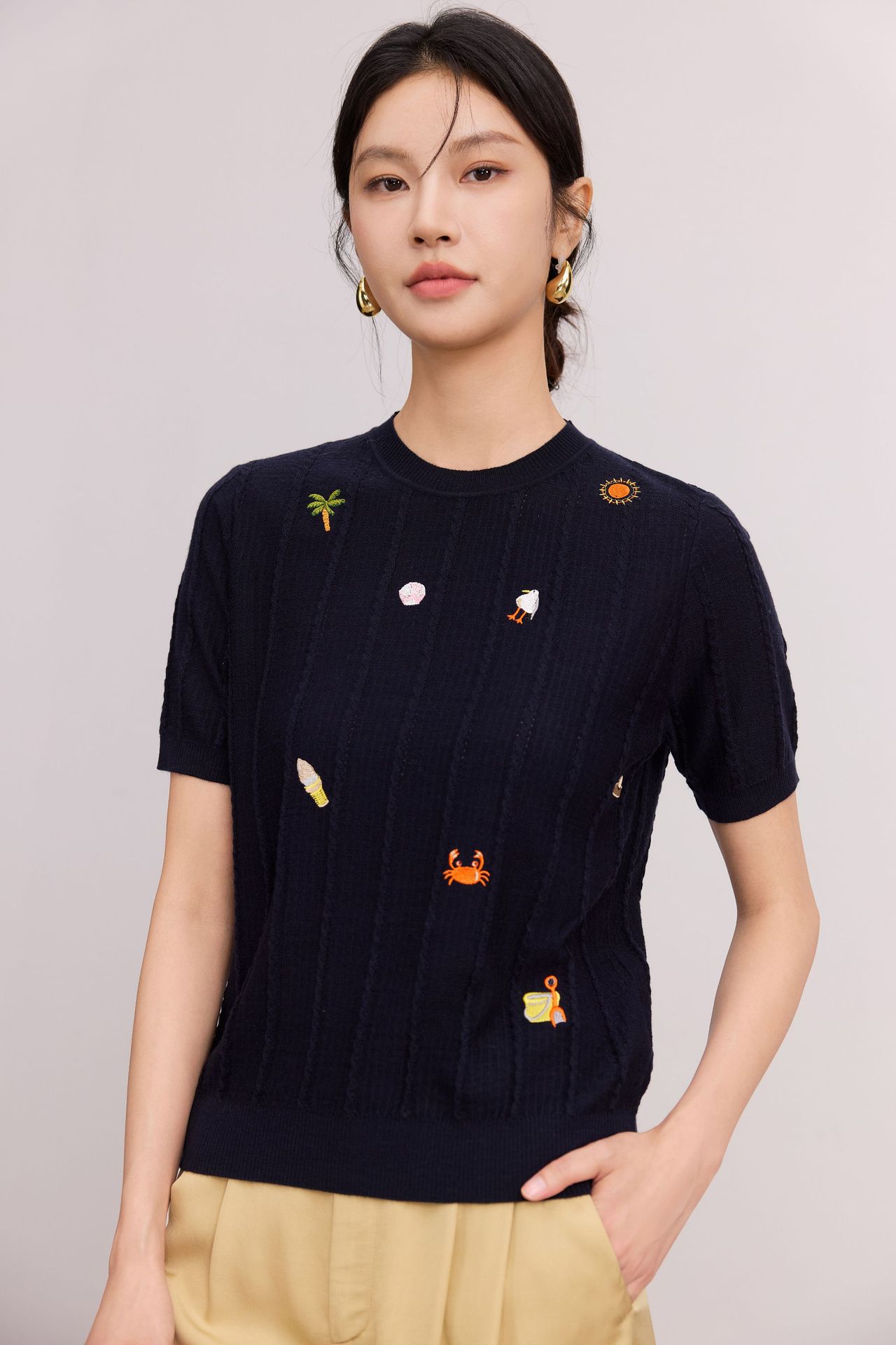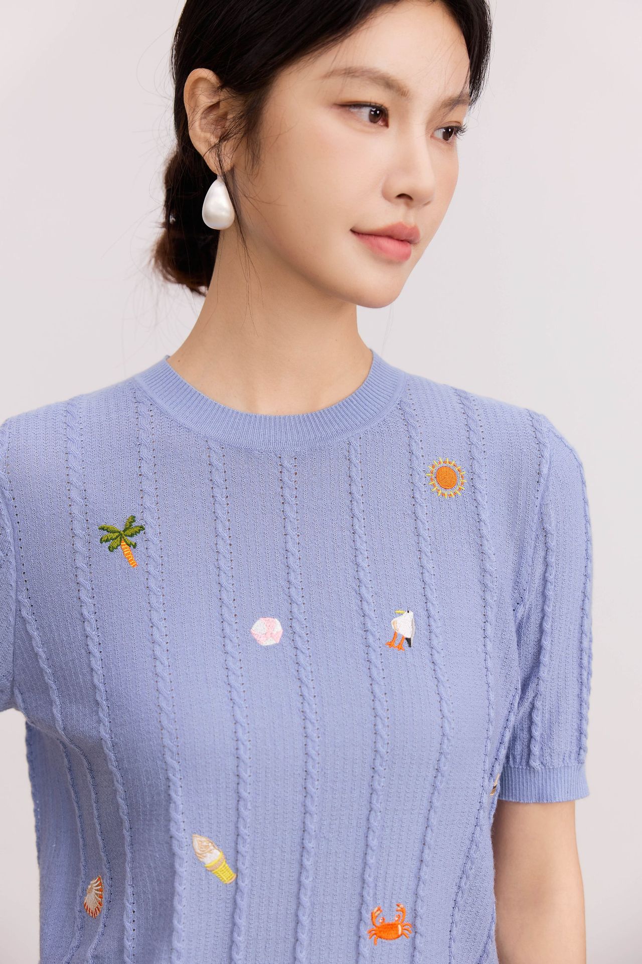 Тонкий вязаный пуловер с вышивкой из смесовой шерсти, с круглым вырезом и короткими рукавами, коллекция Весна/Лето 25