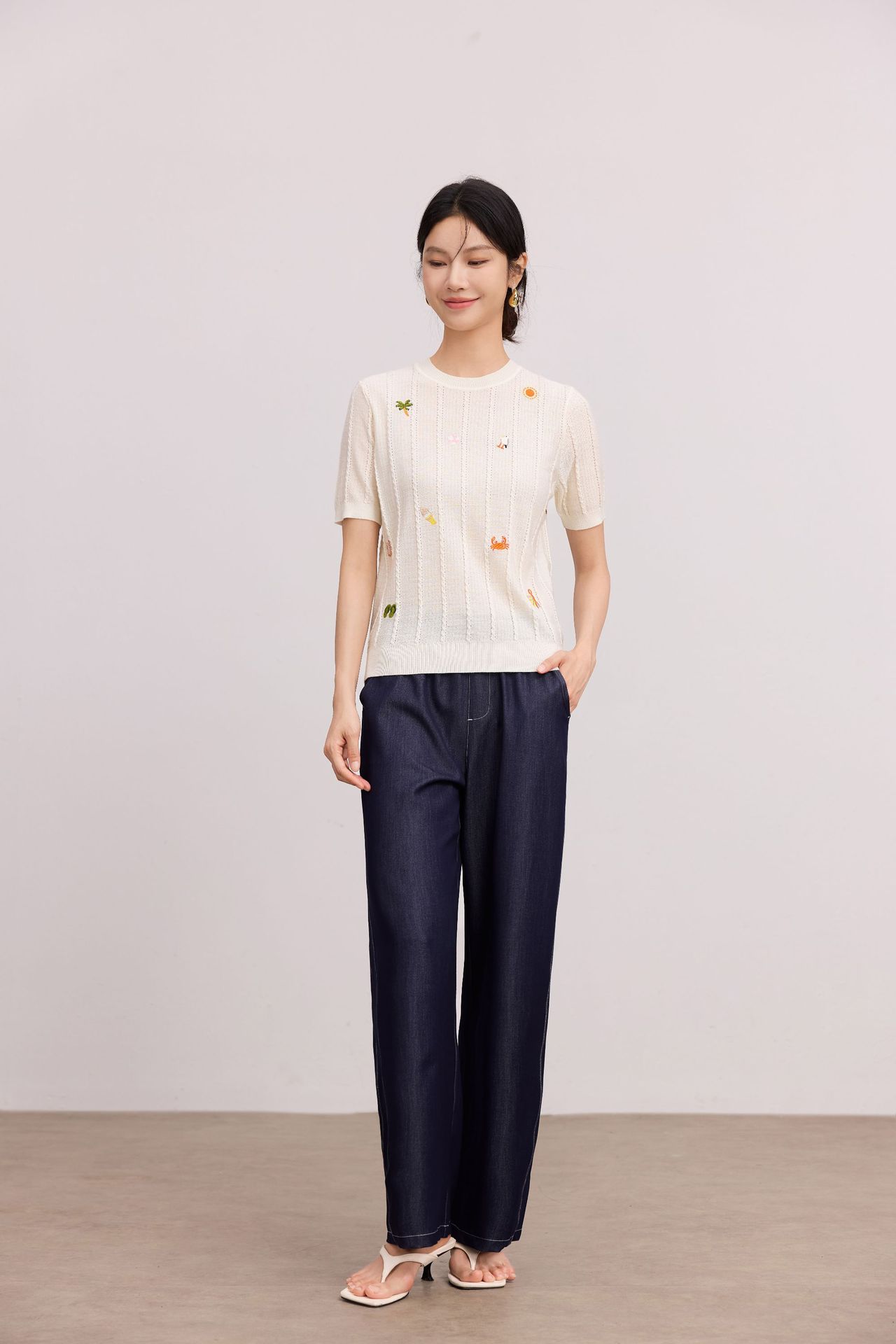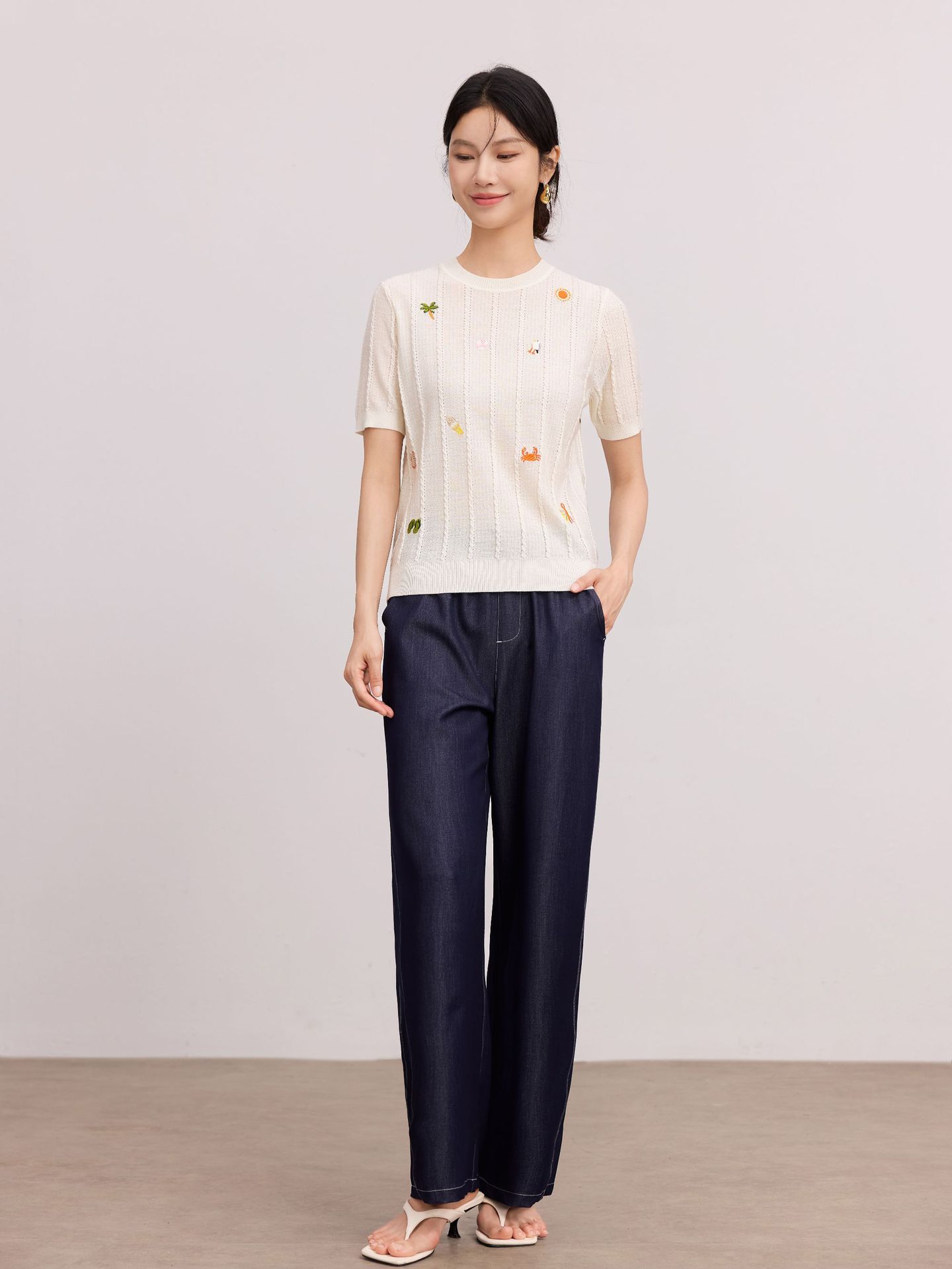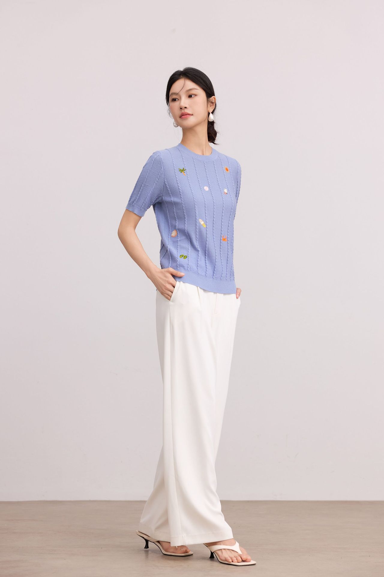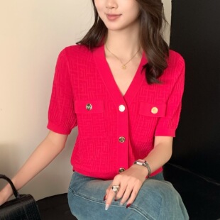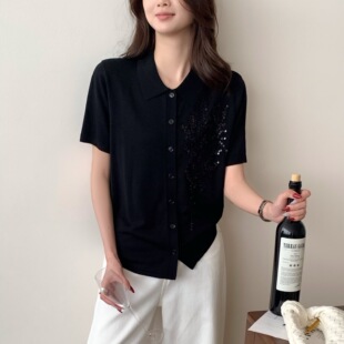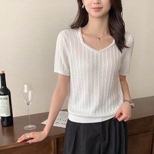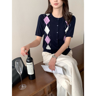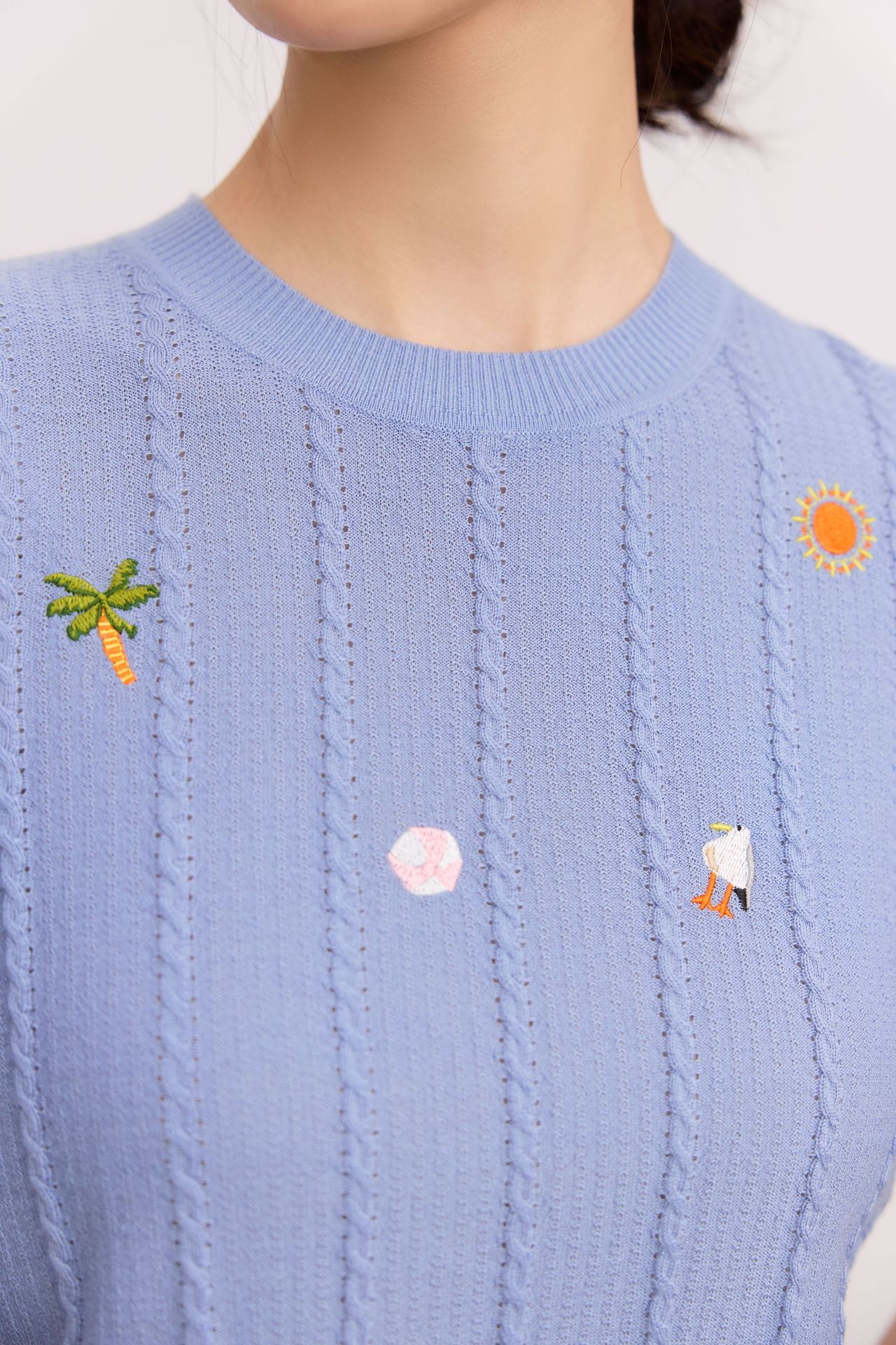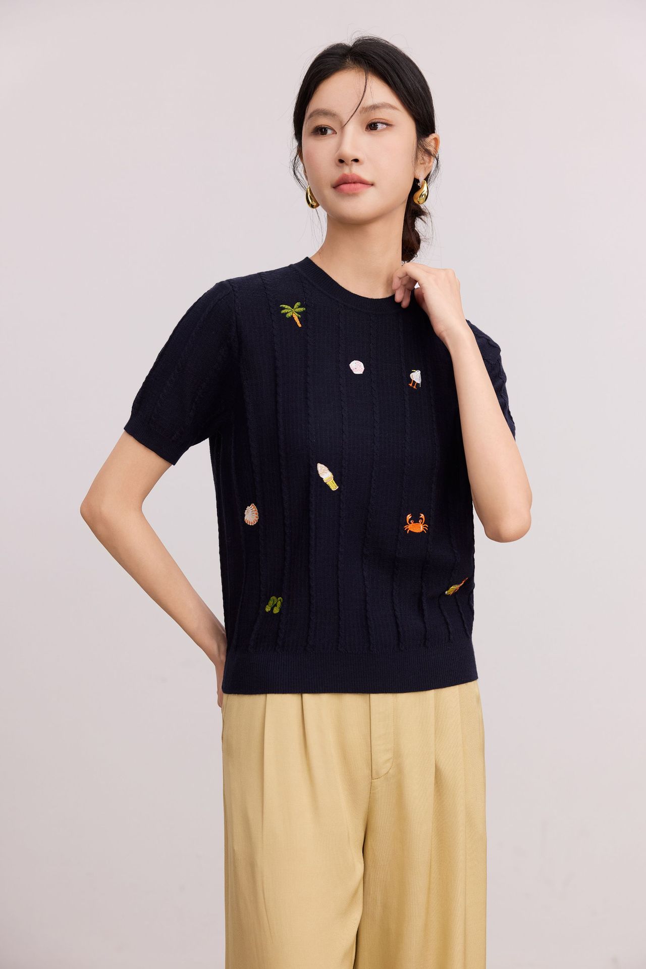 Тонкий вязаный пуловер с вышивкой из смесовой шерсти, с круглым вырезом и короткими рукавами, коллекция Весна/Лето 25