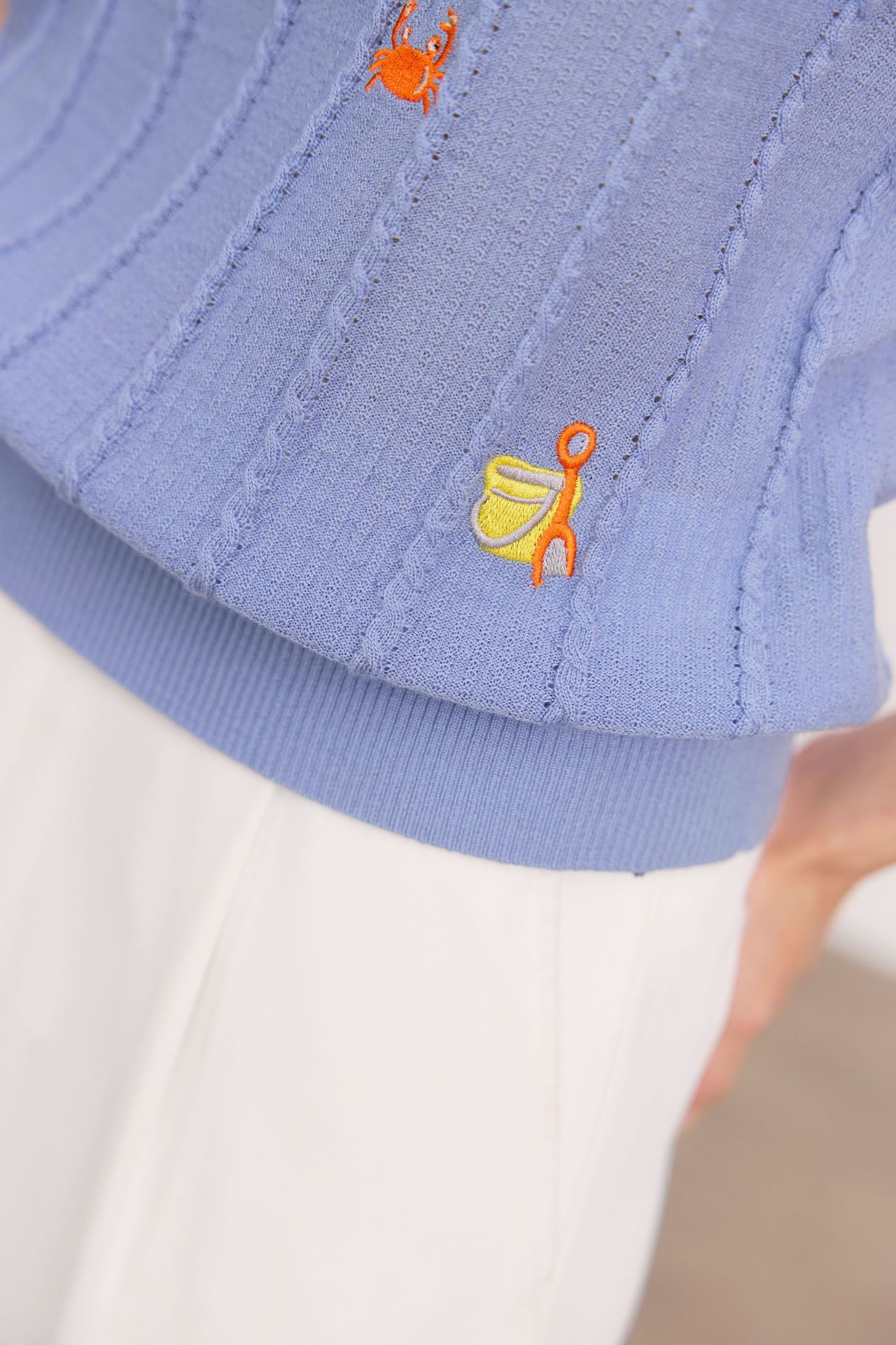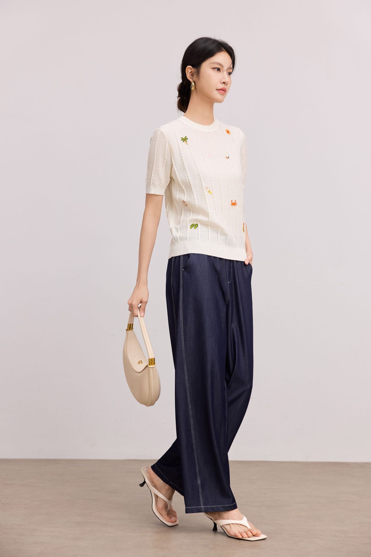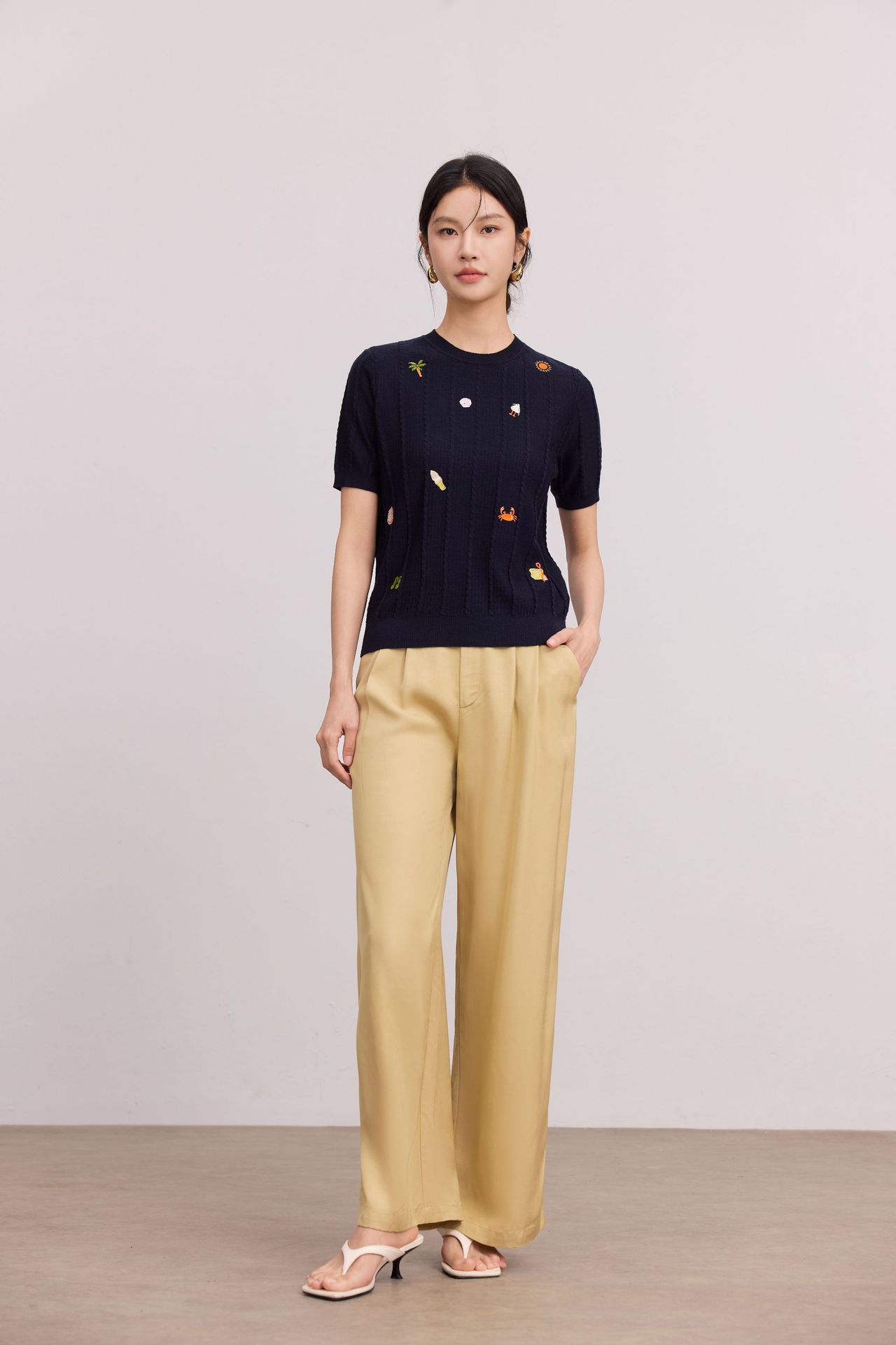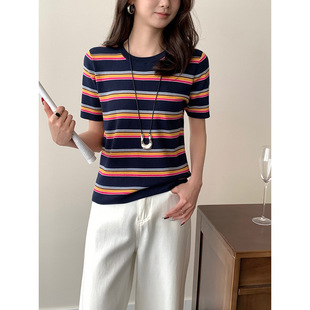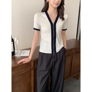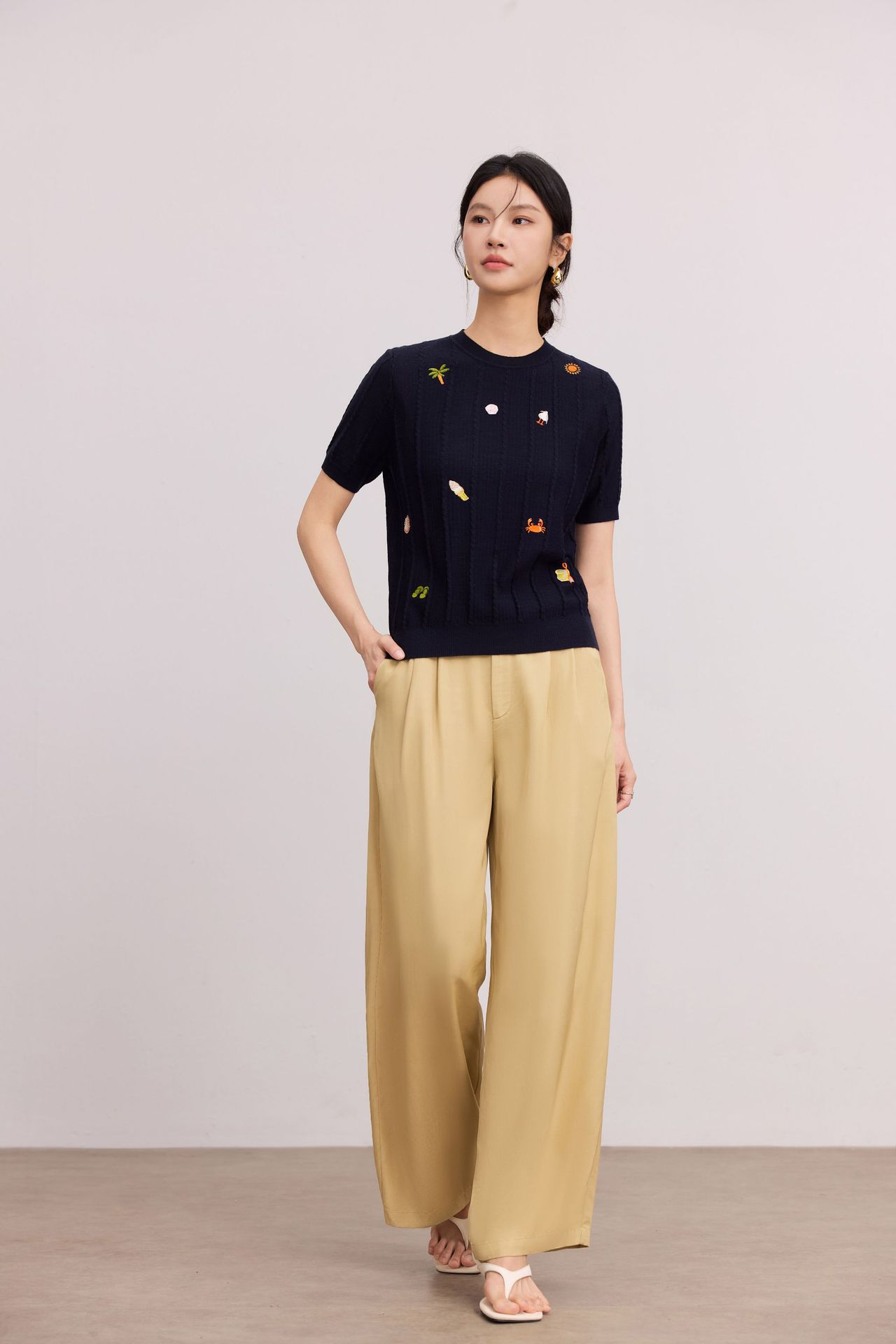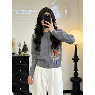 Тонкий вязаный пуловер с вышивкой из смесовой шерсти, с круглым вырезом и короткими рукавами, коллекция Весна/Лето 25
