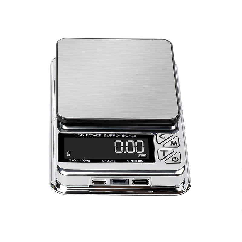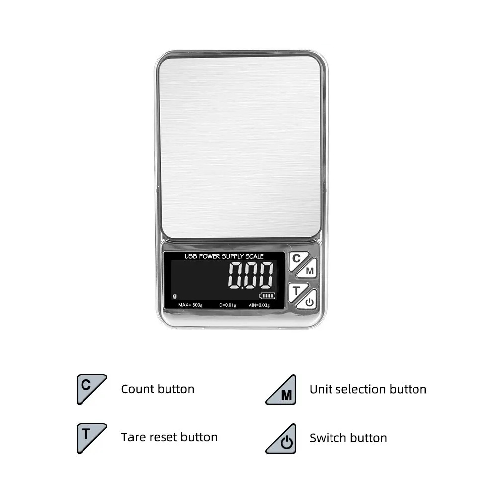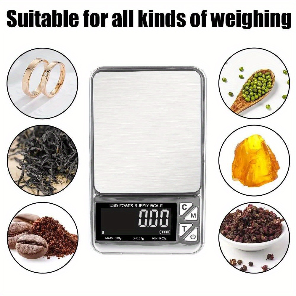 牛;高精度:该秤可测量重量达500g和100g,精度为0.01g,确保每次读数精确。牛;USB充电:天平可通过USB充电,使用方便,无需电池。牛;不锈钢材质:由耐用的不锈钢制成,天平经久耐用,经得起厨房的频繁使用。牛;迷你尺寸:该秤的紧凑尺寸使其易于存储在抽屉或架子上,节省宝贵的柜台空间。