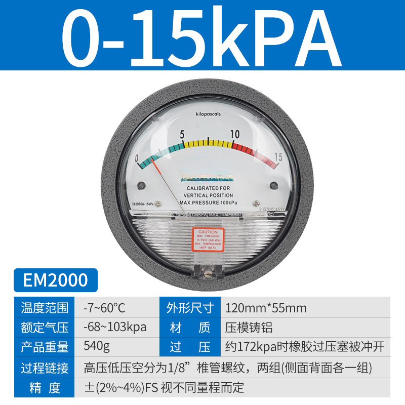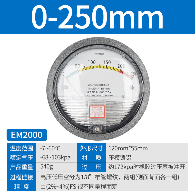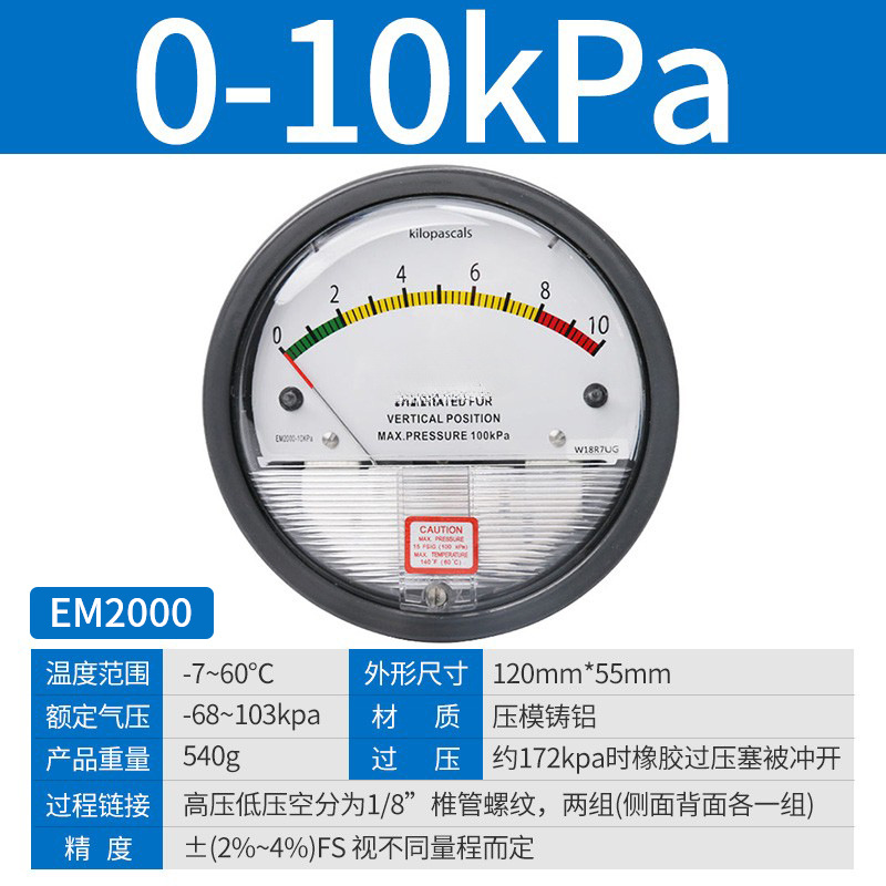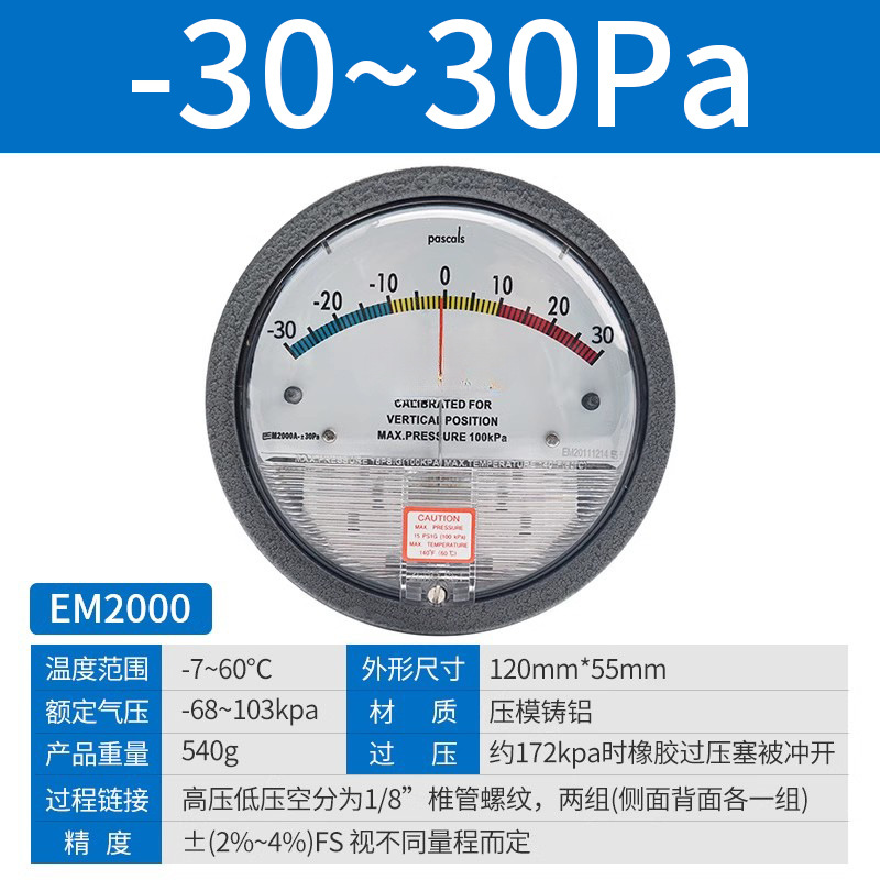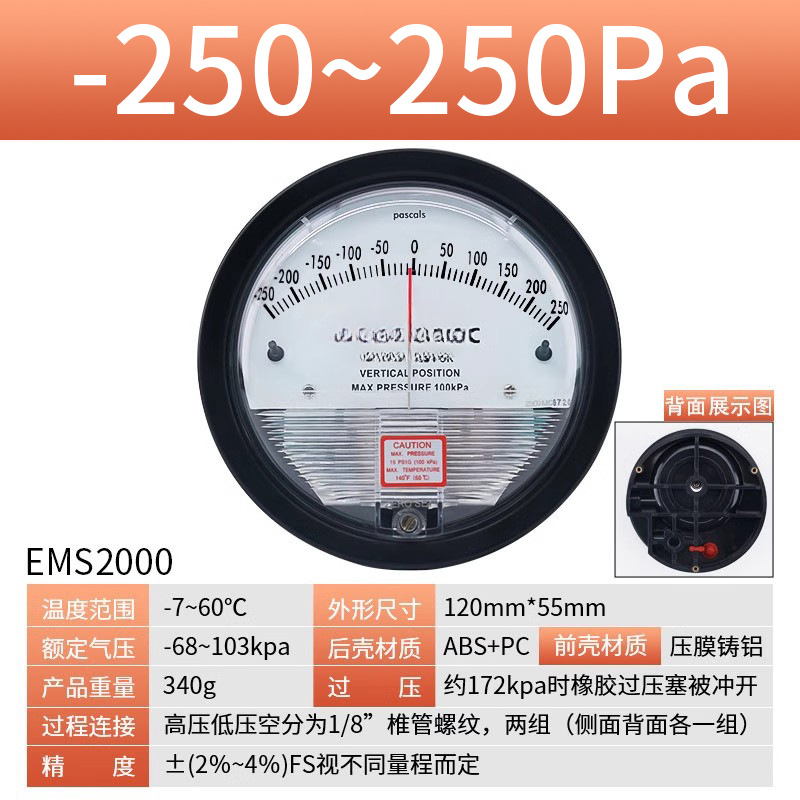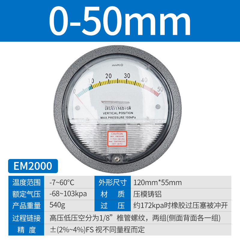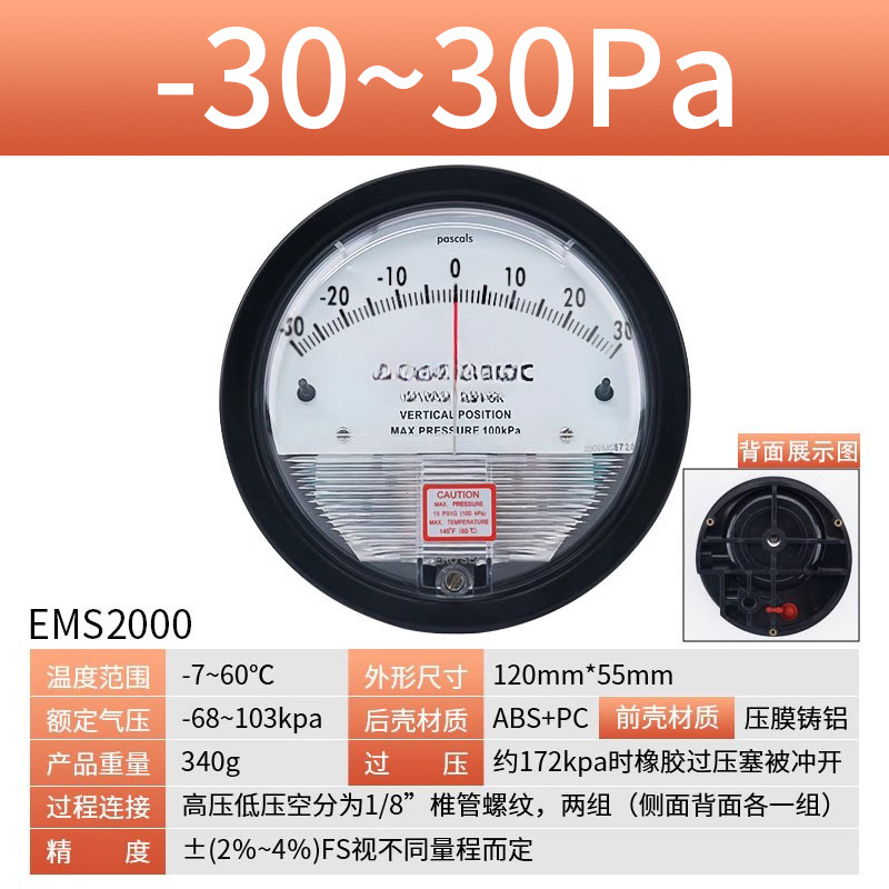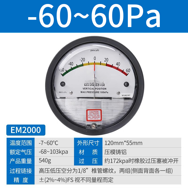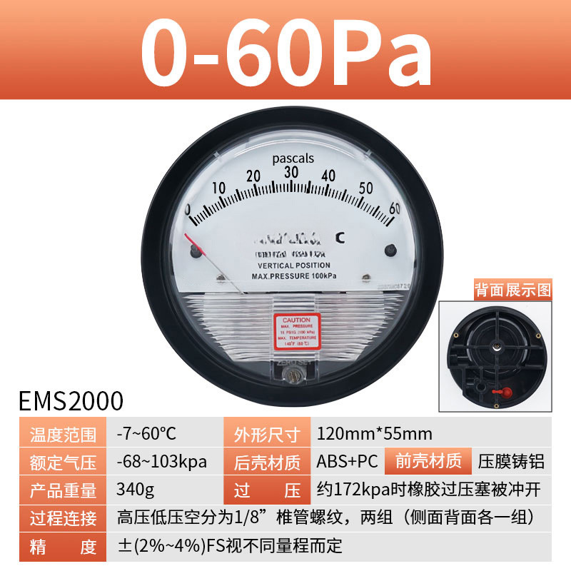 Микродифференциальный измеритель давления Elleko механический положительный и отрицательный 60pa очистка мастерской дифференциальный манометр указательный манометр барометр