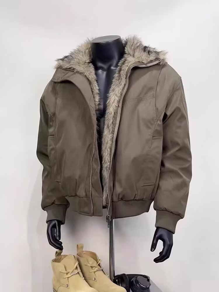 * Американская ретро деконструкция куртка зимой утолщенный теплый шерстяной воротник