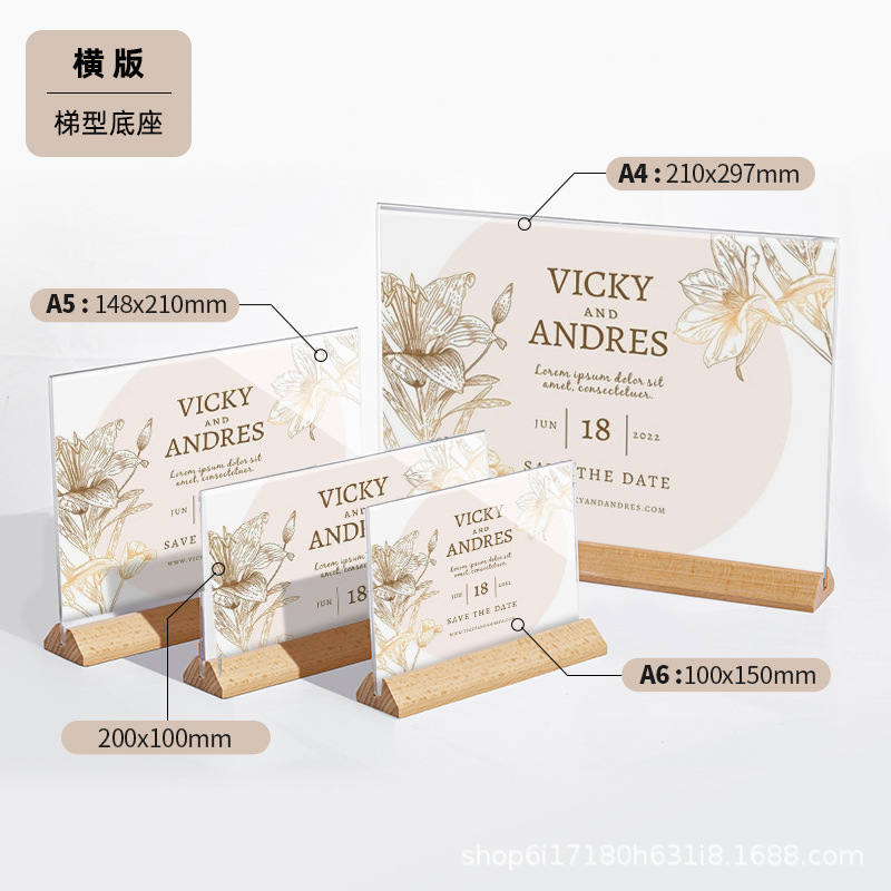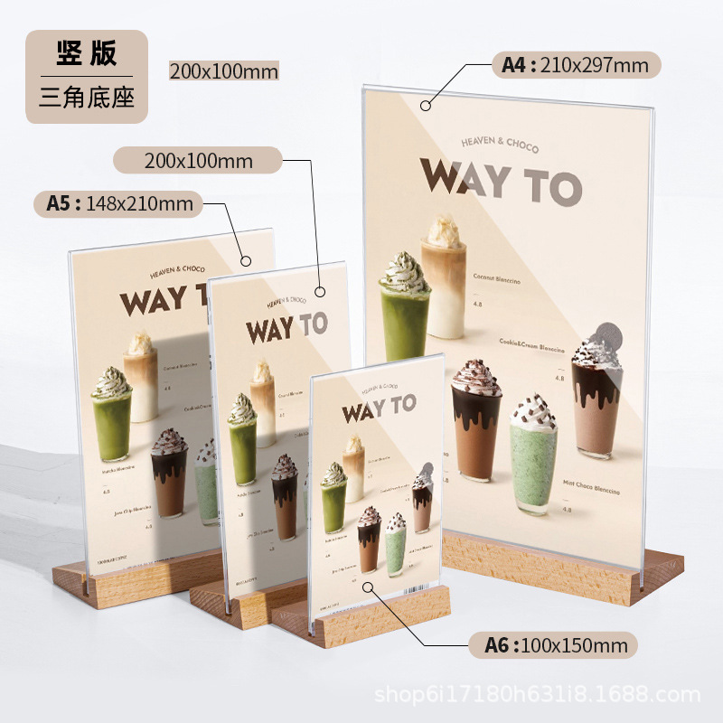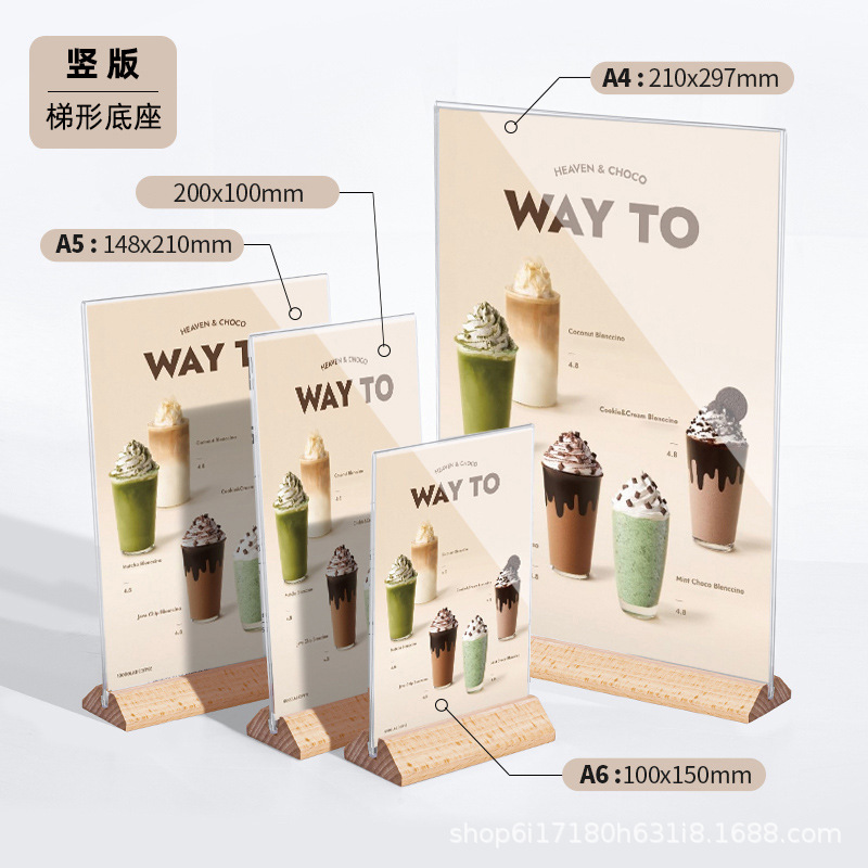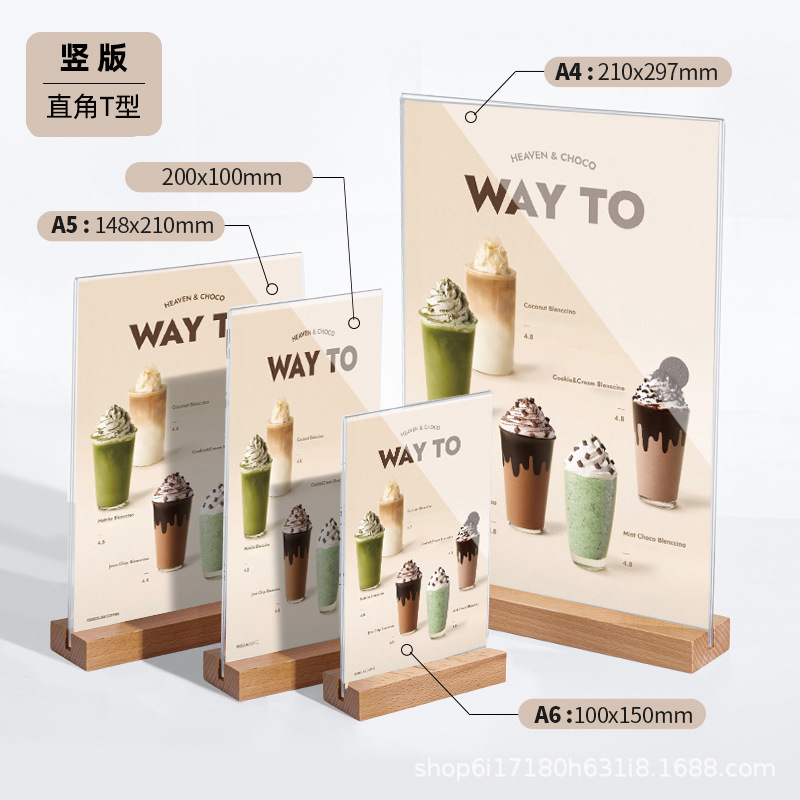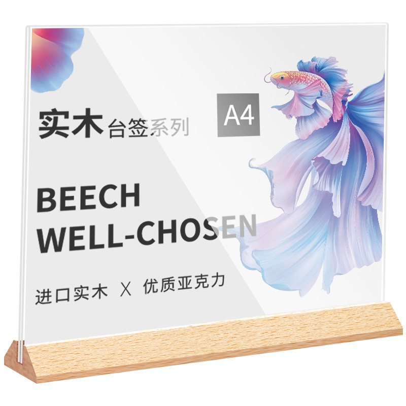 A4 акриловая настольная карточка с деревянным дном табло стенд A5 настольный стенд стенд двухсторонний прозрачный ценовой знак