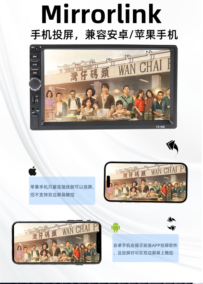 7-дюймовый автомобильный bluetooth mp5 плеер bluetooth Hands-free видео-карта USB-накопитель Поддержка заднего хода 7018B