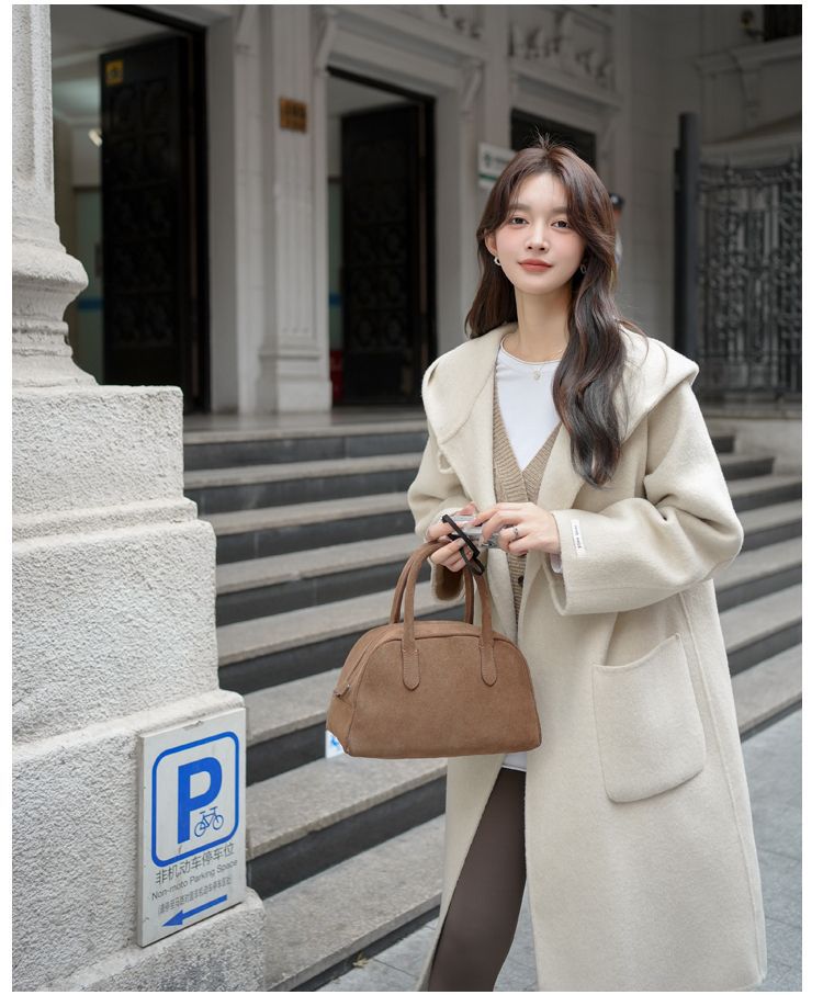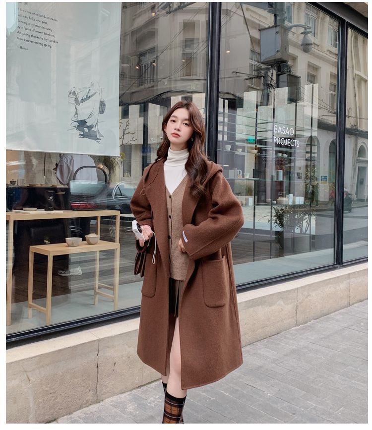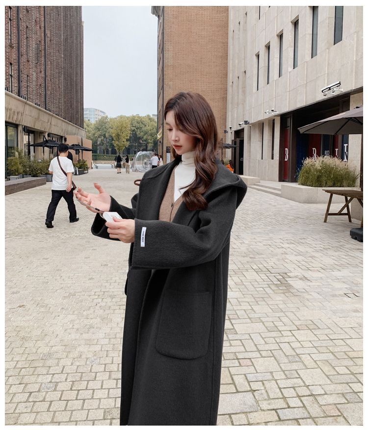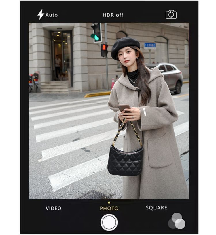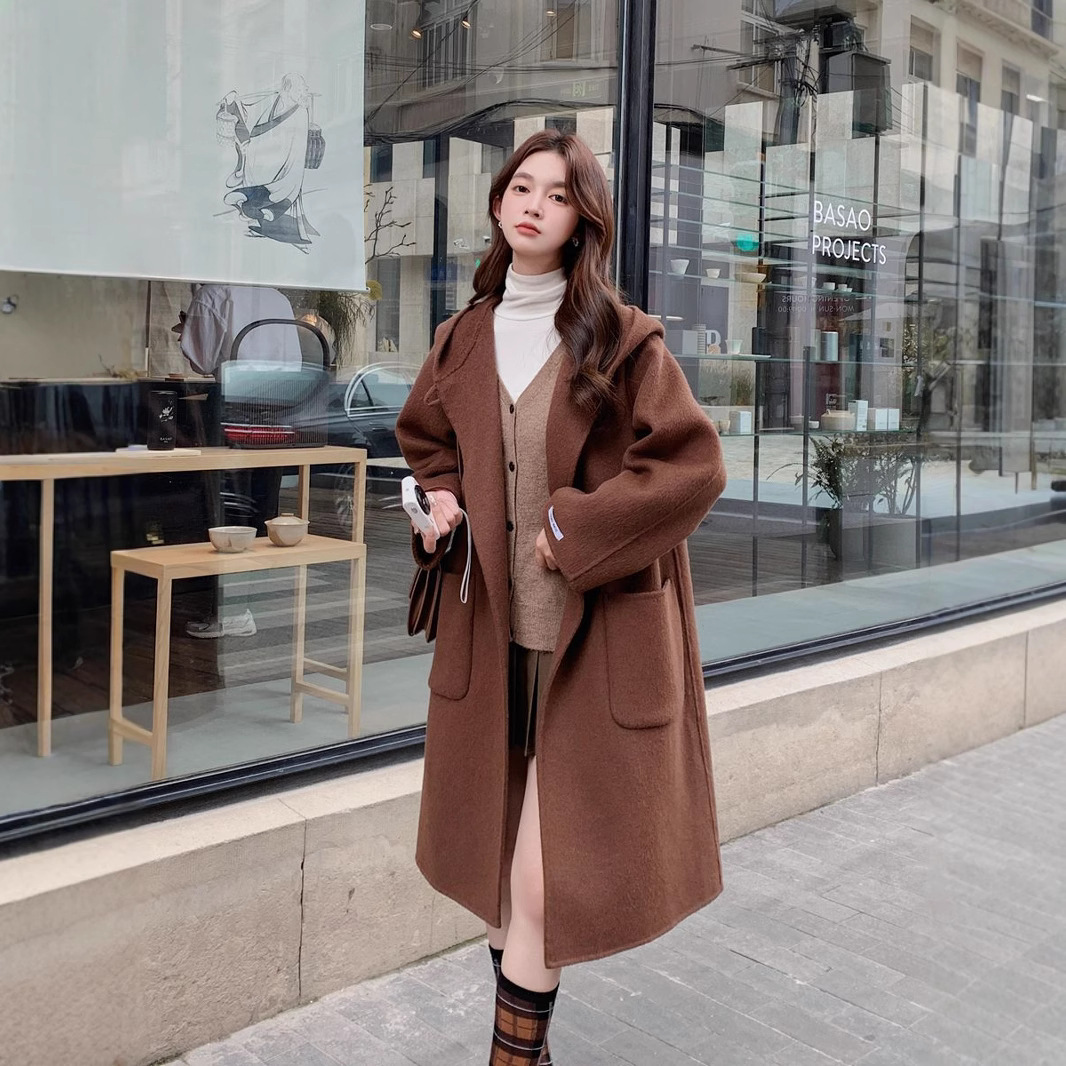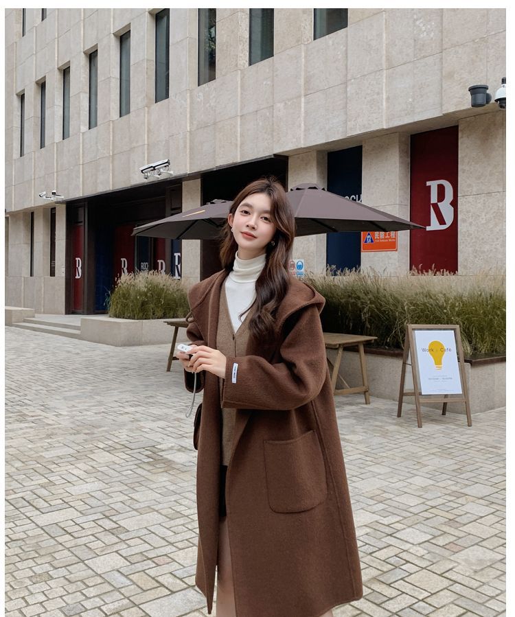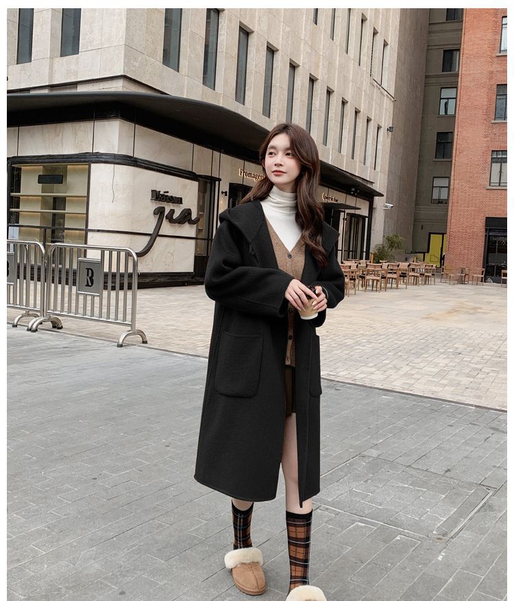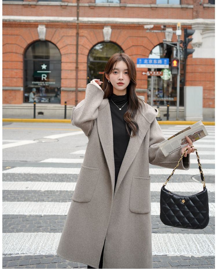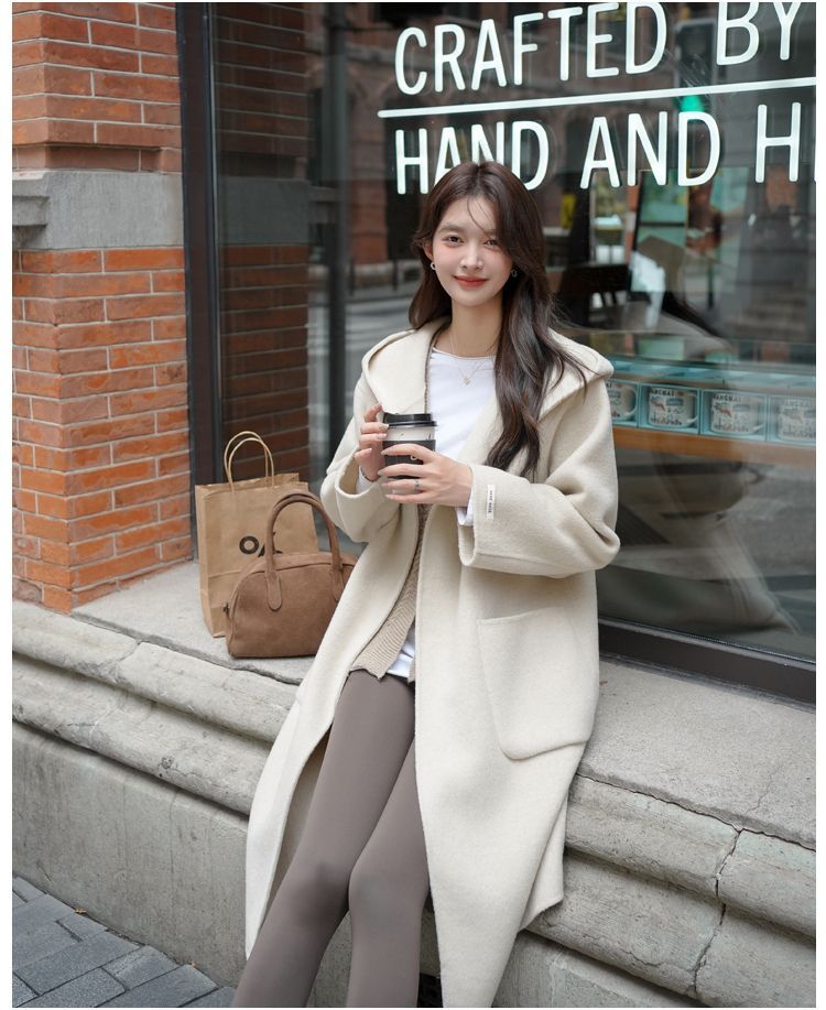 Шерстяная верхняя одежда женская 2024 осень-зима новая с роговыми пуговицами в стиле Хепберн средней длины с капюшоном