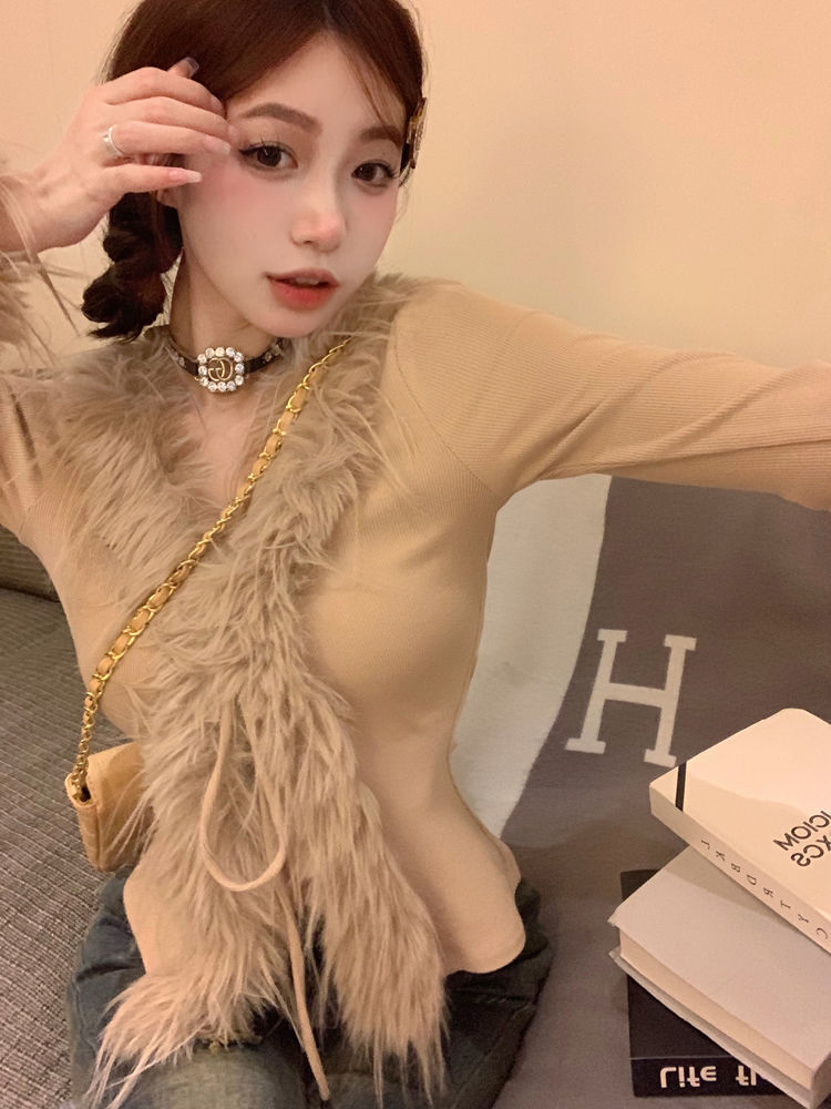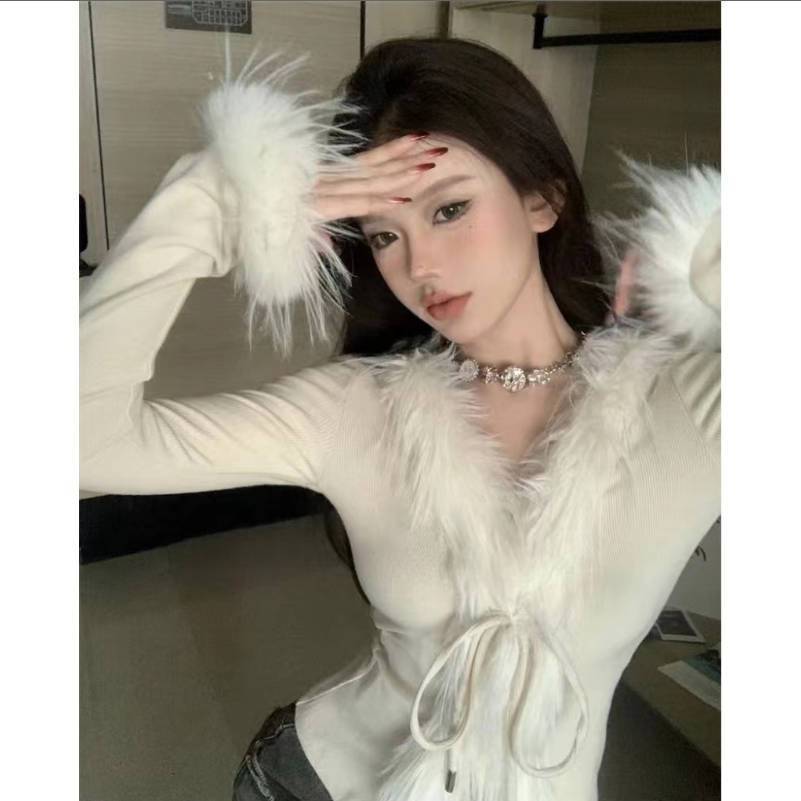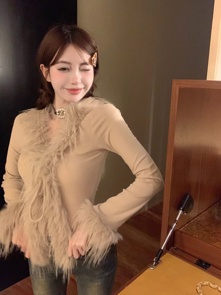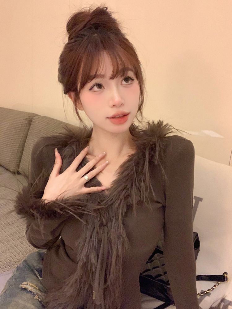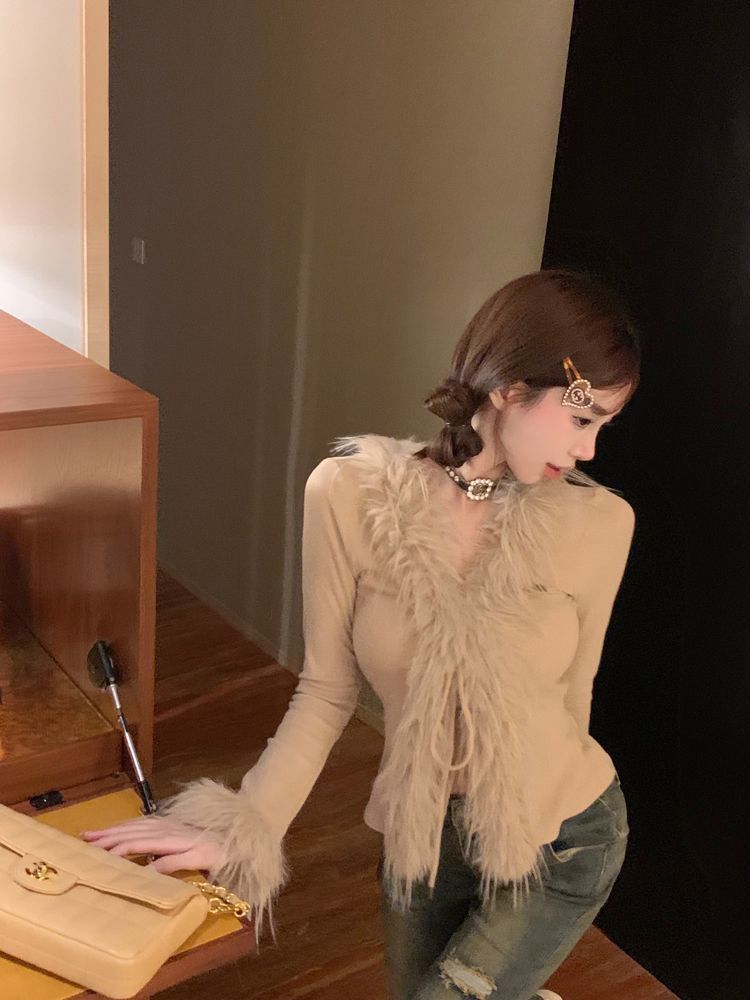 Тайская женская слегка толстая MM осень-зима новая атмосфера футболка V-образный воротник темперамент кардиган высокого уровня