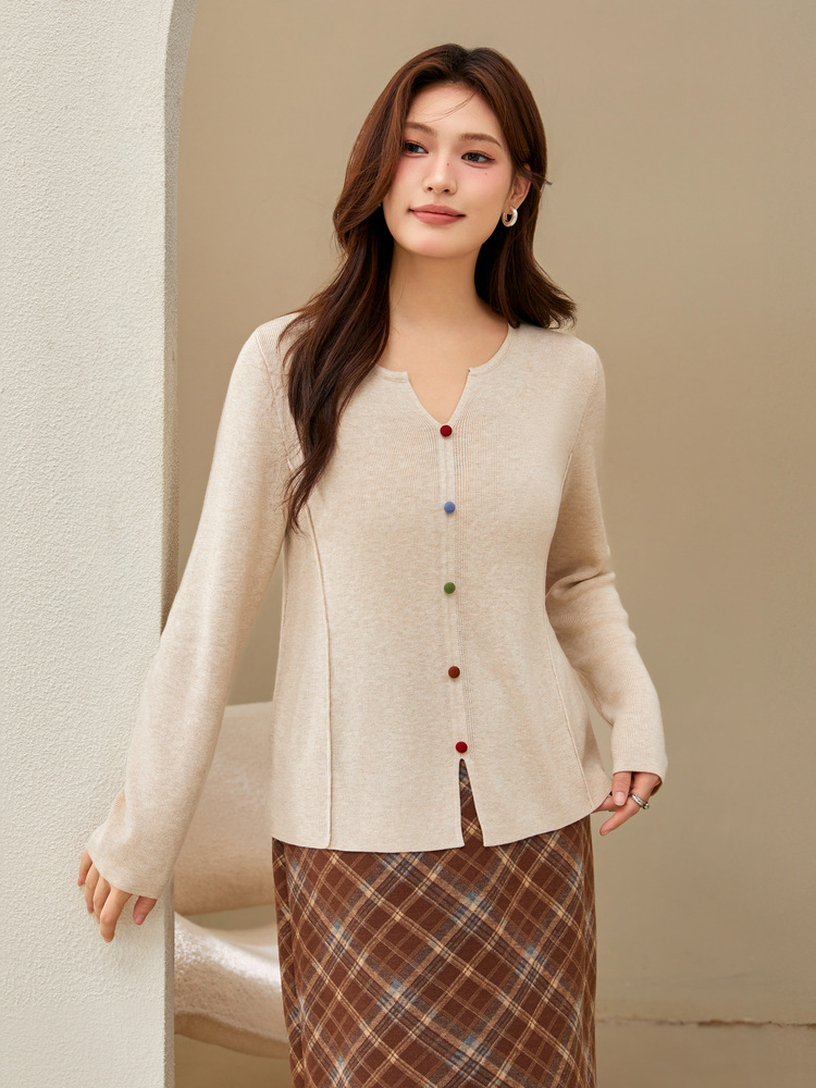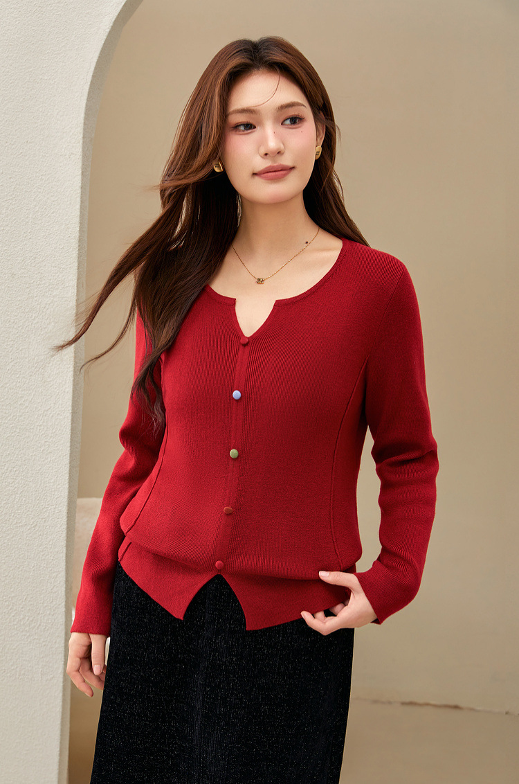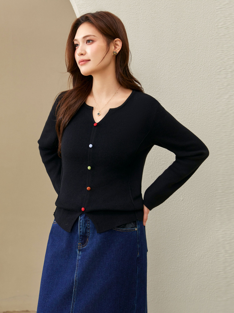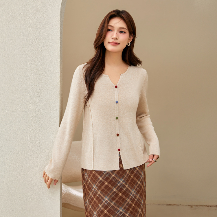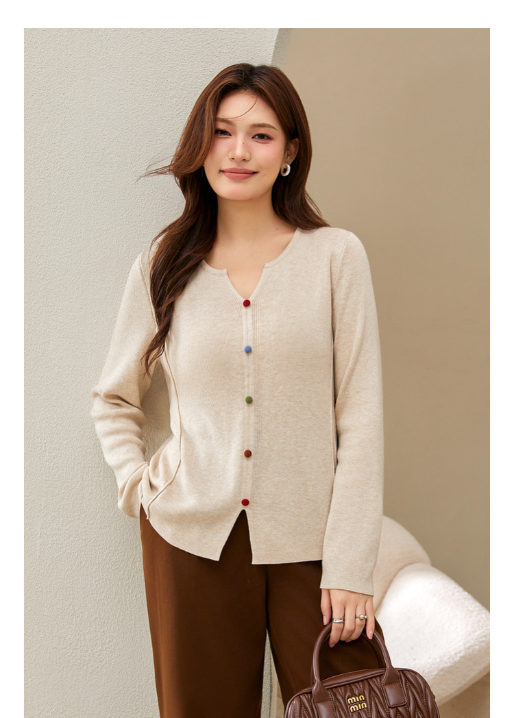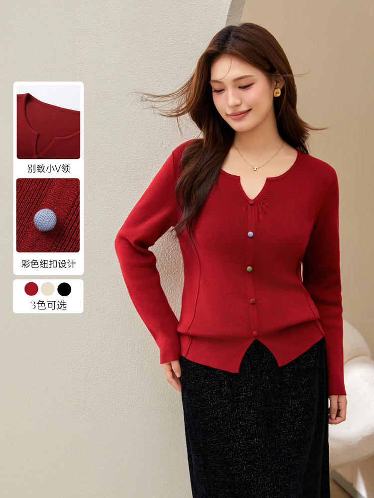 [Ленивый стиль дизайн, шерстяной свитер с V-образным вырезом] Funny Show большой размер женский толстый mm2025 весенний новый