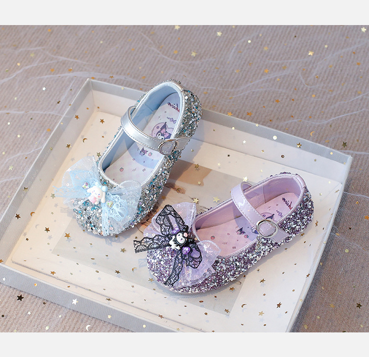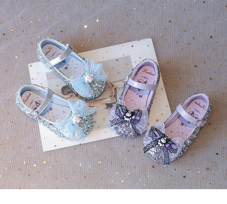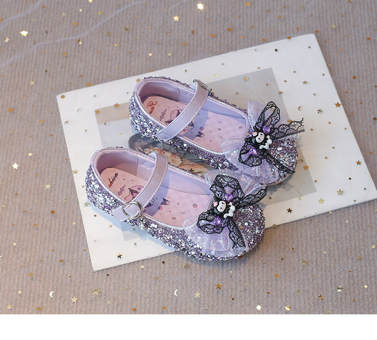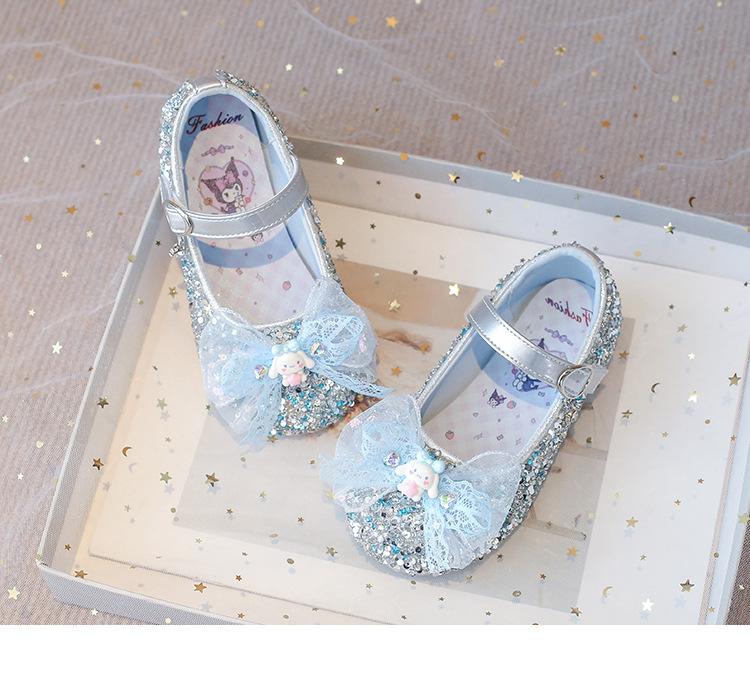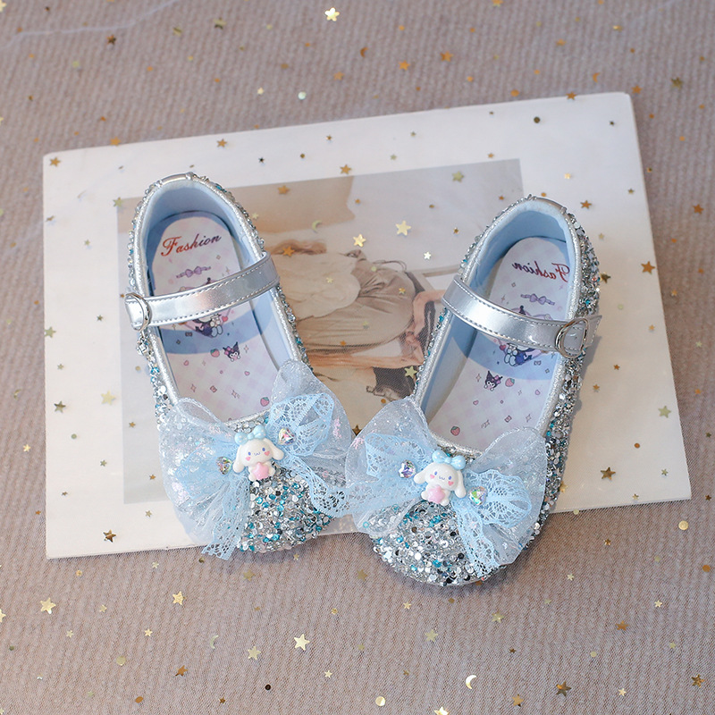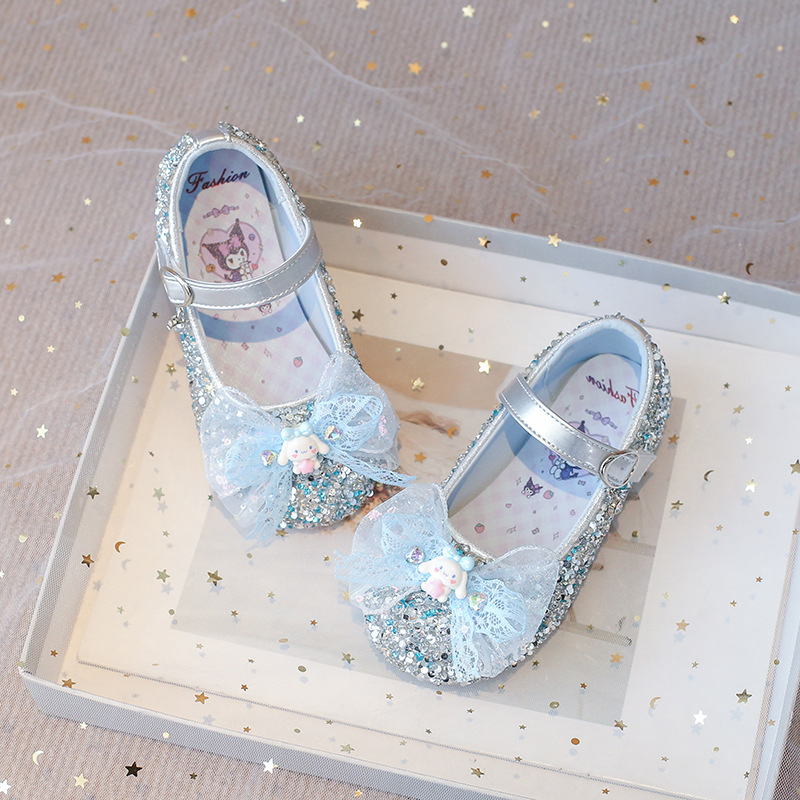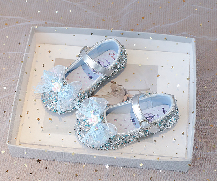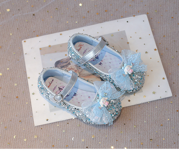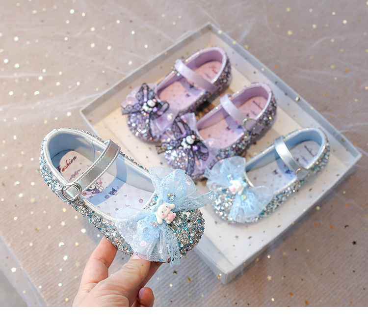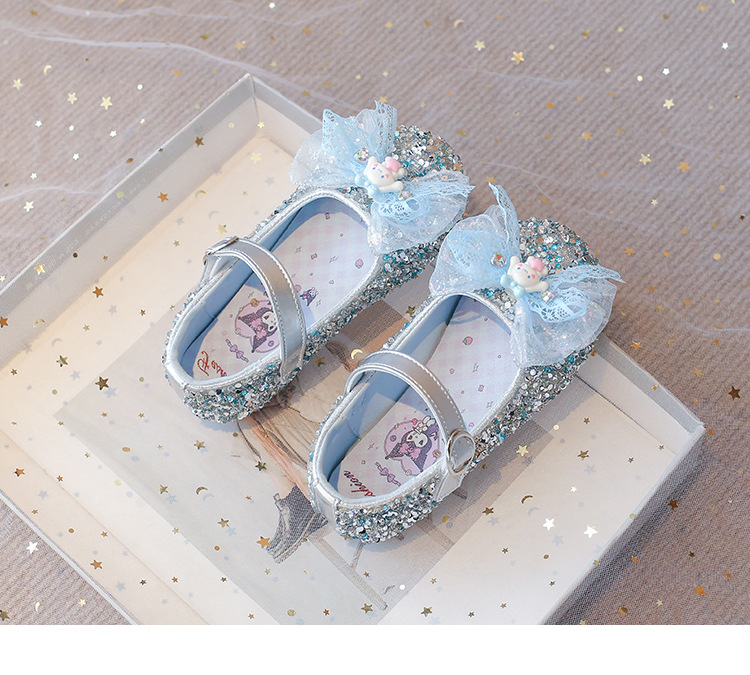 Девушки блестящие кроссовки принцессы весной и летом 2025 года новый сетчатый лук мультяшные куклы маленькие кожаные туфли