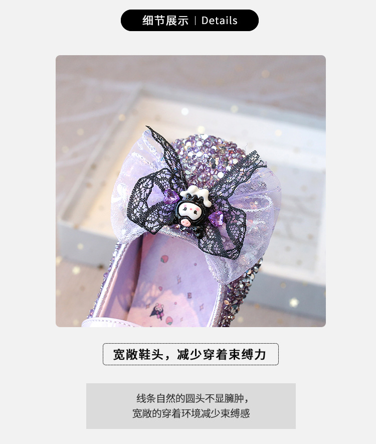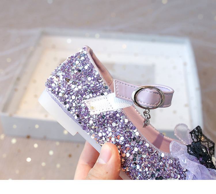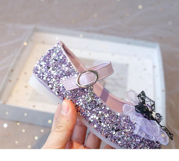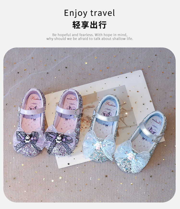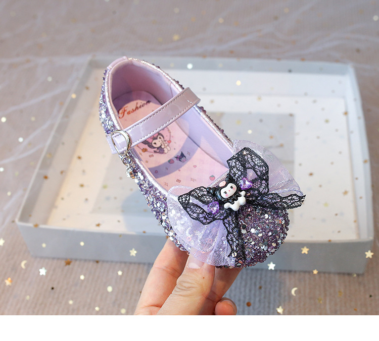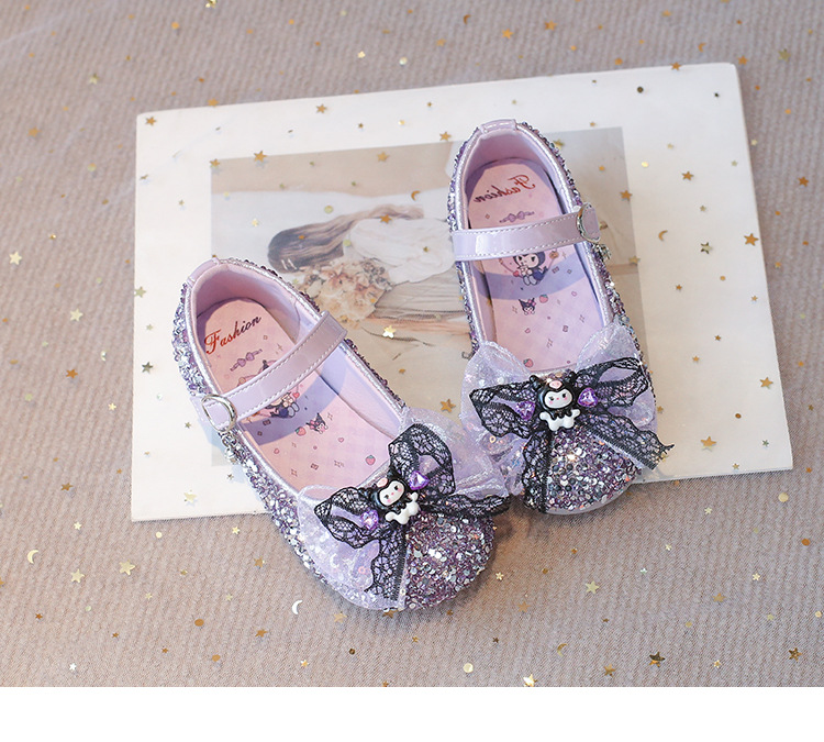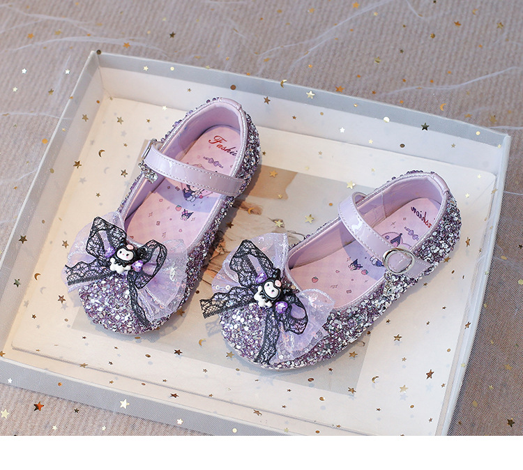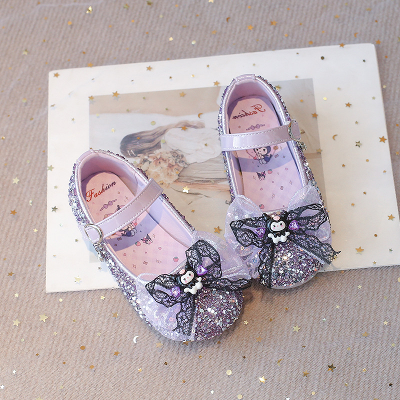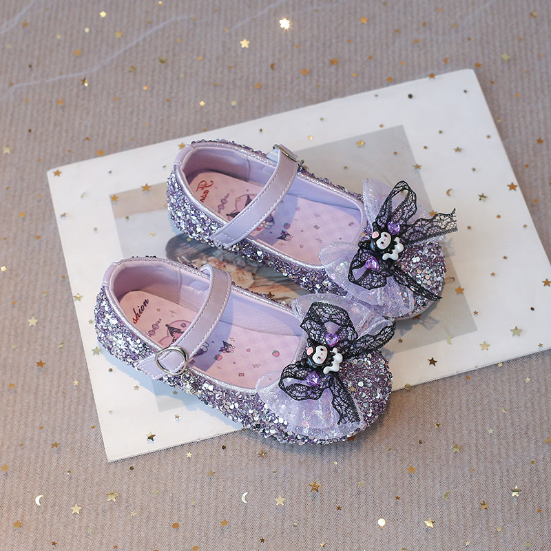 Девушки блестящие кроссовки принцессы весной и летом 2025 года новый сетчатый лук мультяшные куклы маленькие кожаные туфли