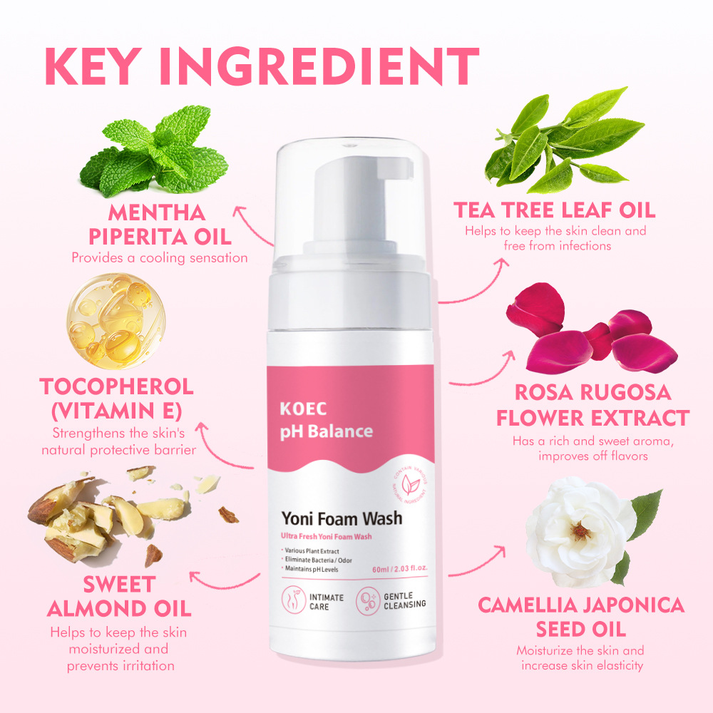 KOEC Трансграничный PH Баланс Женщины Частные части Чистый мусс Свежий Уход Yoni Foam Wash