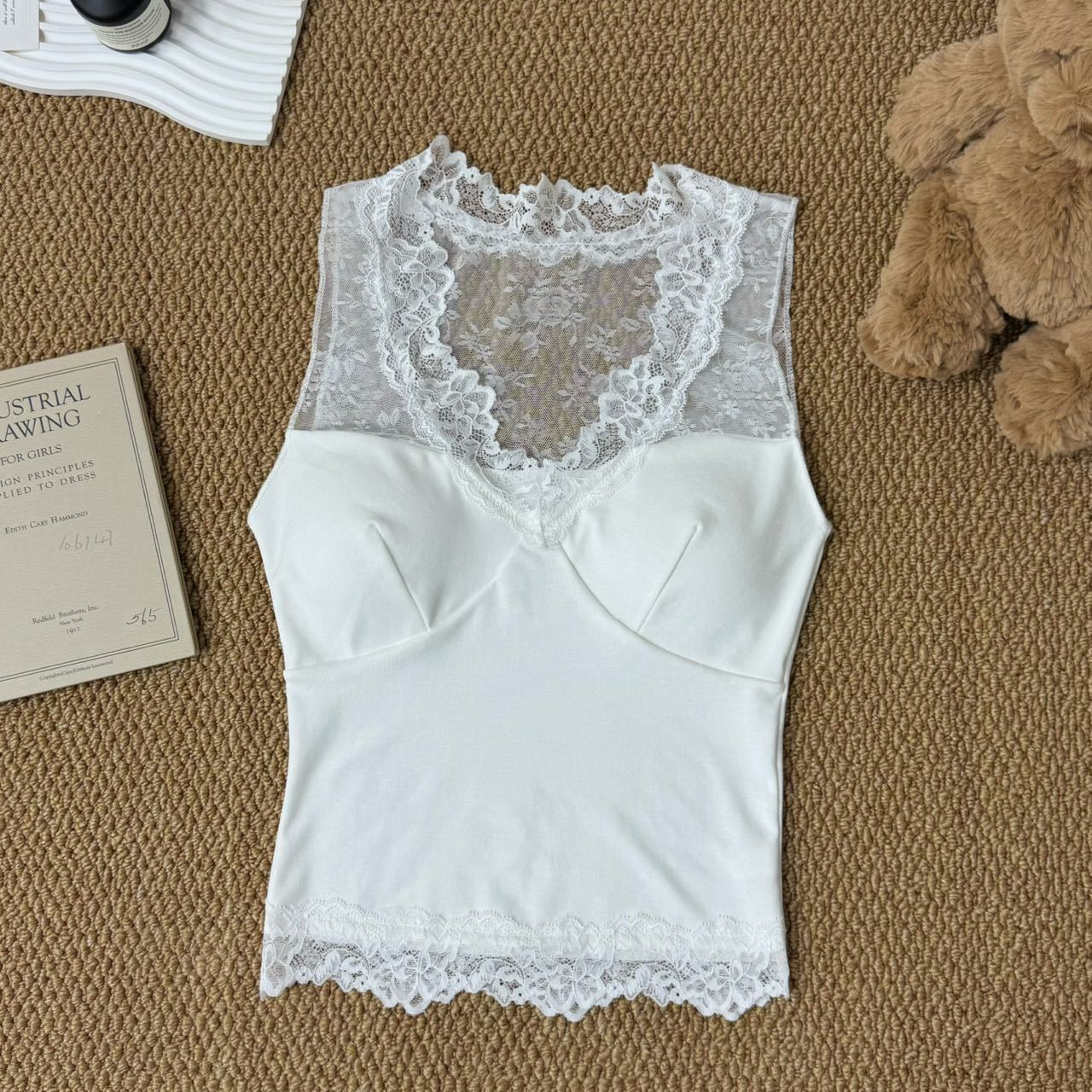 Кружевной сшитый вокальный камзол женский весенне-летний белый тонкое тело с нагрудным ковриком
