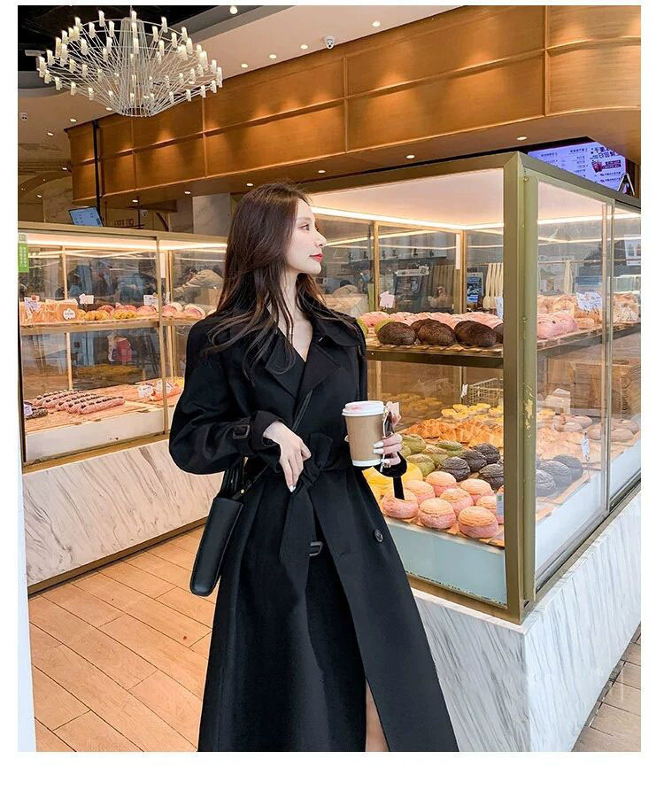 Женское пальто-тренч средней длины, новинка весны-осени 2026, в корейском стиле, больших размеров, для миниатюрных женщин, модное, в британском стиле, ниже колена