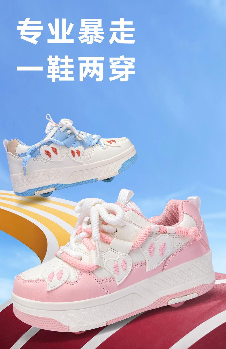Четырехколесные кроссовки Детская деформирована Обувь для мальчиков и девочек, трансграничные роликовые коньки, двухрядные роликовые коньки для взрослых