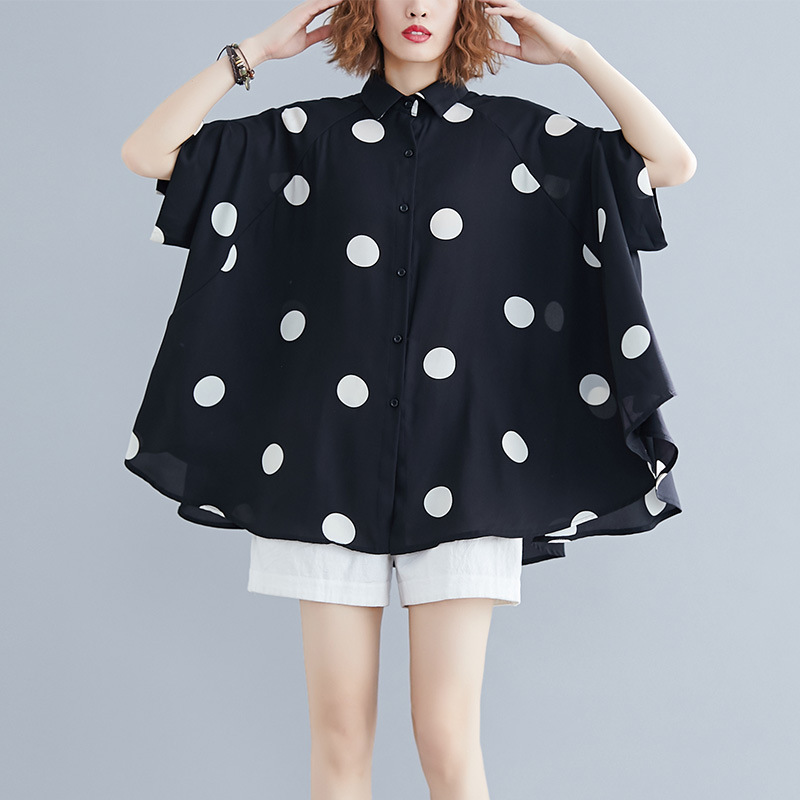 Мода и искусство плюс 200 кг в женской шифонной рубашке с короткими рукавами рубашки летучей мыши летнее ограничение 49