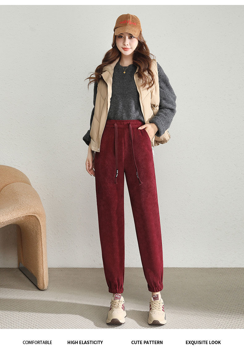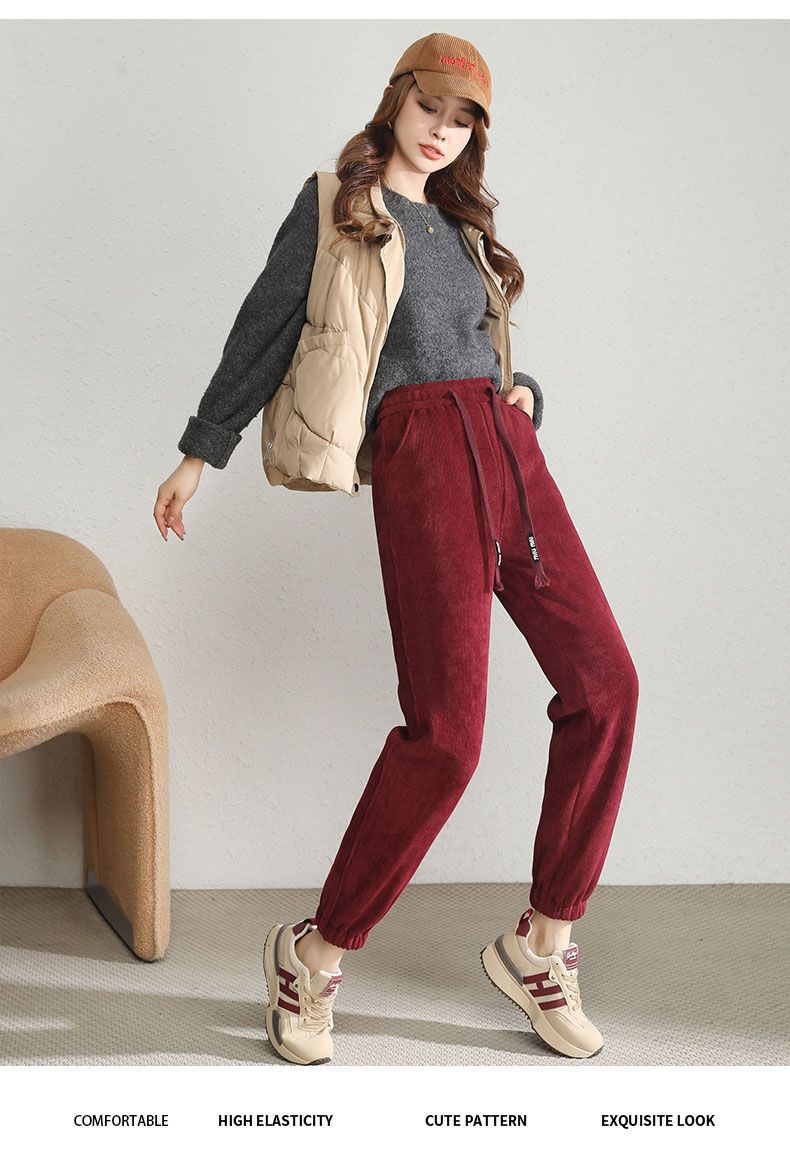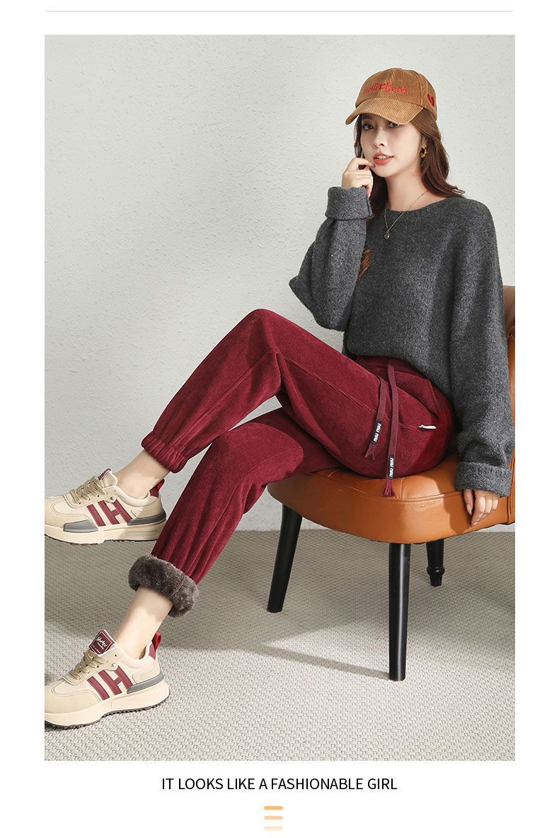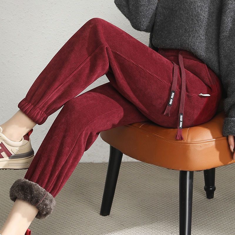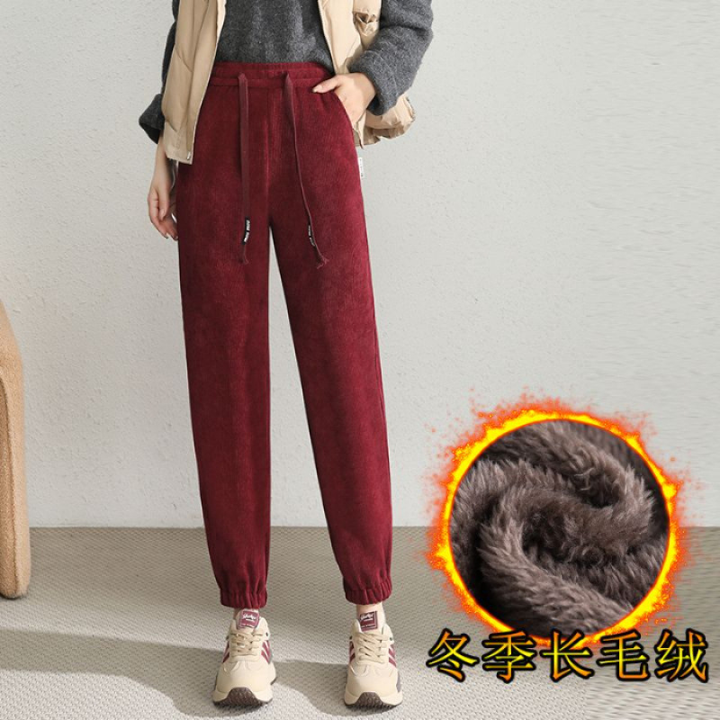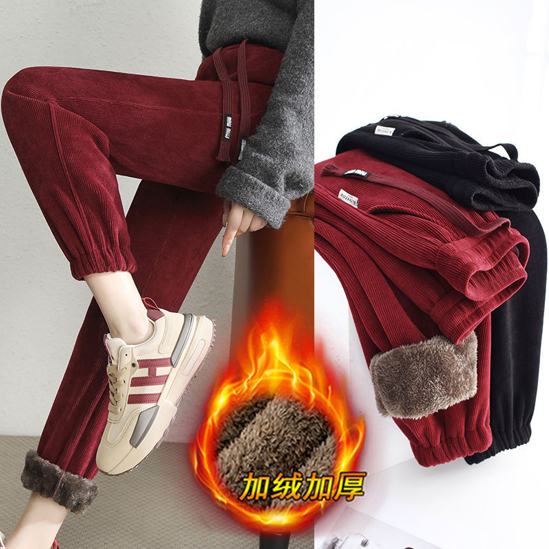 Ангра красные брюки дети oversize свободный плюс размер 2024 осень-зима новые бархатные толстые брюки для ног