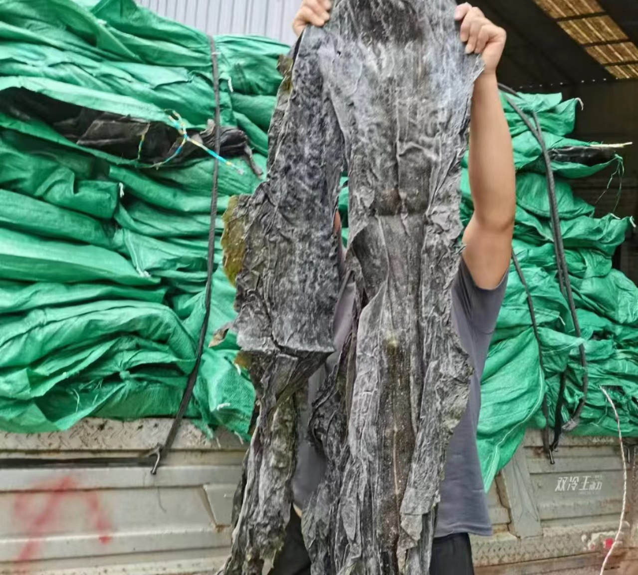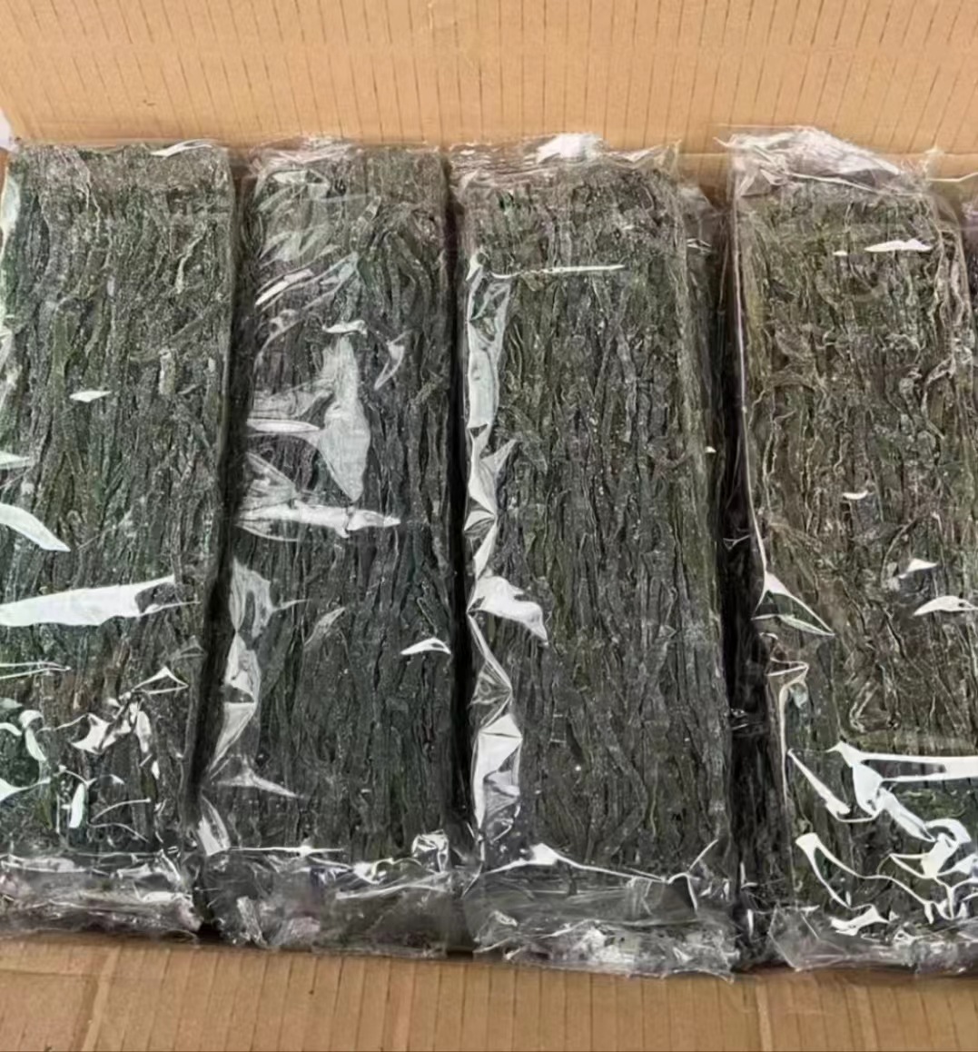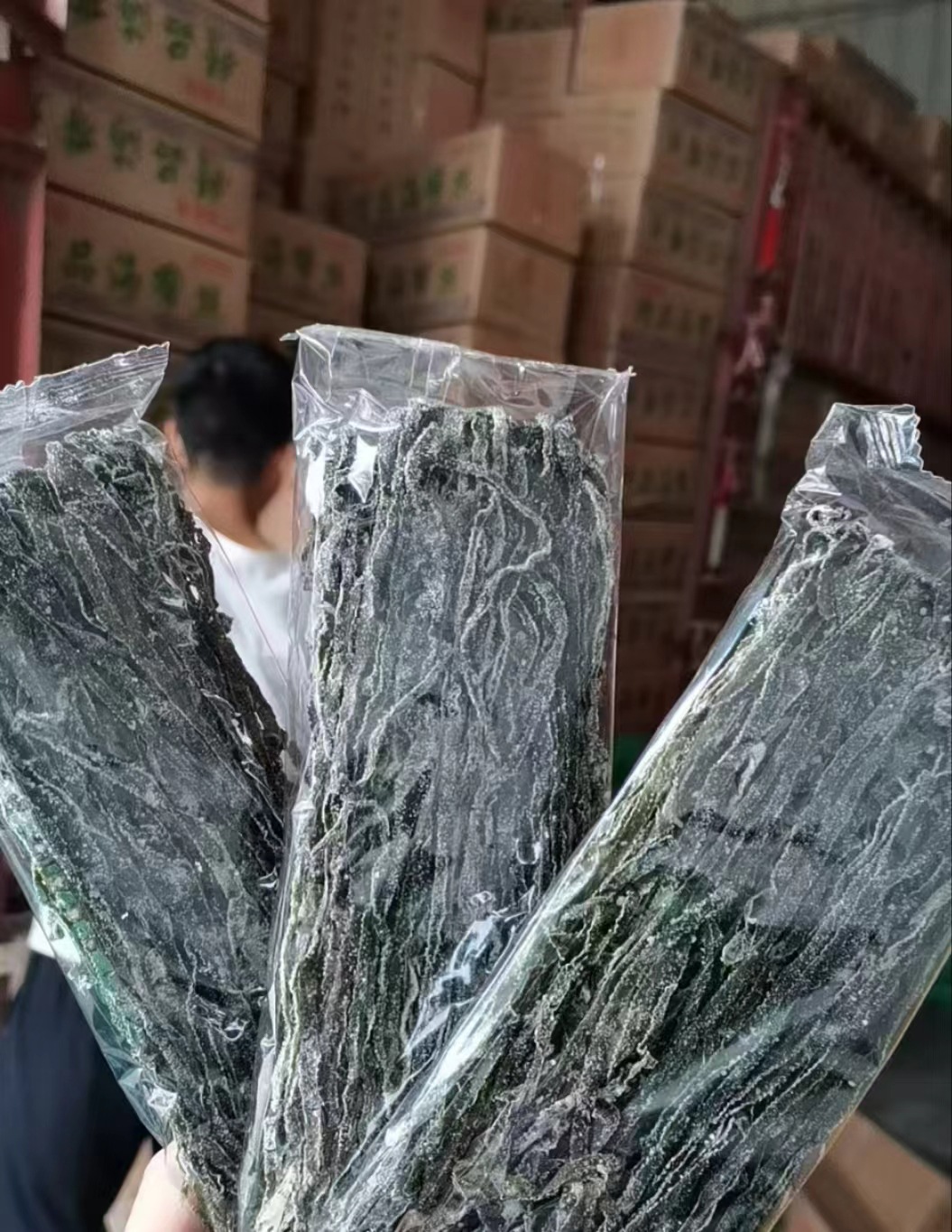 Головка соленой водоросли ощущается как толстая, корень головки водоросли продается на лотках, а полусушеная соленая головка водоросли продается оптом.