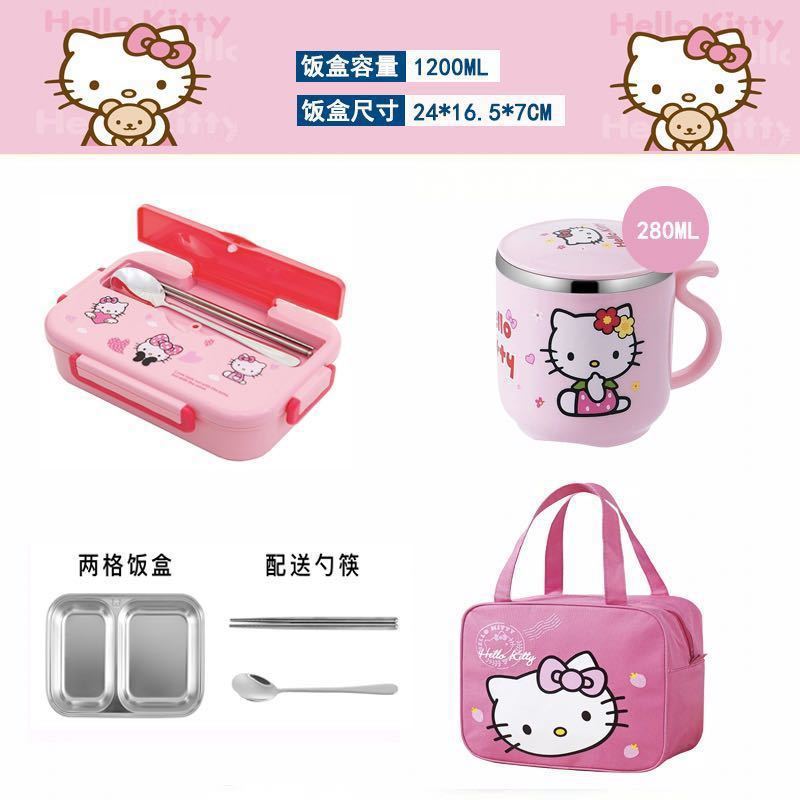Милый мультяшный ланч-бокс из нержавеющей стали для студентов, девочек, изолированная детская посуда с отделениями, котенок, шиншилла, ланч-бокс в японском стиле