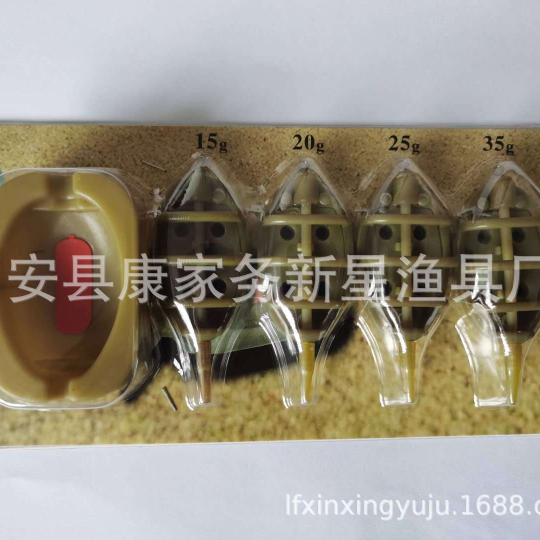 ①轻型附饵铅坠配置:一个托饵器+四个铅坠15g.20g.25g.35g