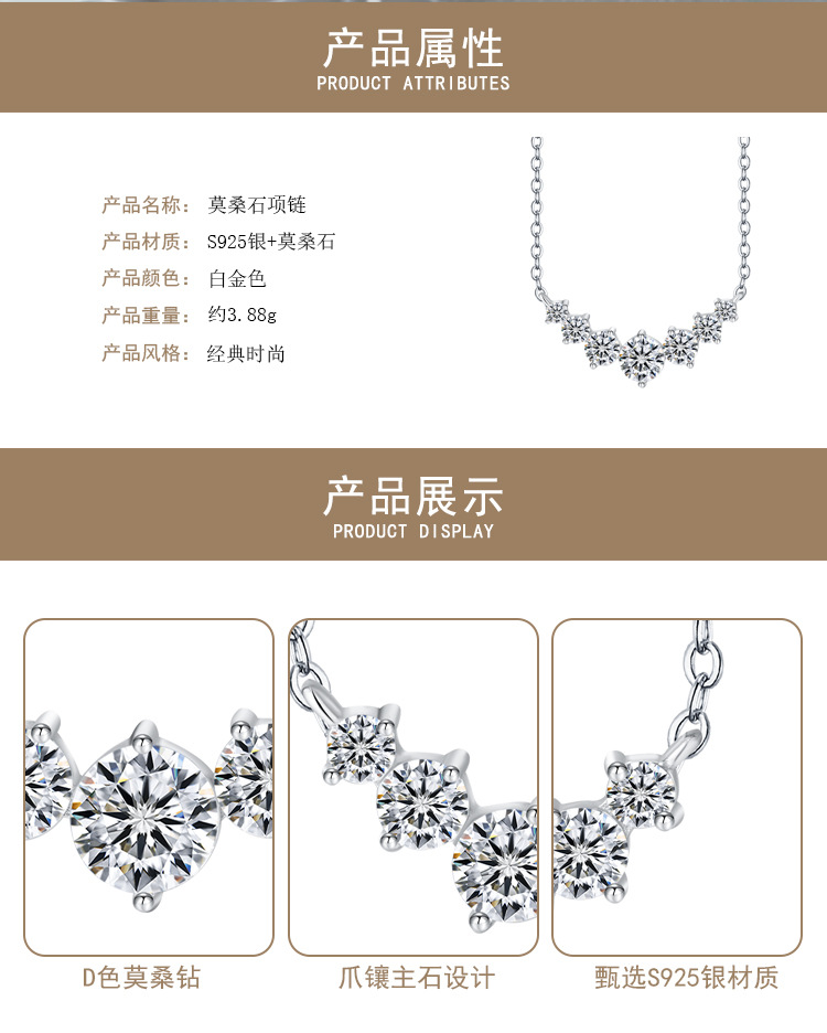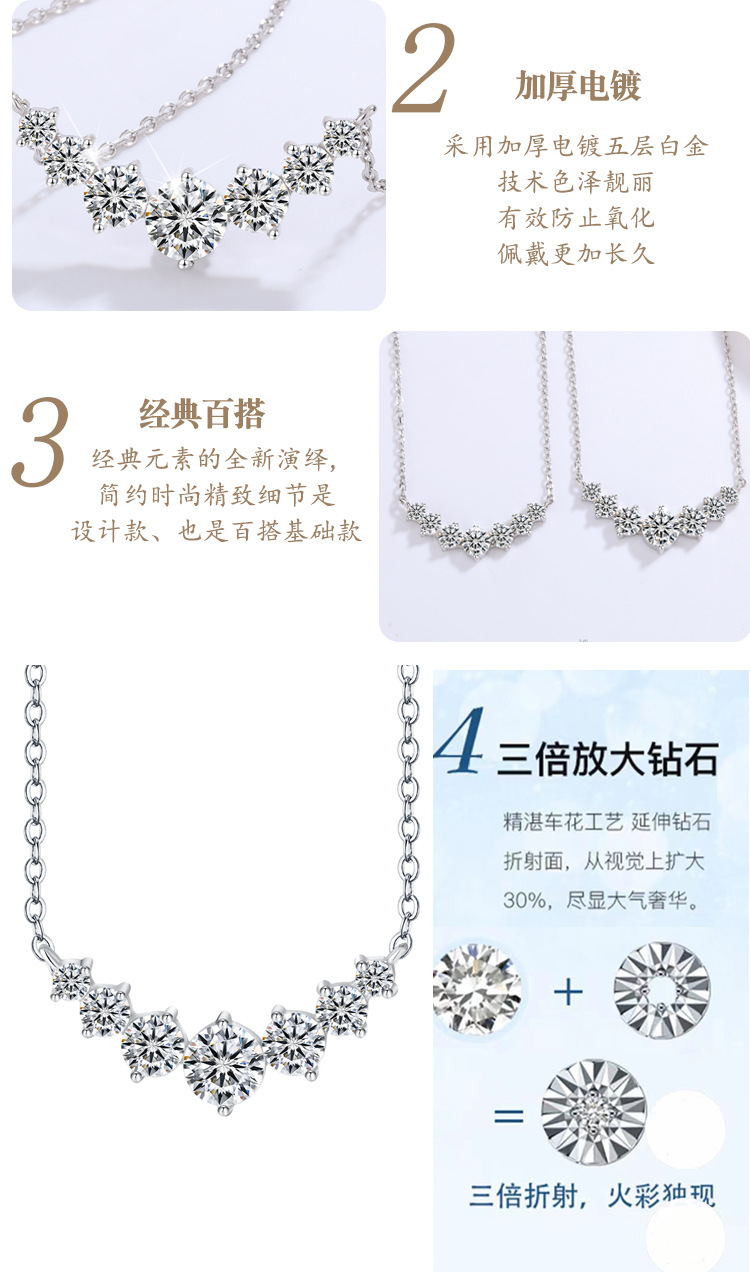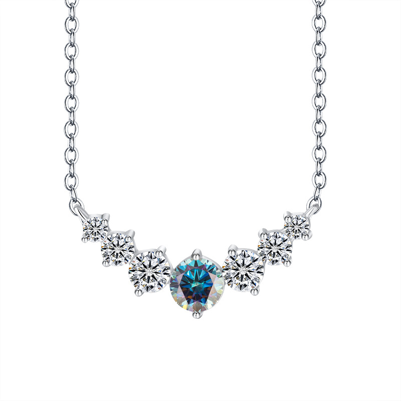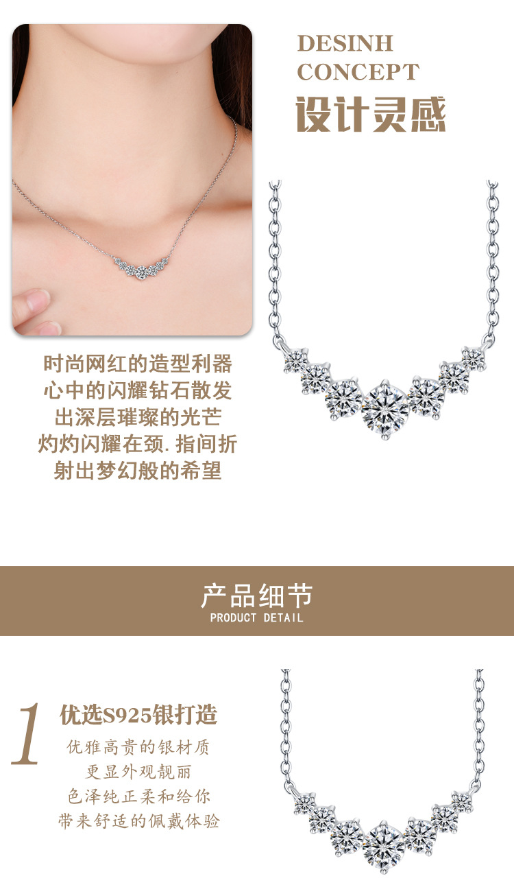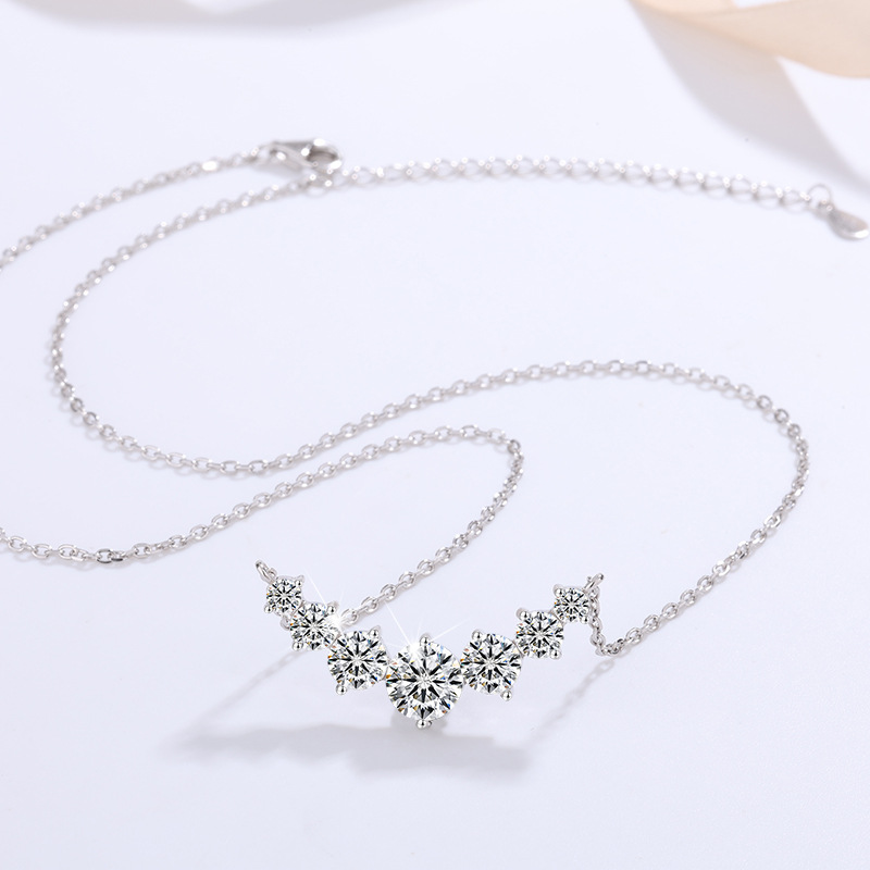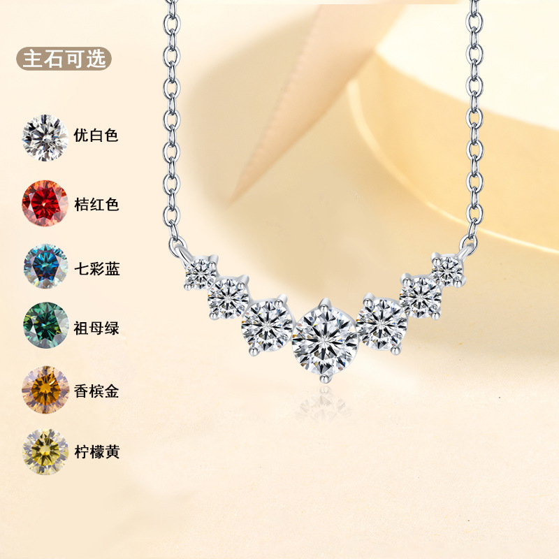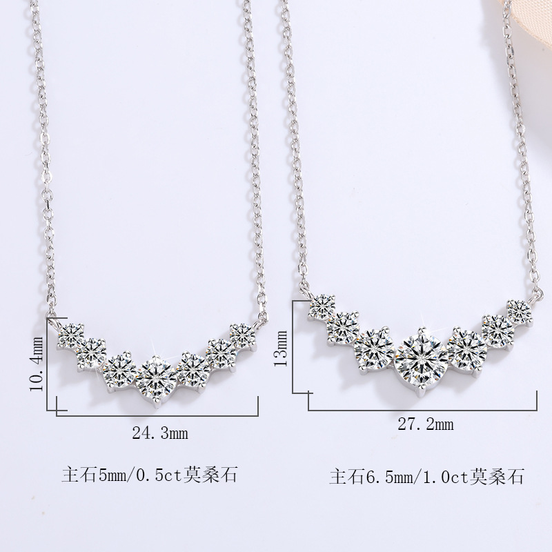 S925 Серебряный кулон Женская минималистская улыбка Семь Принцесс ключица 1.7 карат D цвет моассиан ожерелье трансграничная продажа