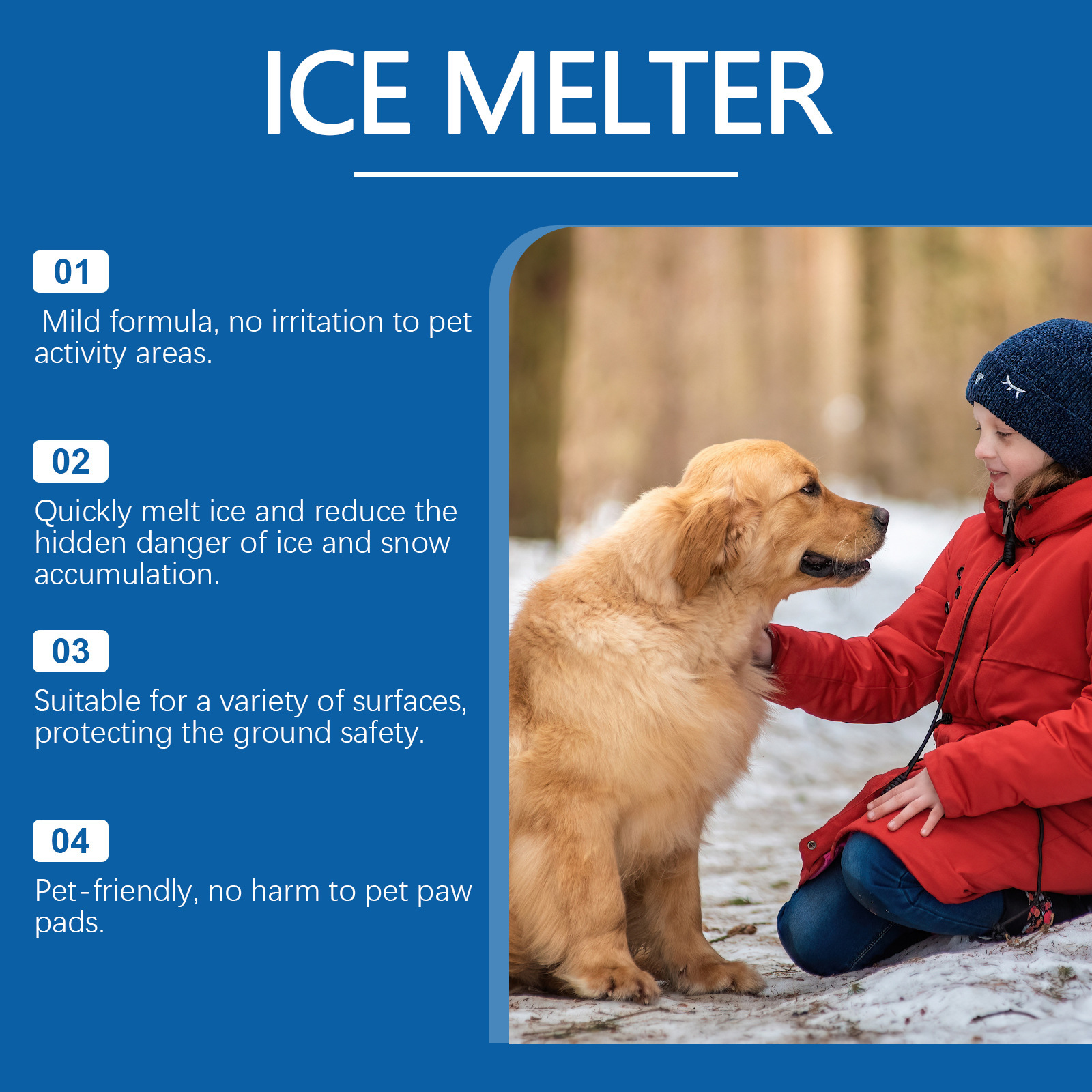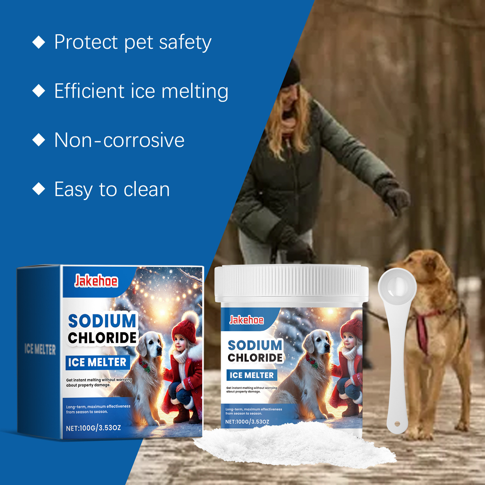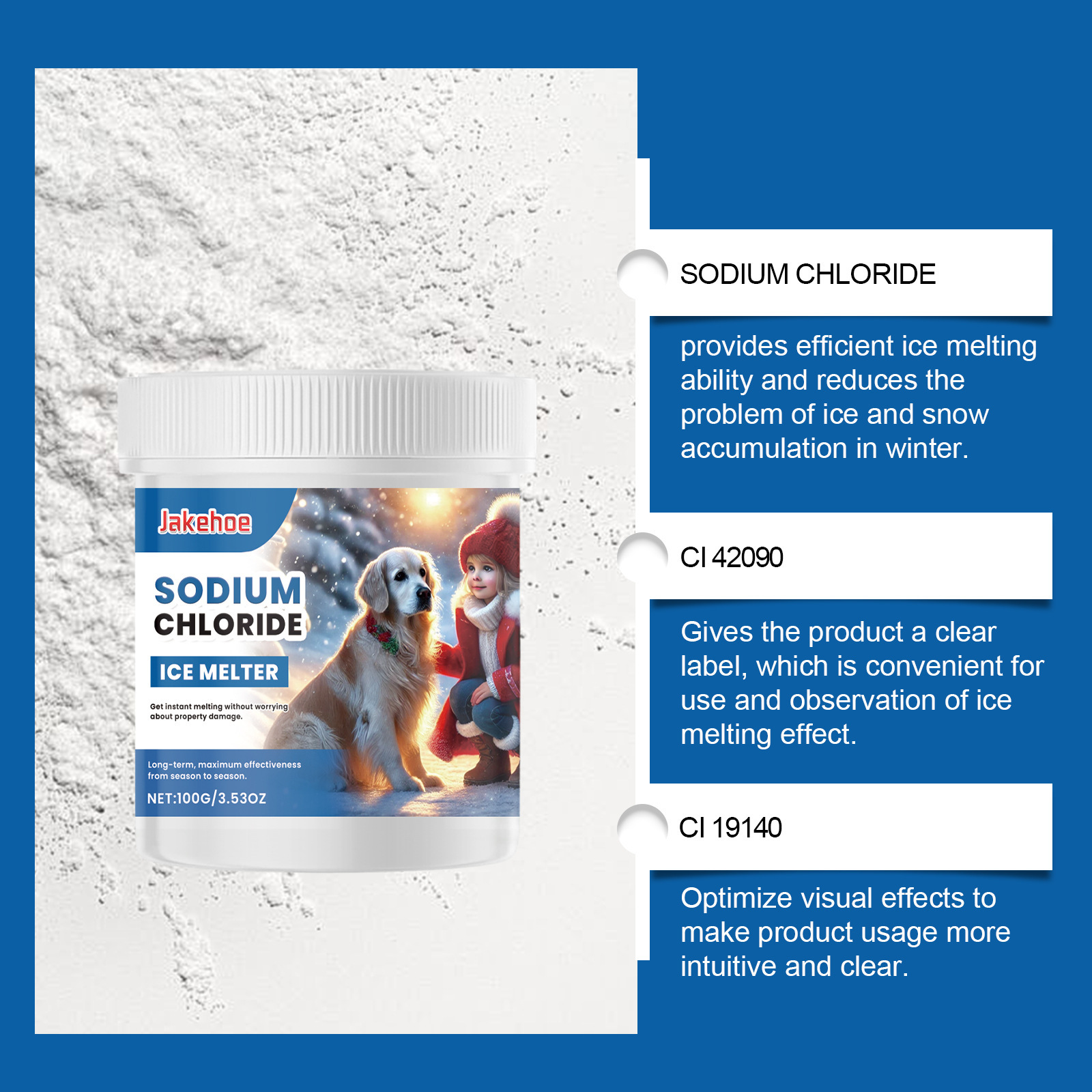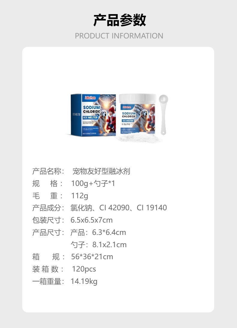 JAKEHOE Pet-благоприятный ледоплавильный агент зимний бетонный пол Улица Pet-дружелюбный таяние льда и таяние снега
