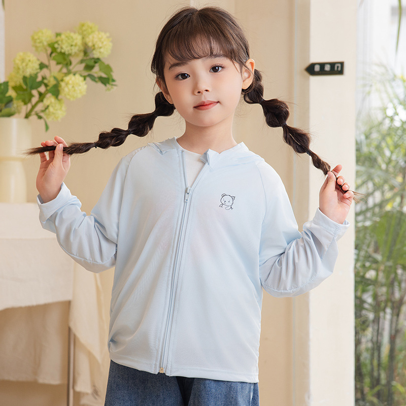 Детская солнцезащитная одежда из ледяного шелка, легкая и тонкая солнцезащитная одежда, дышащая солнцезащитная одежда с капюшоном, крутой кардиган, детская солнцезащитная куртка для женщин