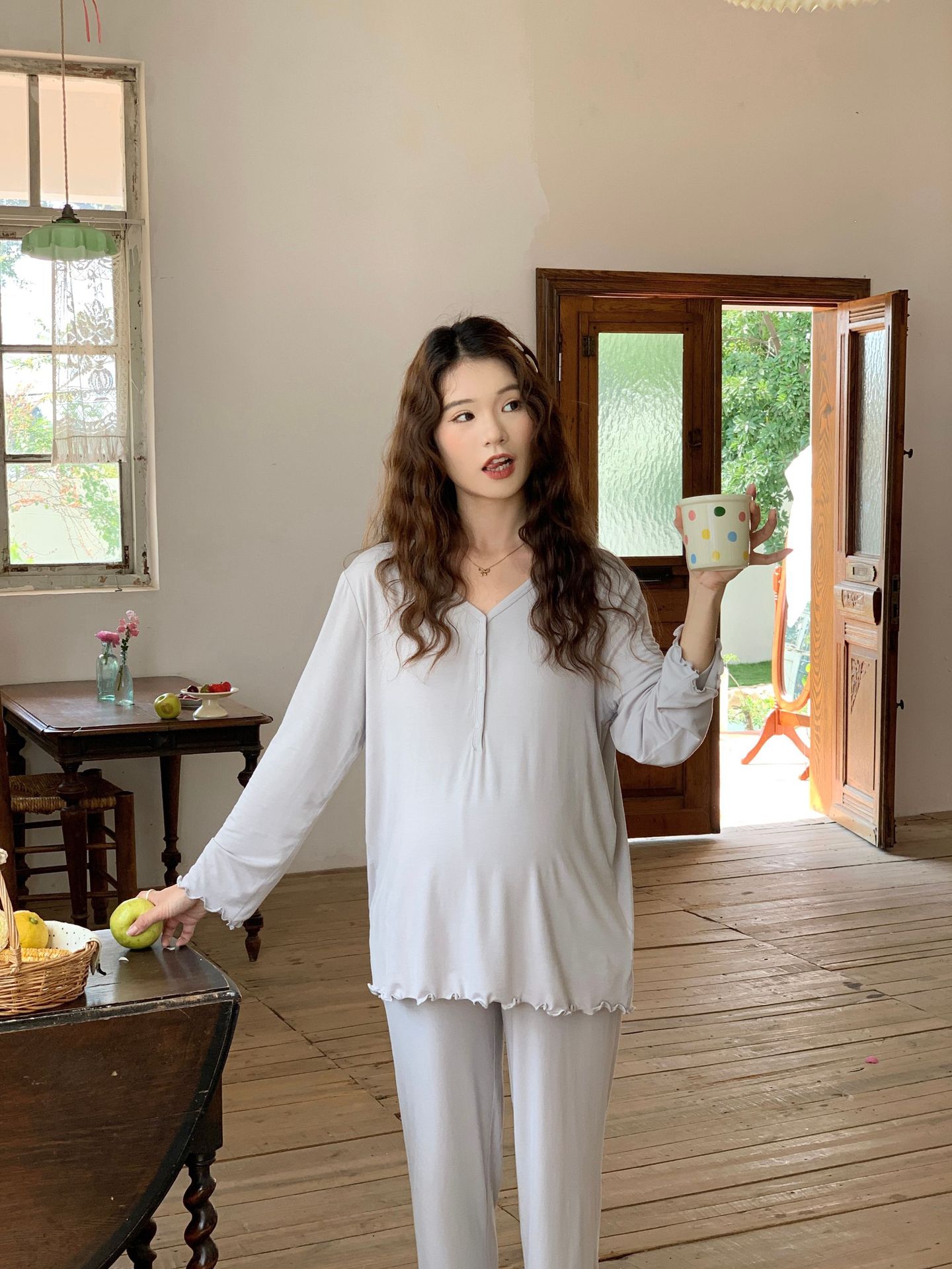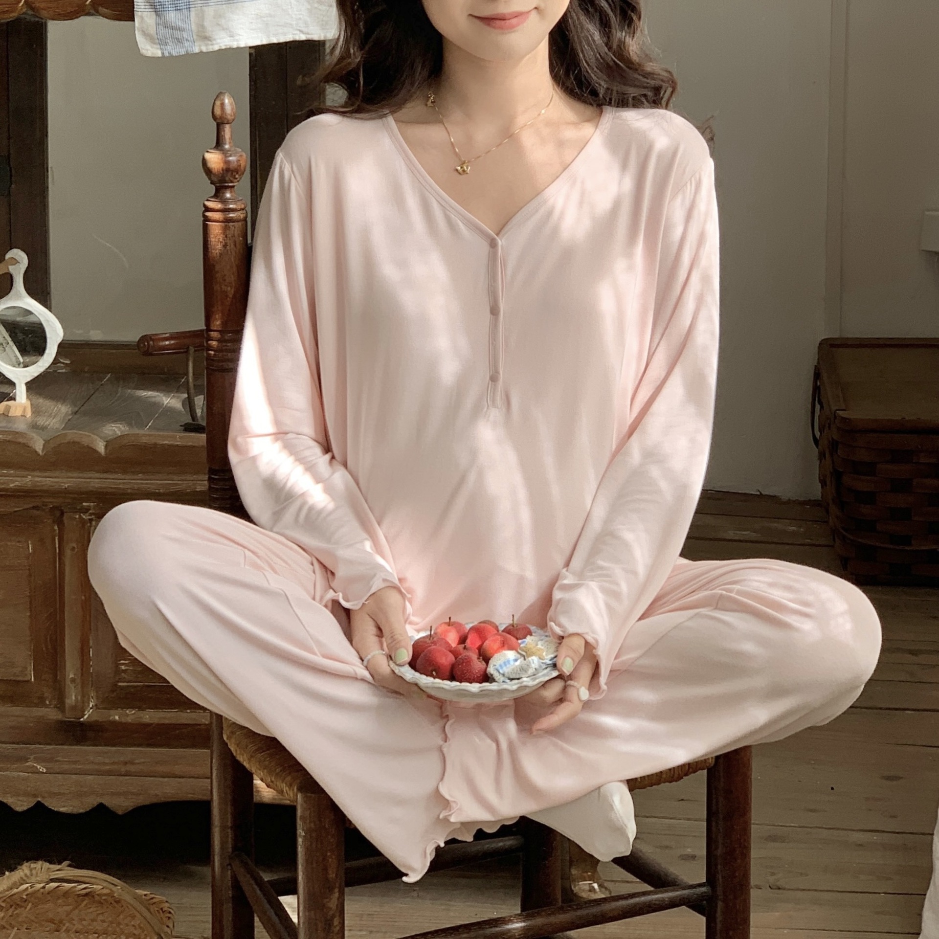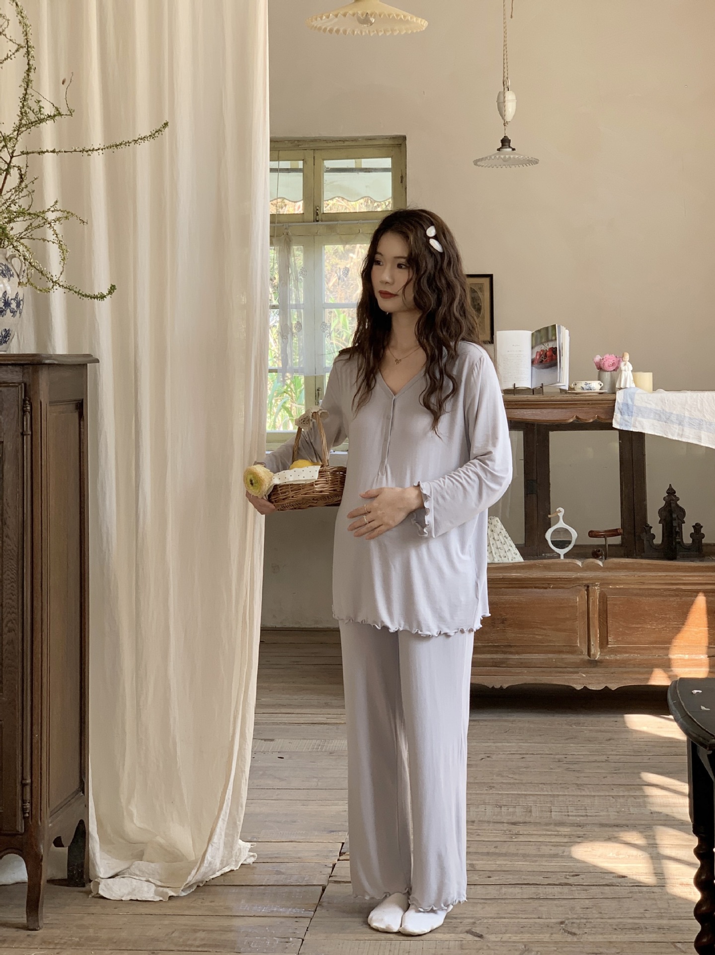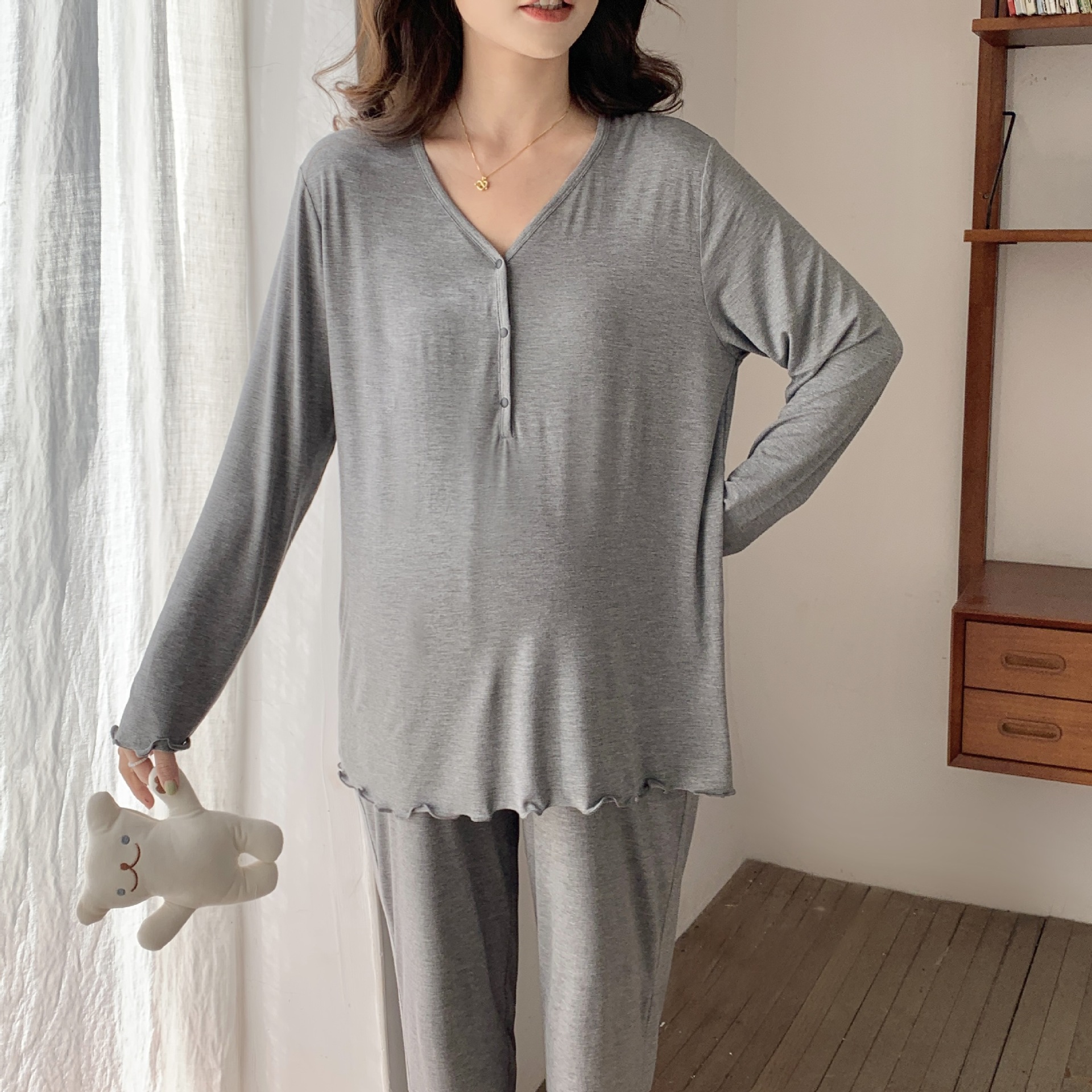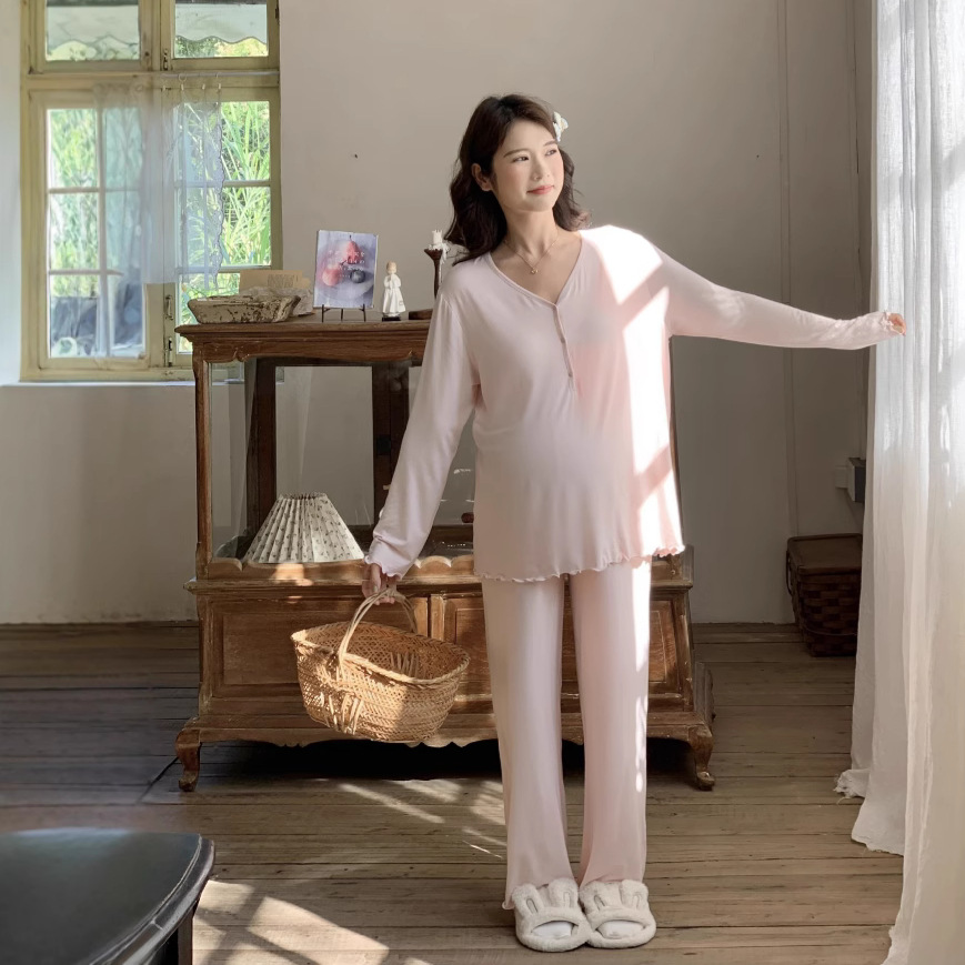 [Готовый запас 88199] Модальные пижамы для беременных, одежда для кормления, послеродовая весенне-осенняя домашняя одежда для беременных во время беременности.