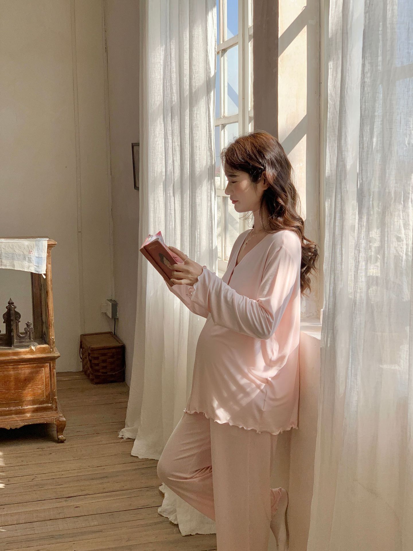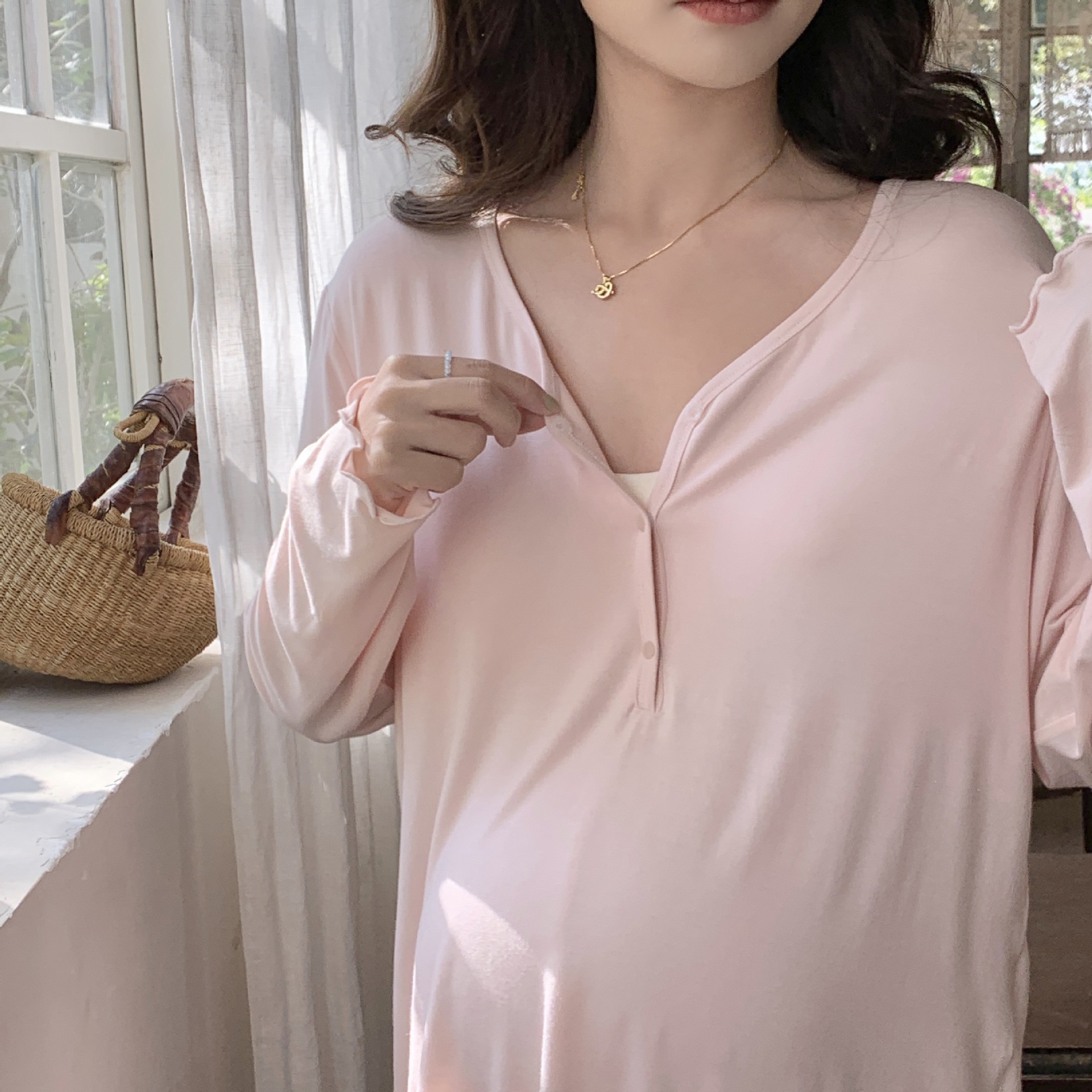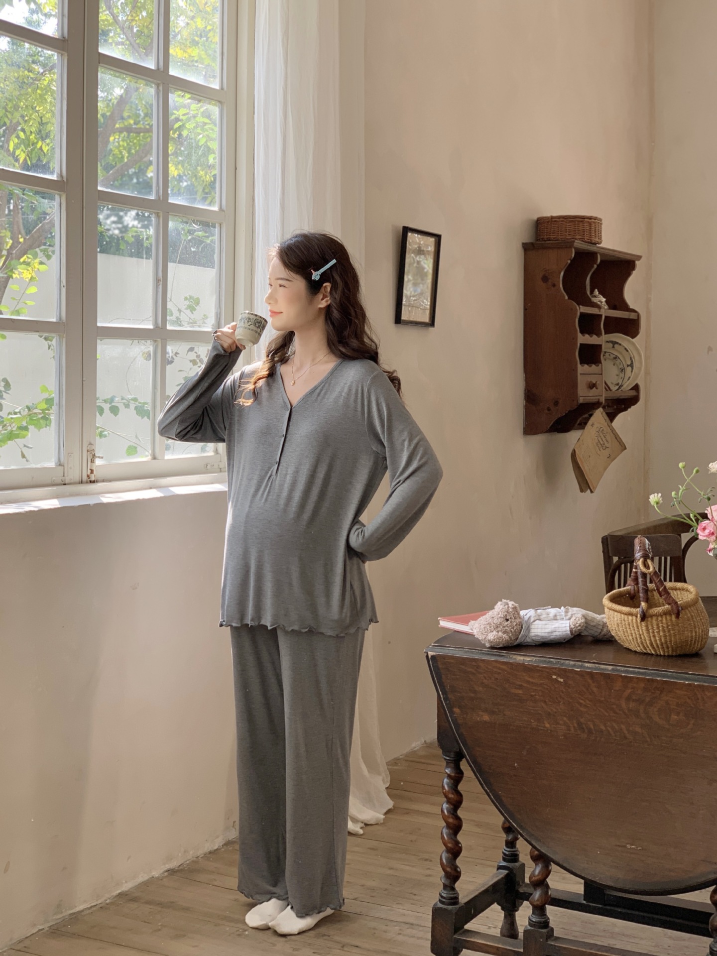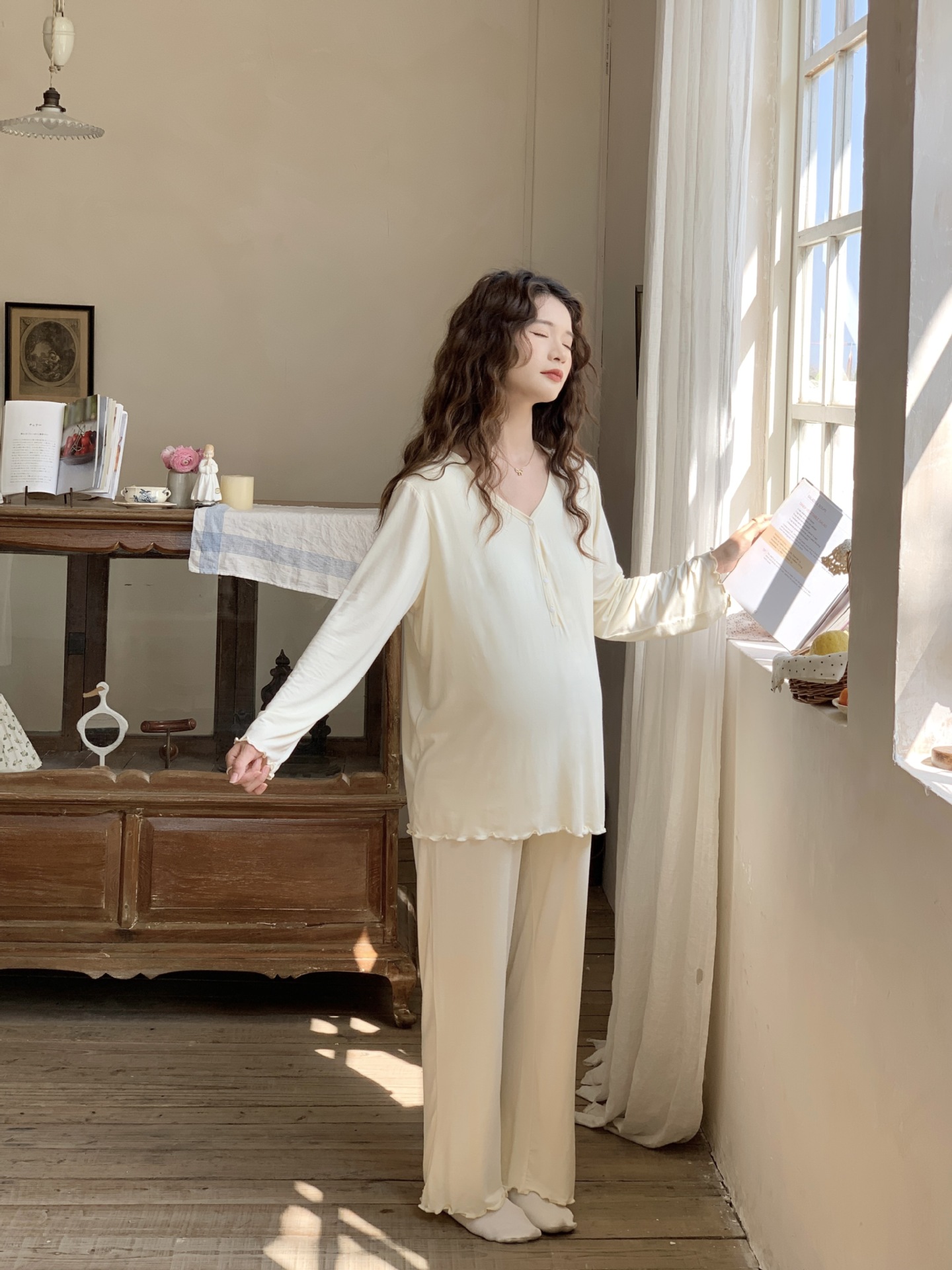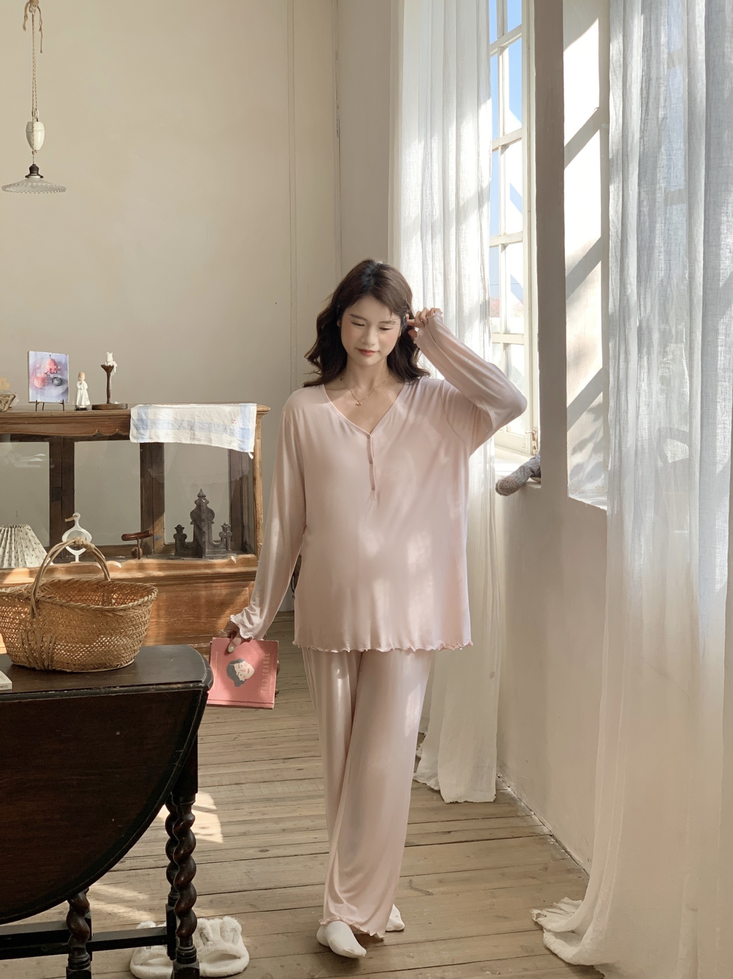 [Готовый запас 88199] Модальные пижамы для беременных, одежда для кормления, послеродовая весенне-осенняя домашняя одежда для беременных во время беременности.
