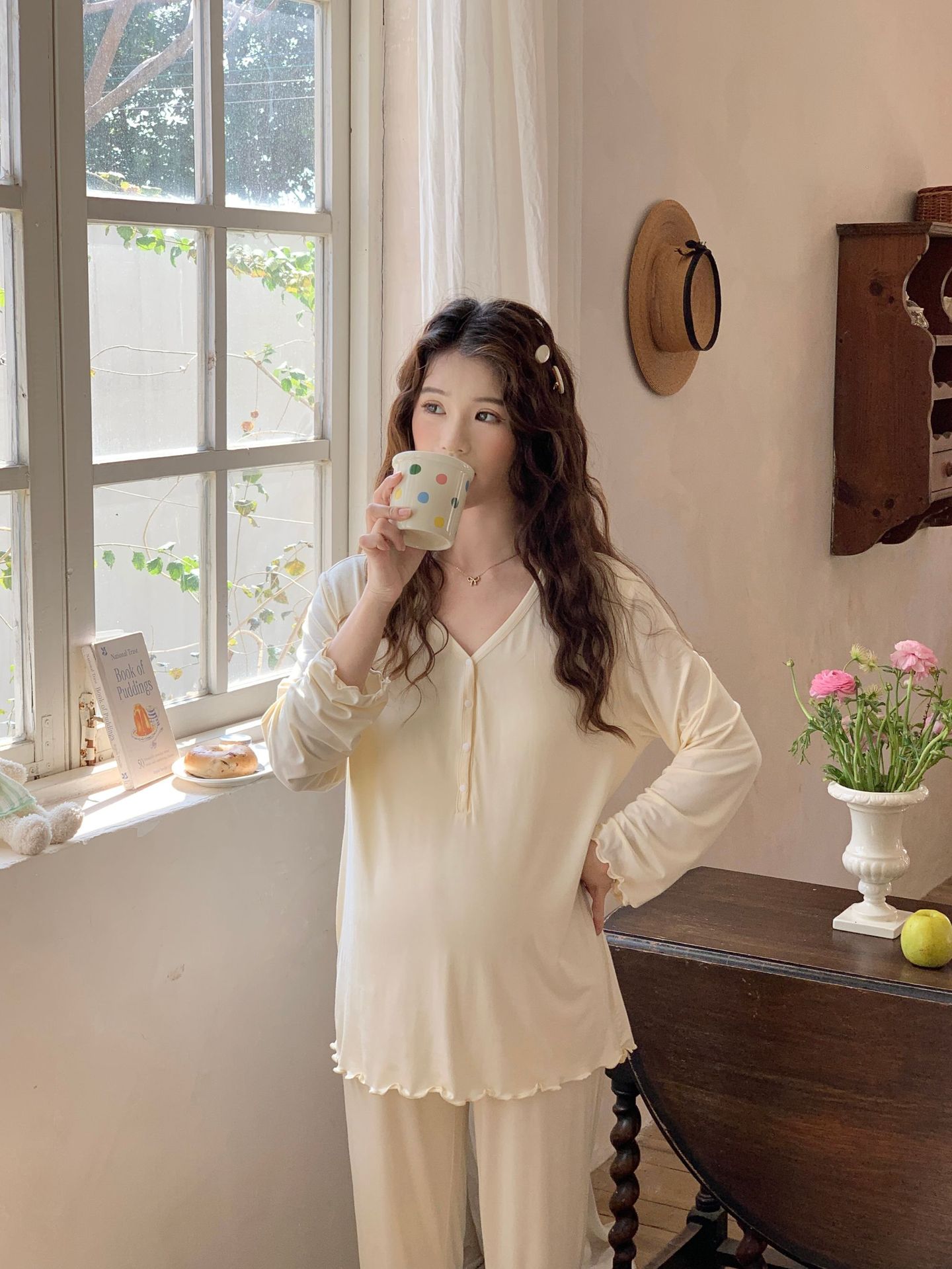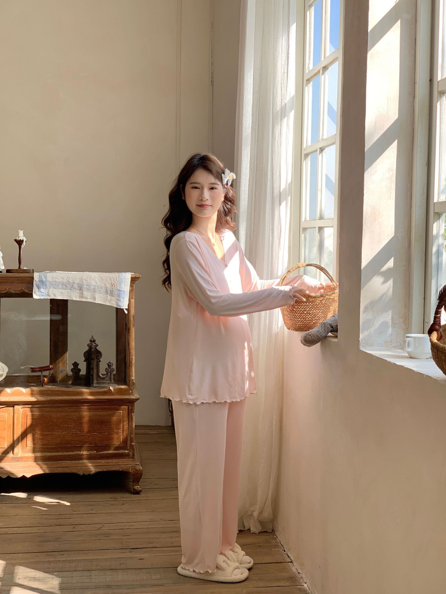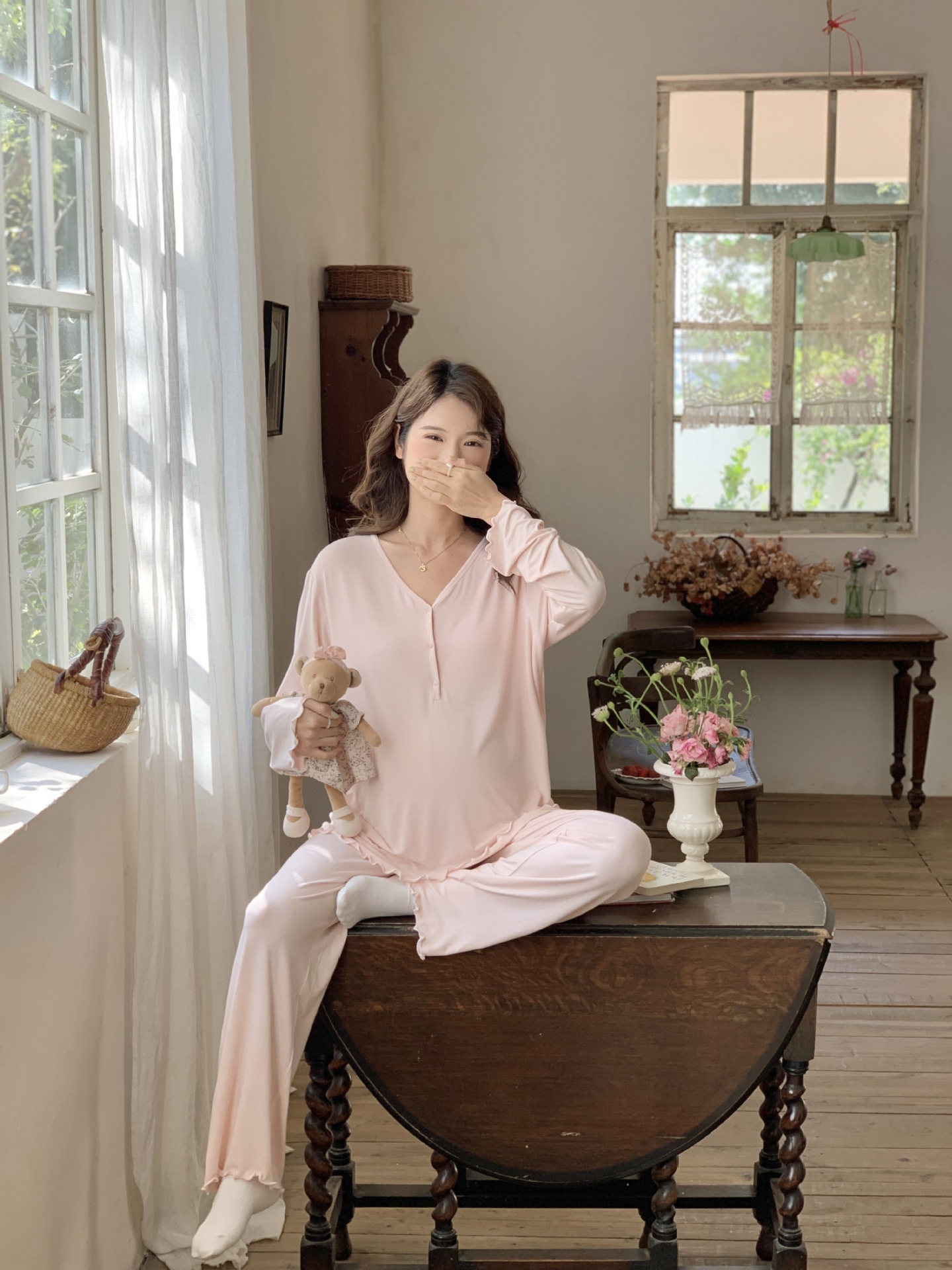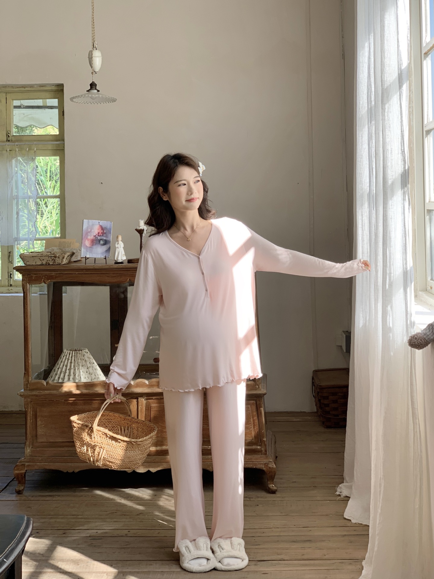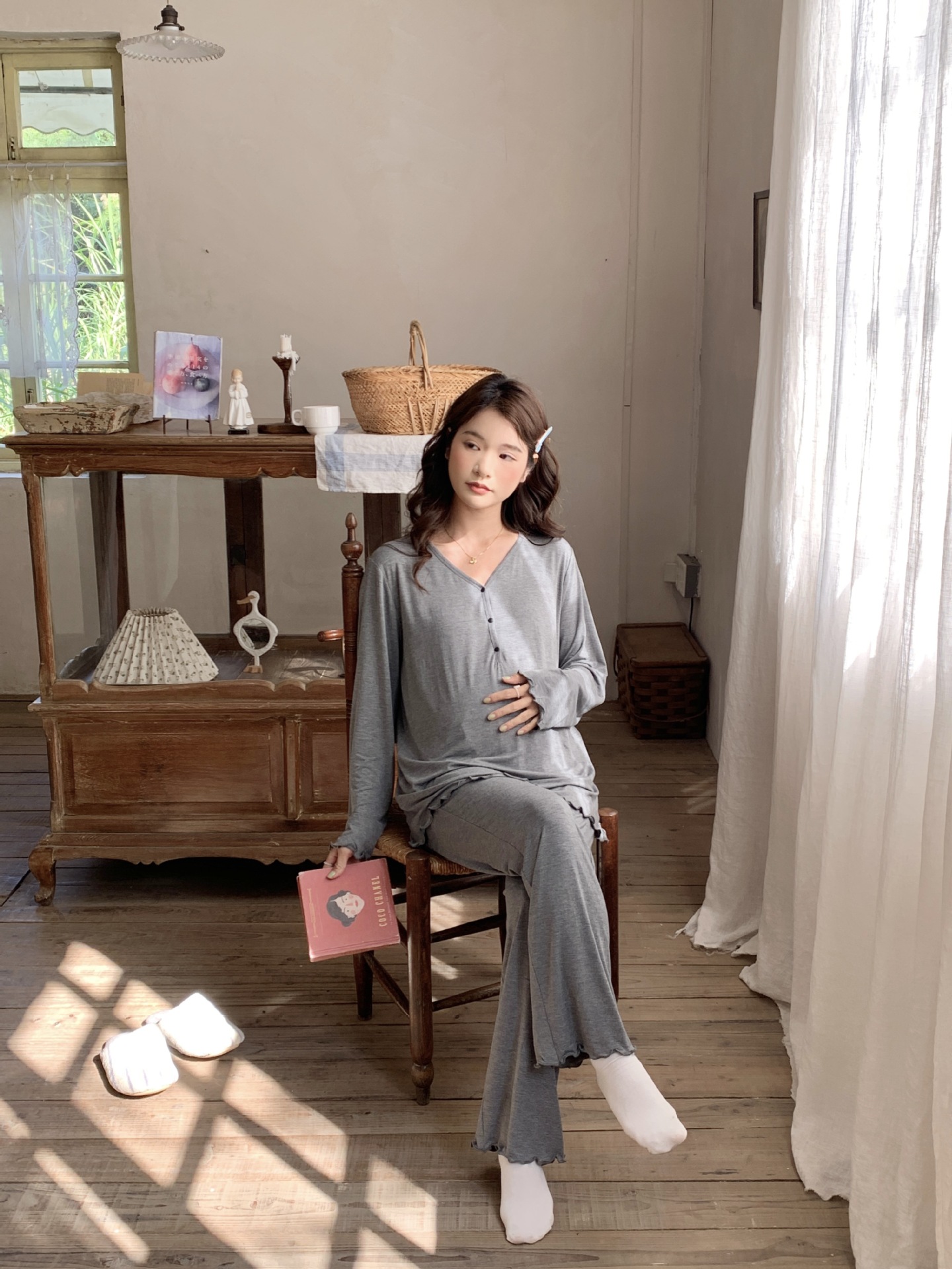 [Готовый запас 88199] Модальные пижамы для беременных, одежда для кормления, послеродовая весенне-осенняя домашняя одежда для беременных во время беременности.