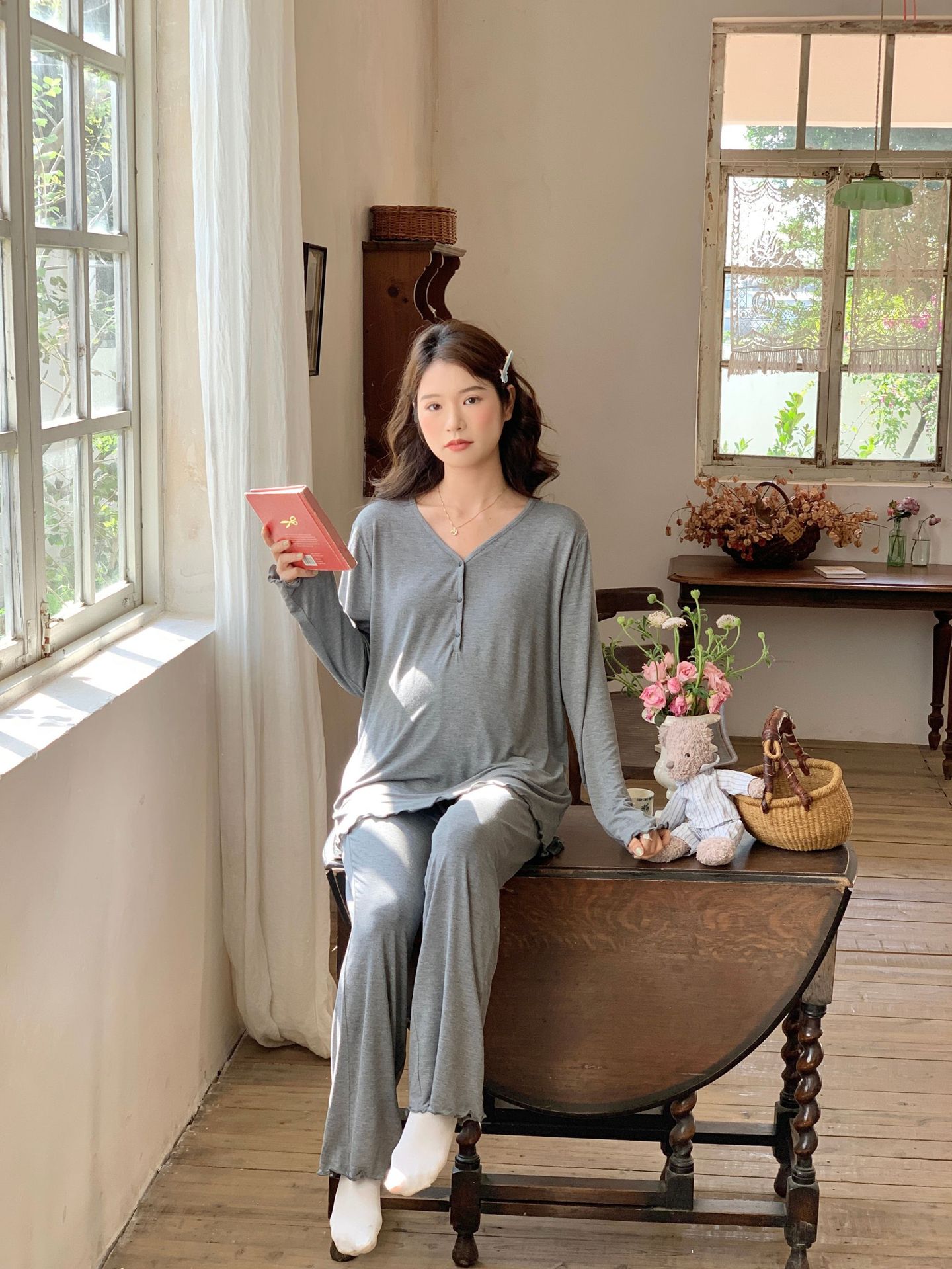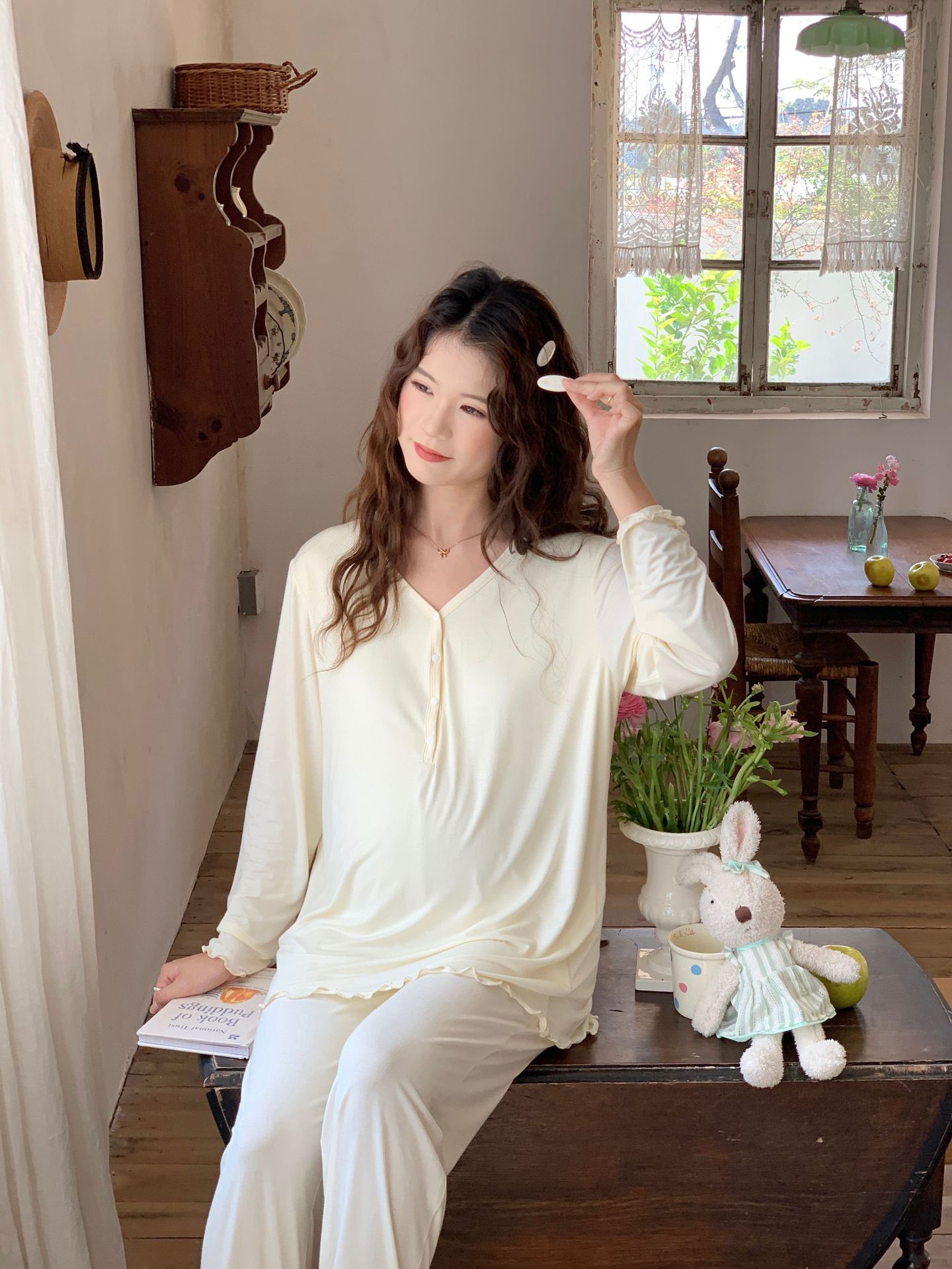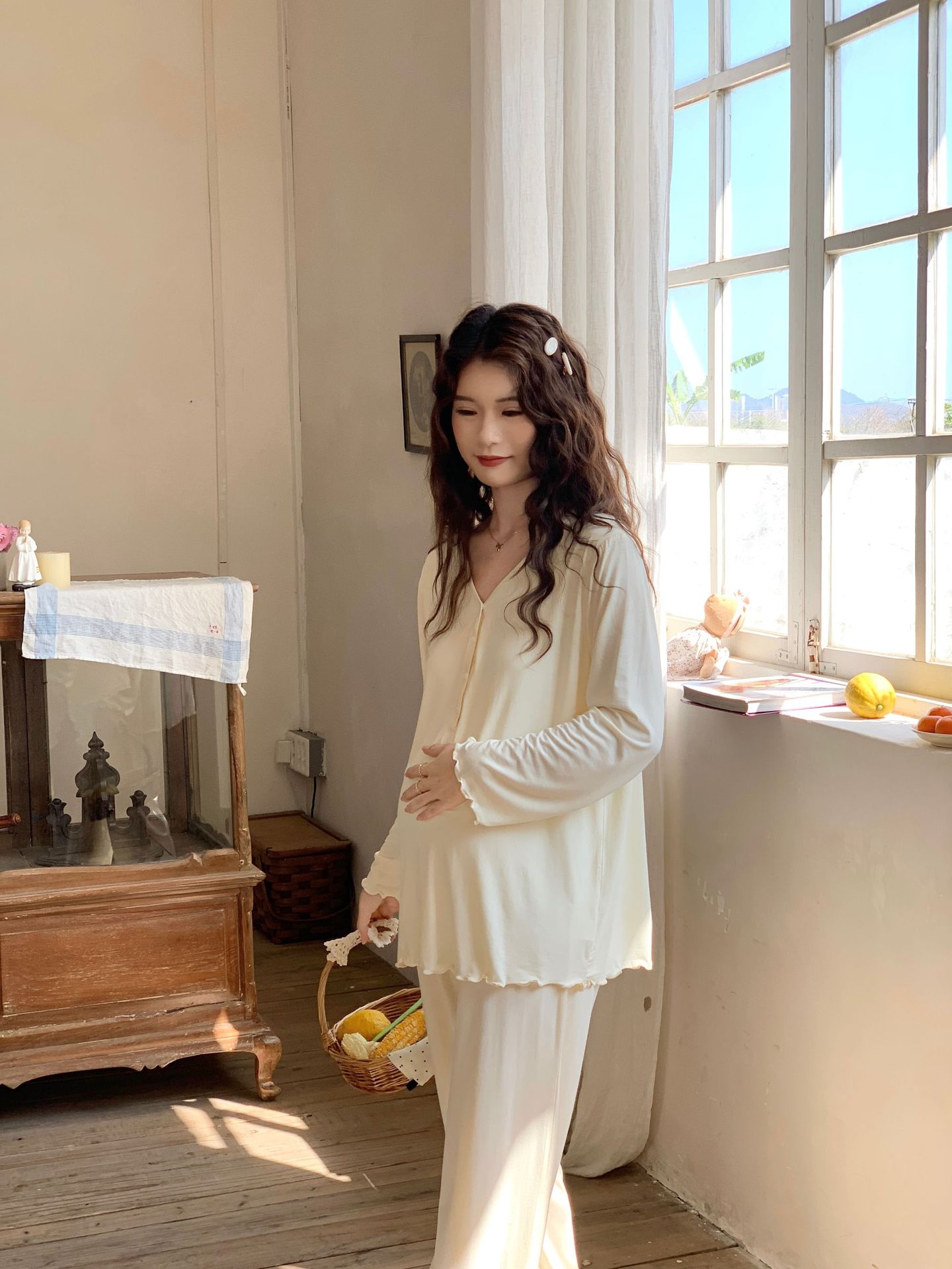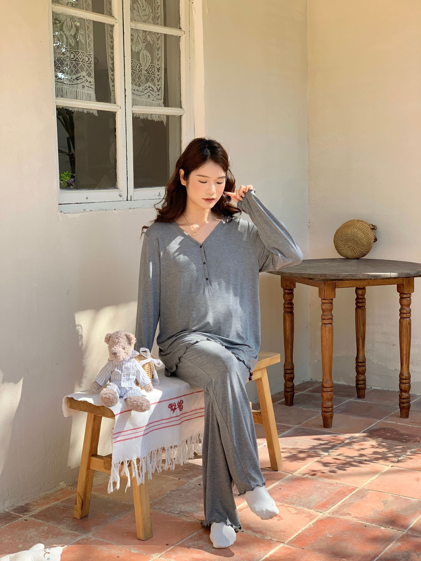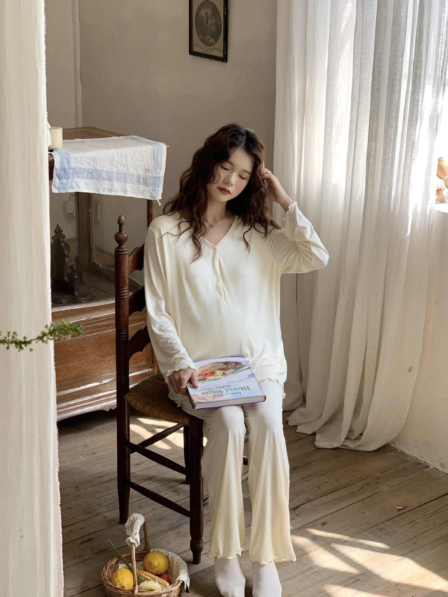 [Готовый запас 88199] Модальные пижамы для беременных, одежда для кормления, послеродовая весенне-осенняя домашняя одежда для беременных во время беременности.