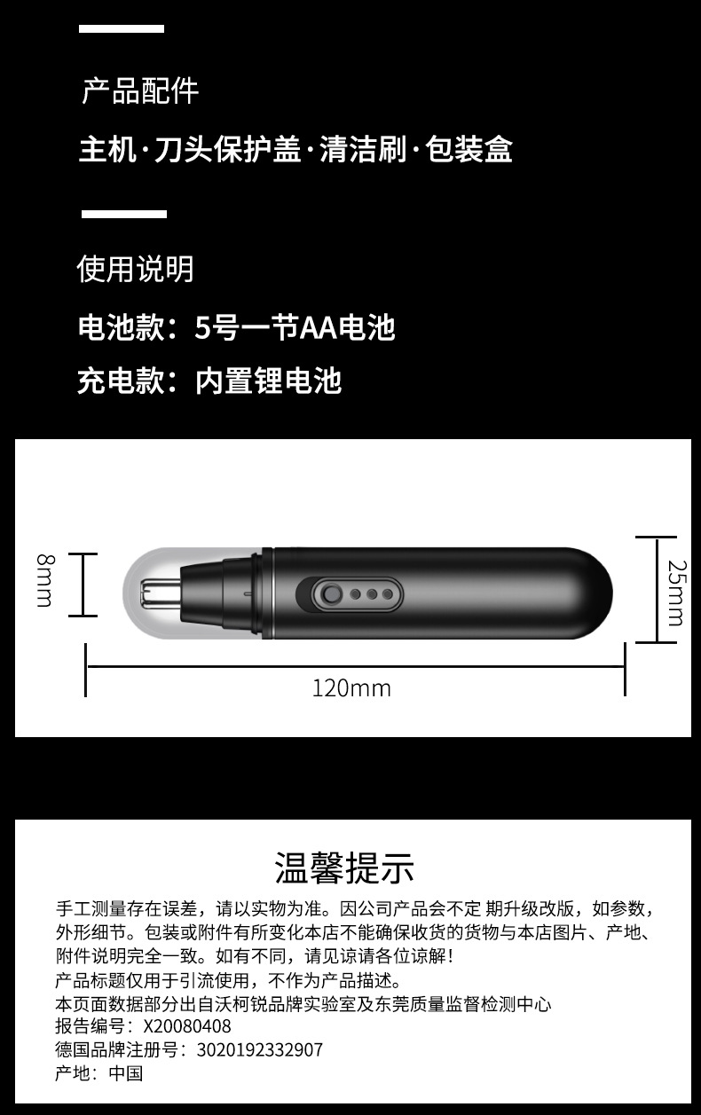 【产品包含】:主机,USB充电线,毛刷,说明书