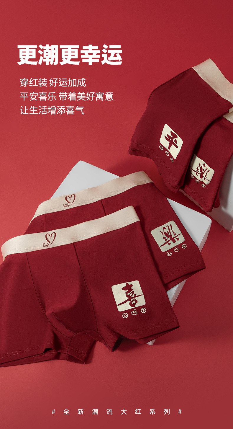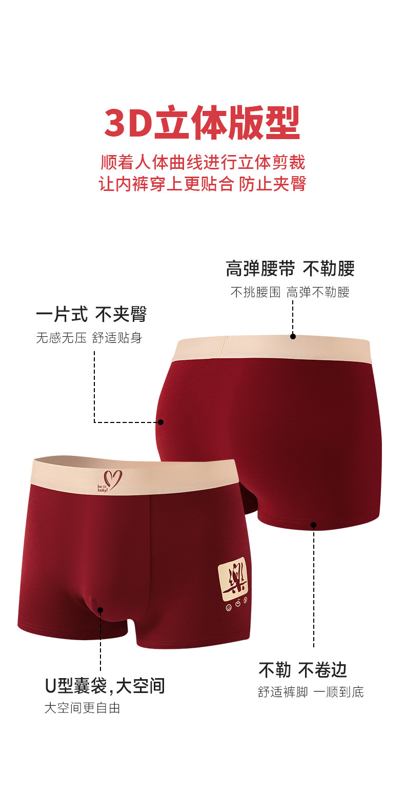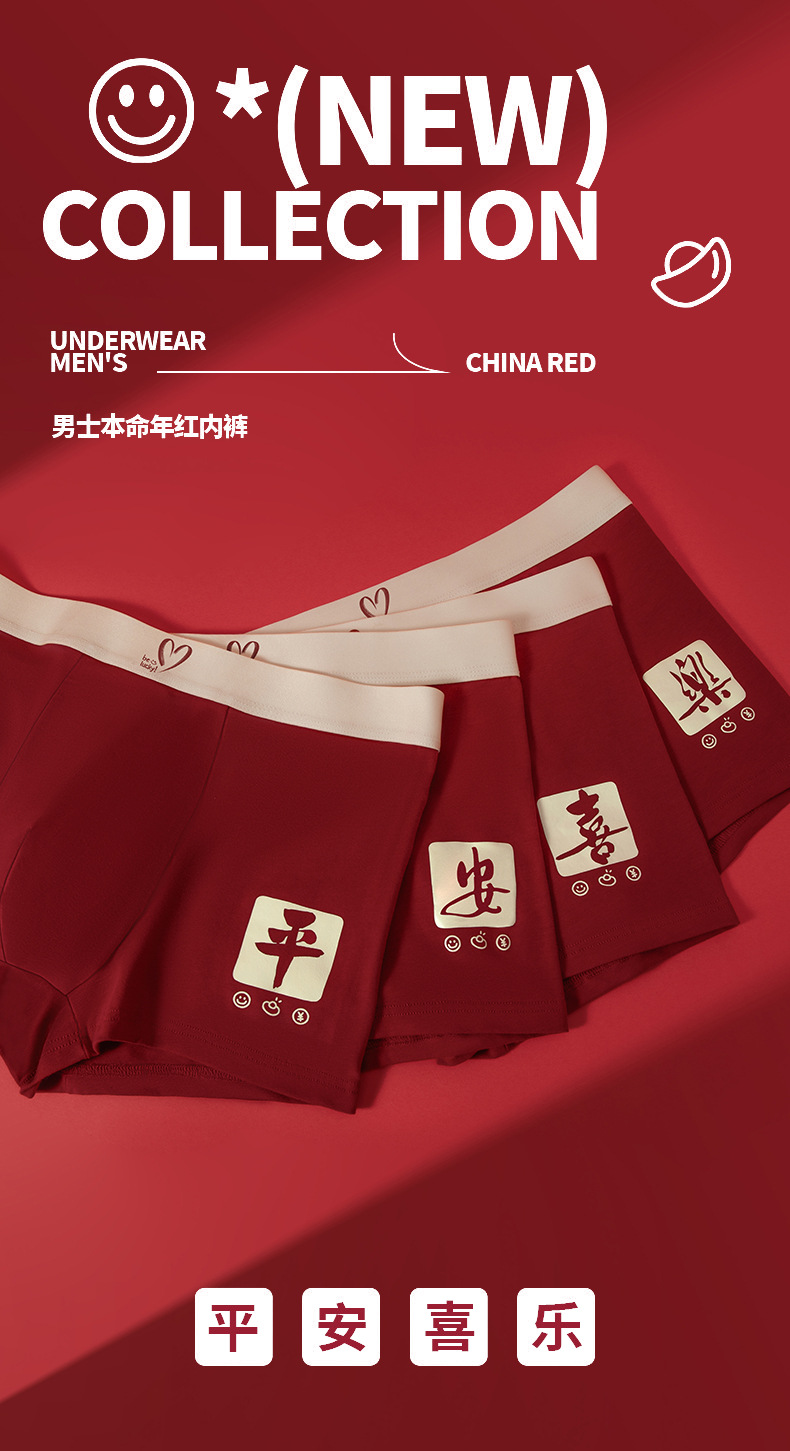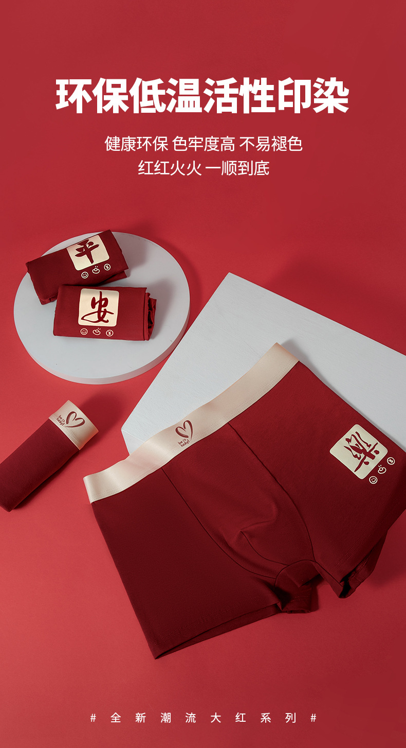 Год рождения мужское нижнее белье мальчики боксеры хлопчатобумажные хлопчатобумажные большие красные антибактериальные дышащие