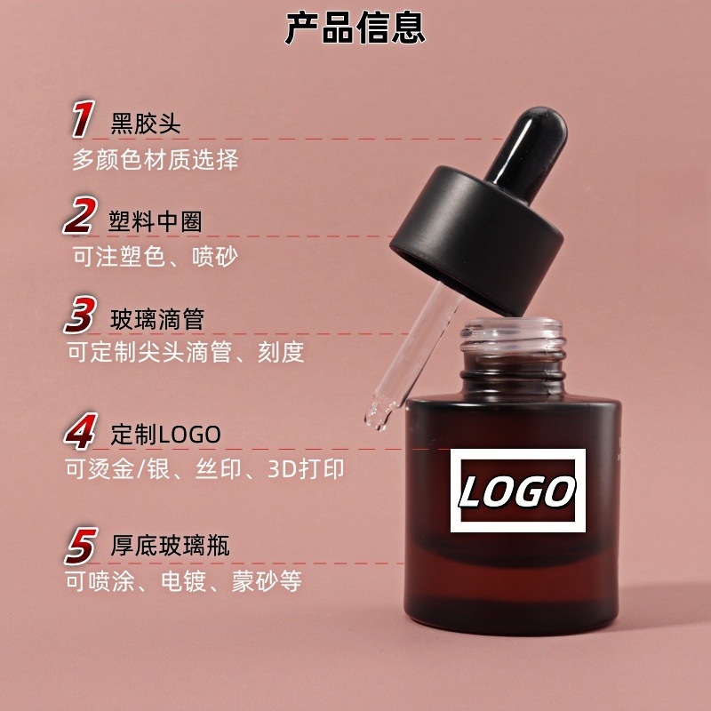20ml透明液体化妆品滴管旅行分装瓶 滴管圆形茶色密封精油玻璃瓶