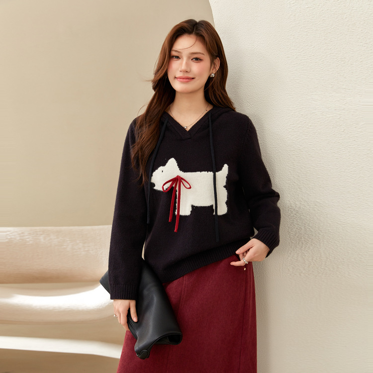 [Уменьшение возраста щенок повседневный ленивый свитер с капюшоном] Funny Show большой размер женский толстый mm2025 весенний новый