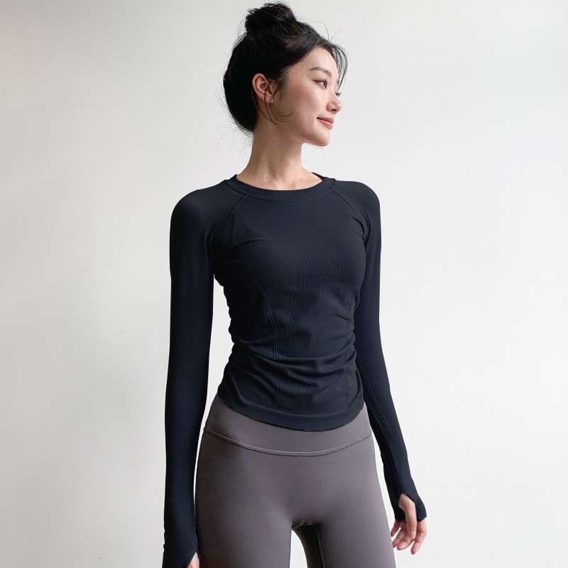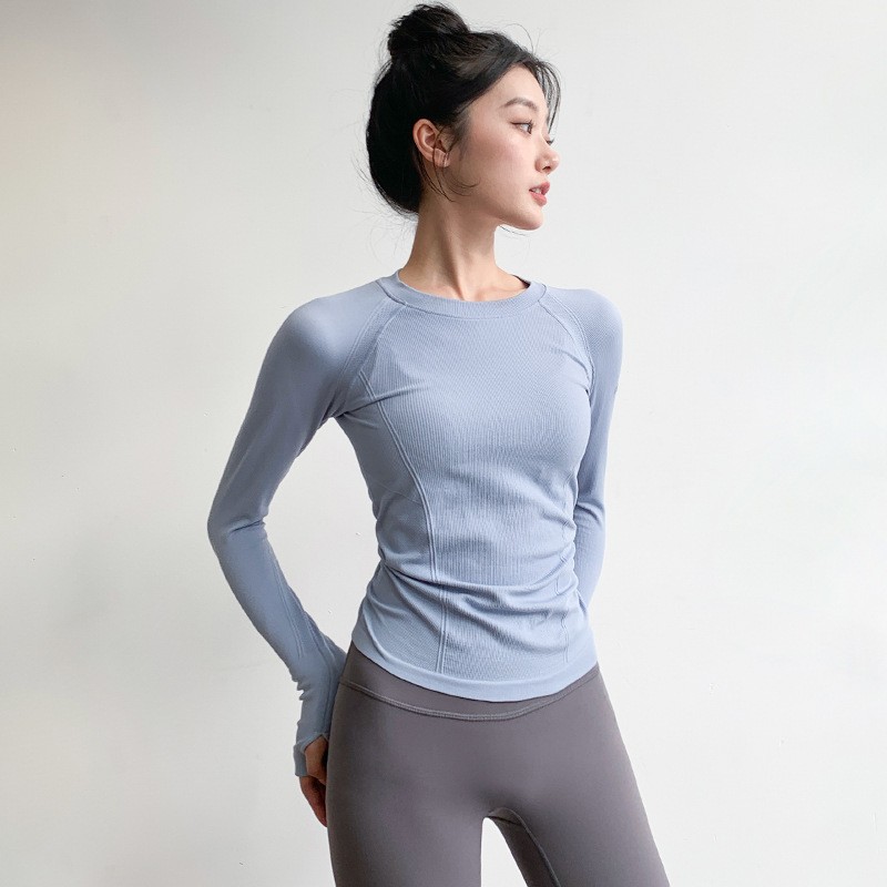Йога топ женская осенняя и зимняя спортивная футболка пилатес тренировочный костюм фитнес с длинными рукавами с высоким пуля с круглым вырезом нижняя рубашка осень-зима