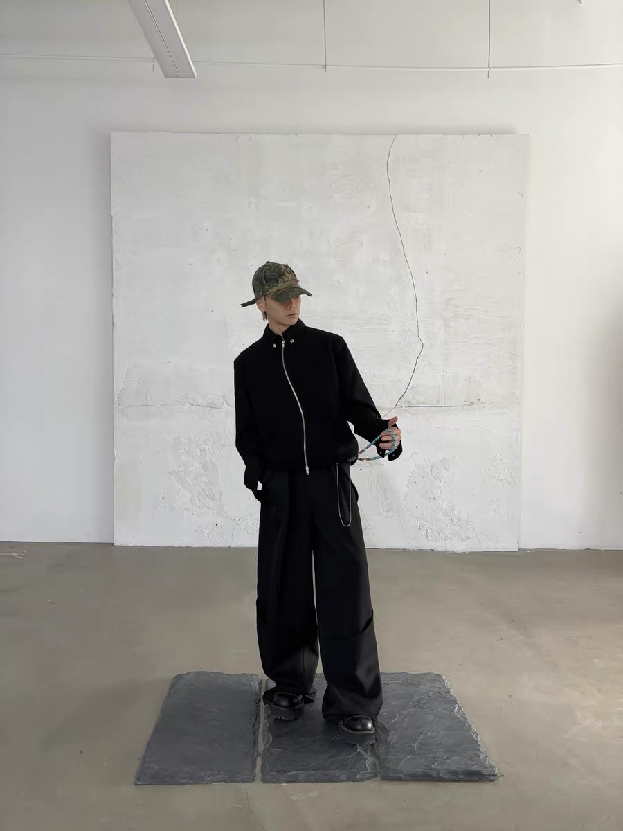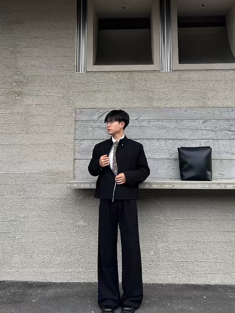Высокое товарное S застежка-молния шерстяная смешанная наплечная исполнительная куртка мужские 2025 весна cleanfit профиль короткая широкая куртка