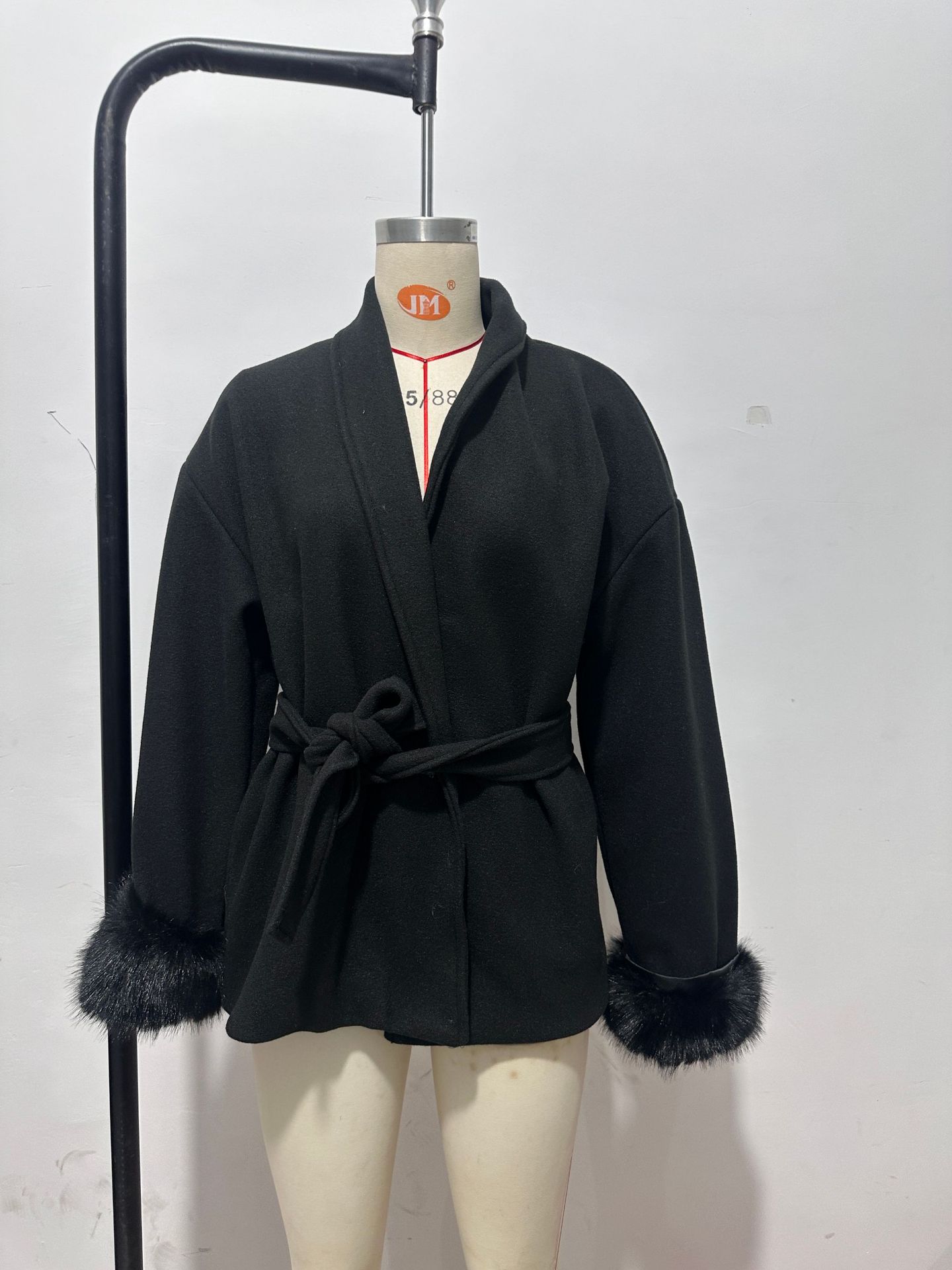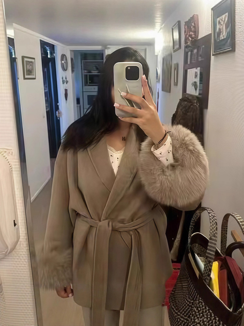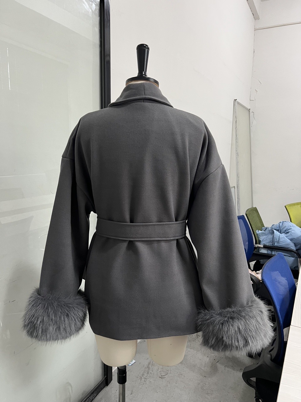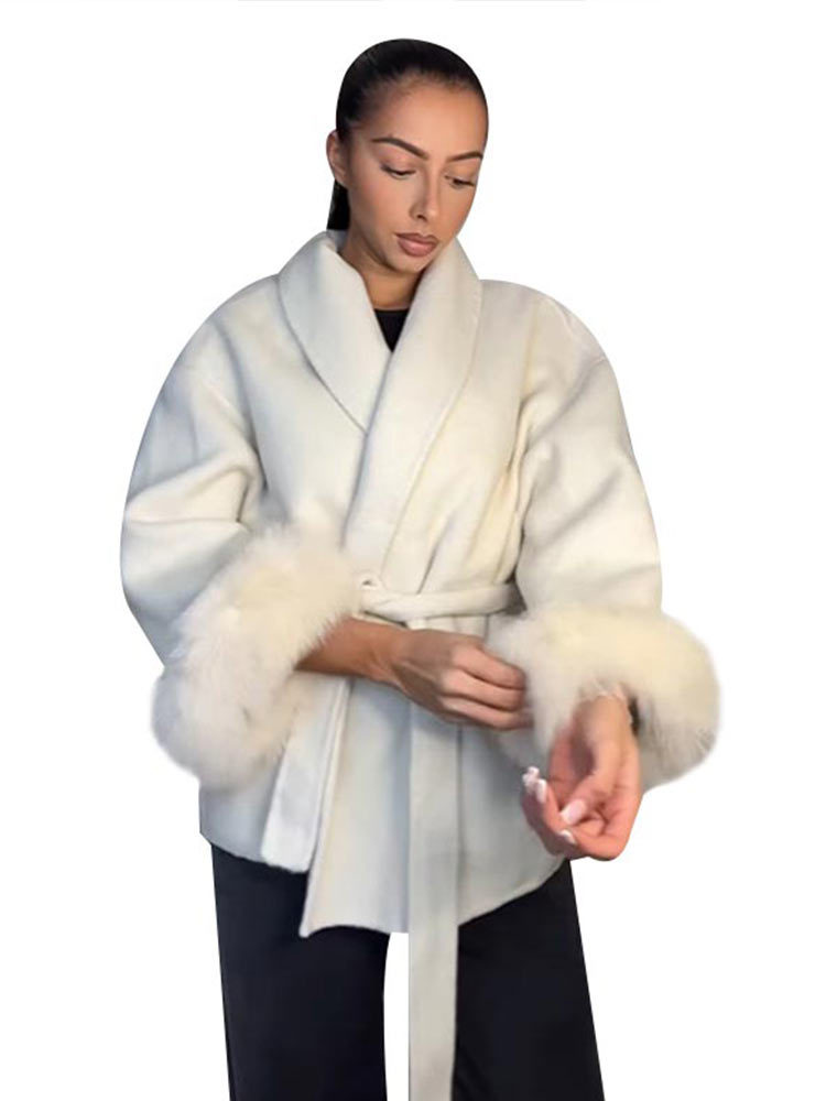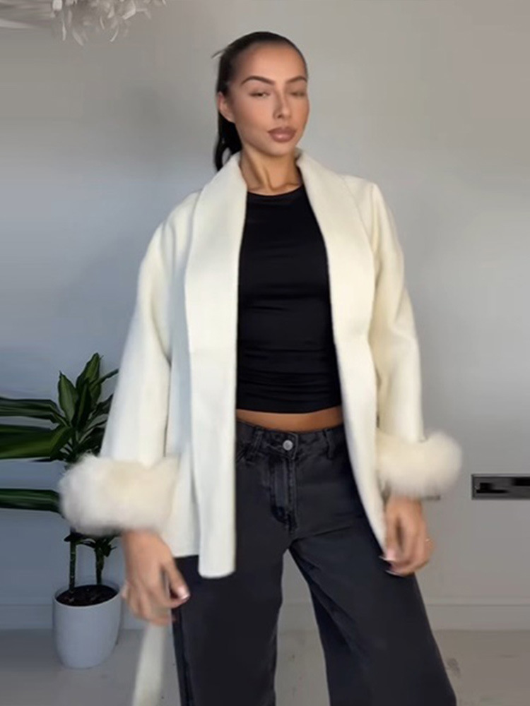 В наличии: Новая модель весна 2025 – элегантный пиджак с меховыми манжетами и отложным воротником для трансграничной торговли на платформах Amazon и других независимых площадках.