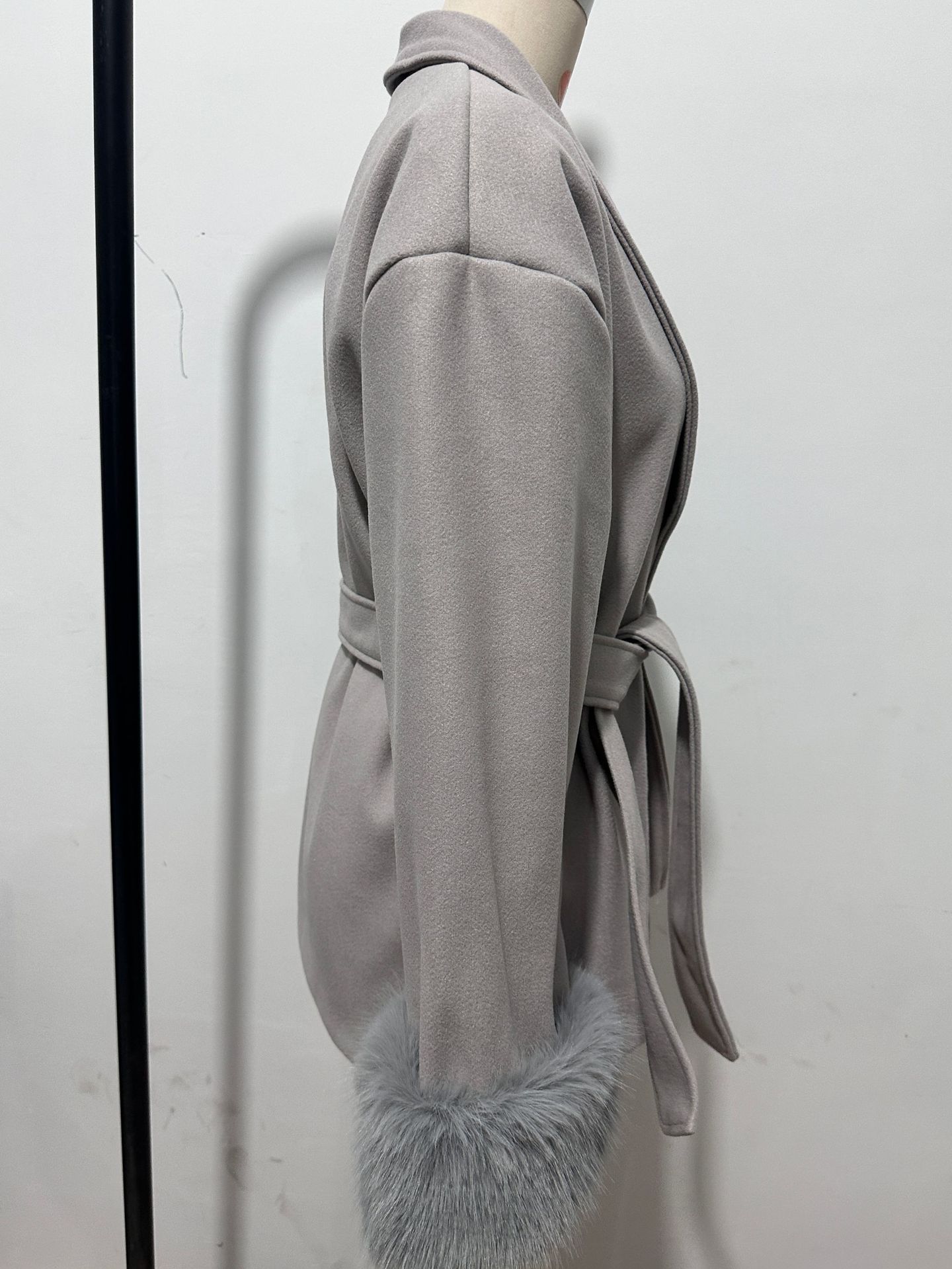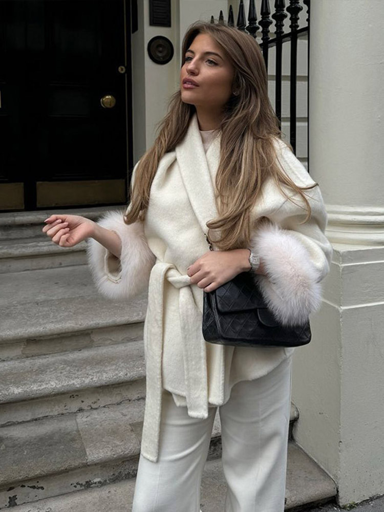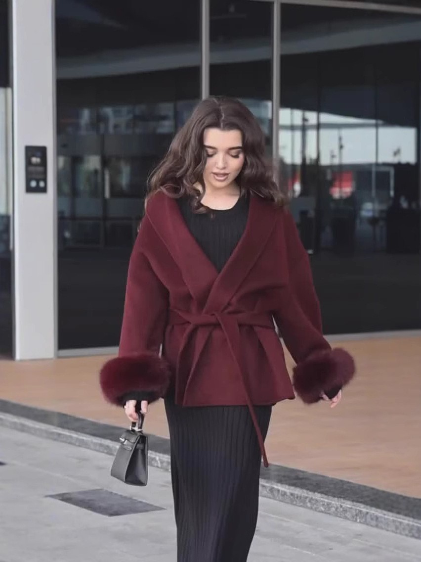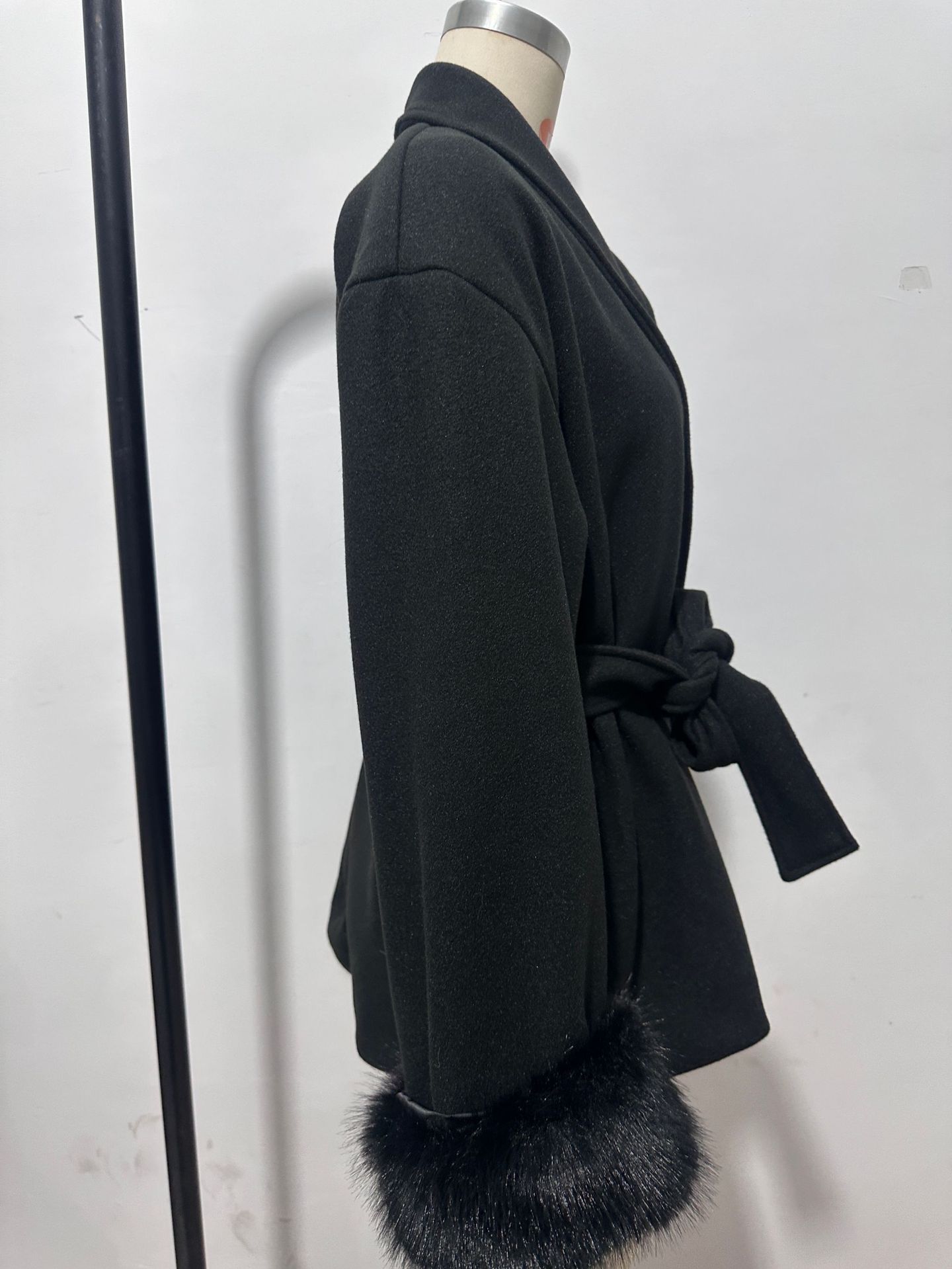 В наличии: Новая модель весна 2025 – элегантный пиджак с меховыми манжетами и отложным воротником для трансграничной торговли на платформах Amazon и других независимых площадках.
