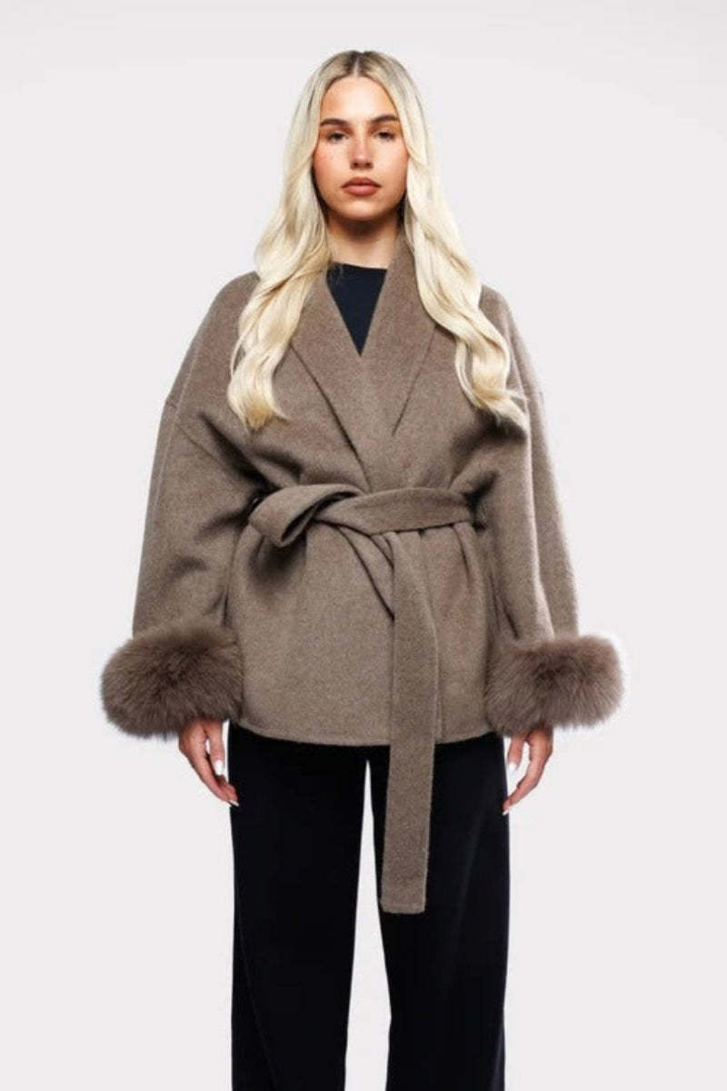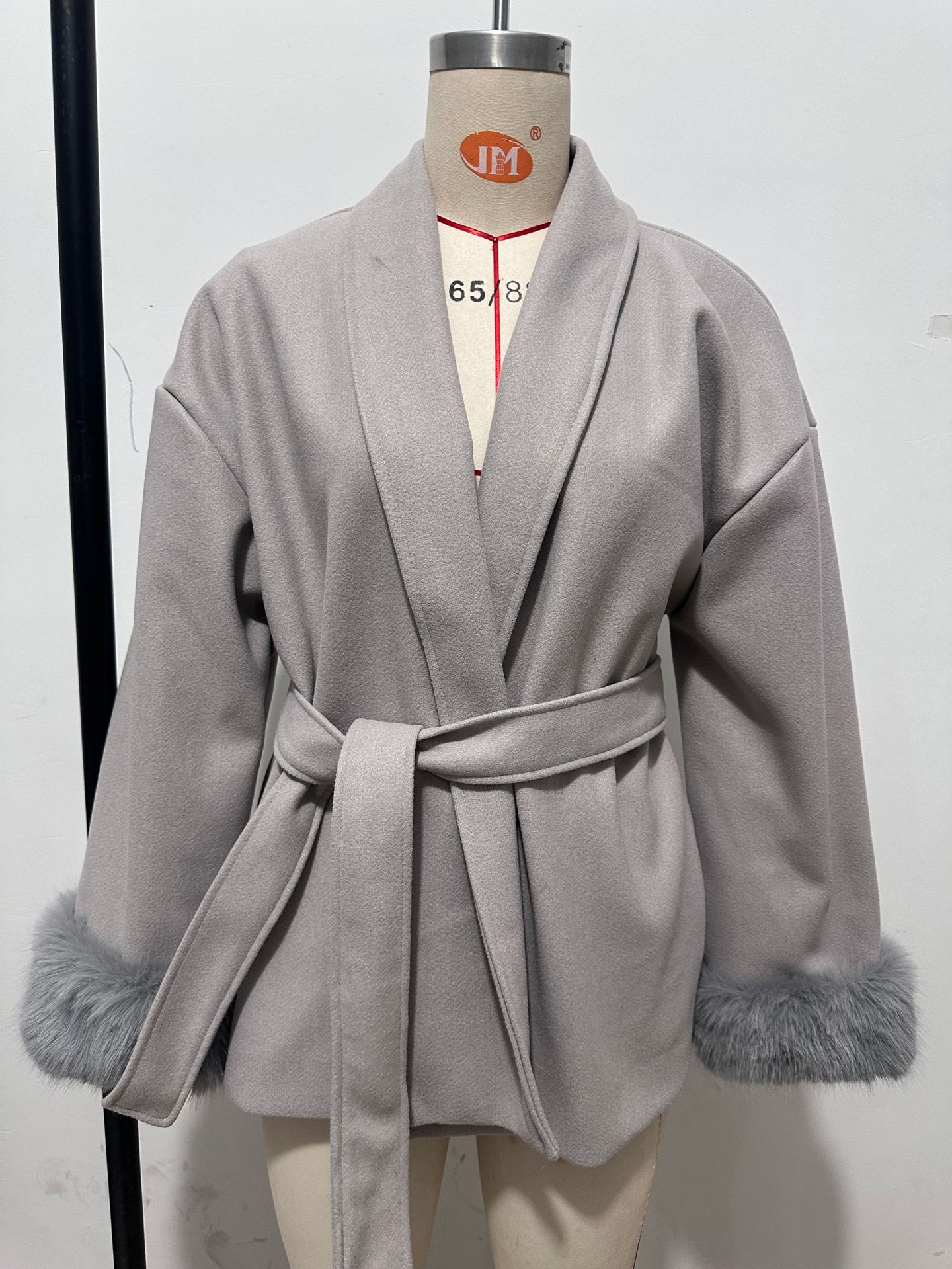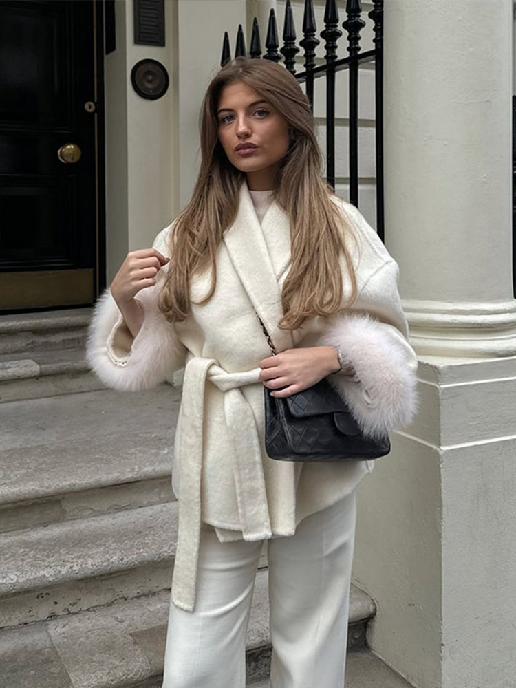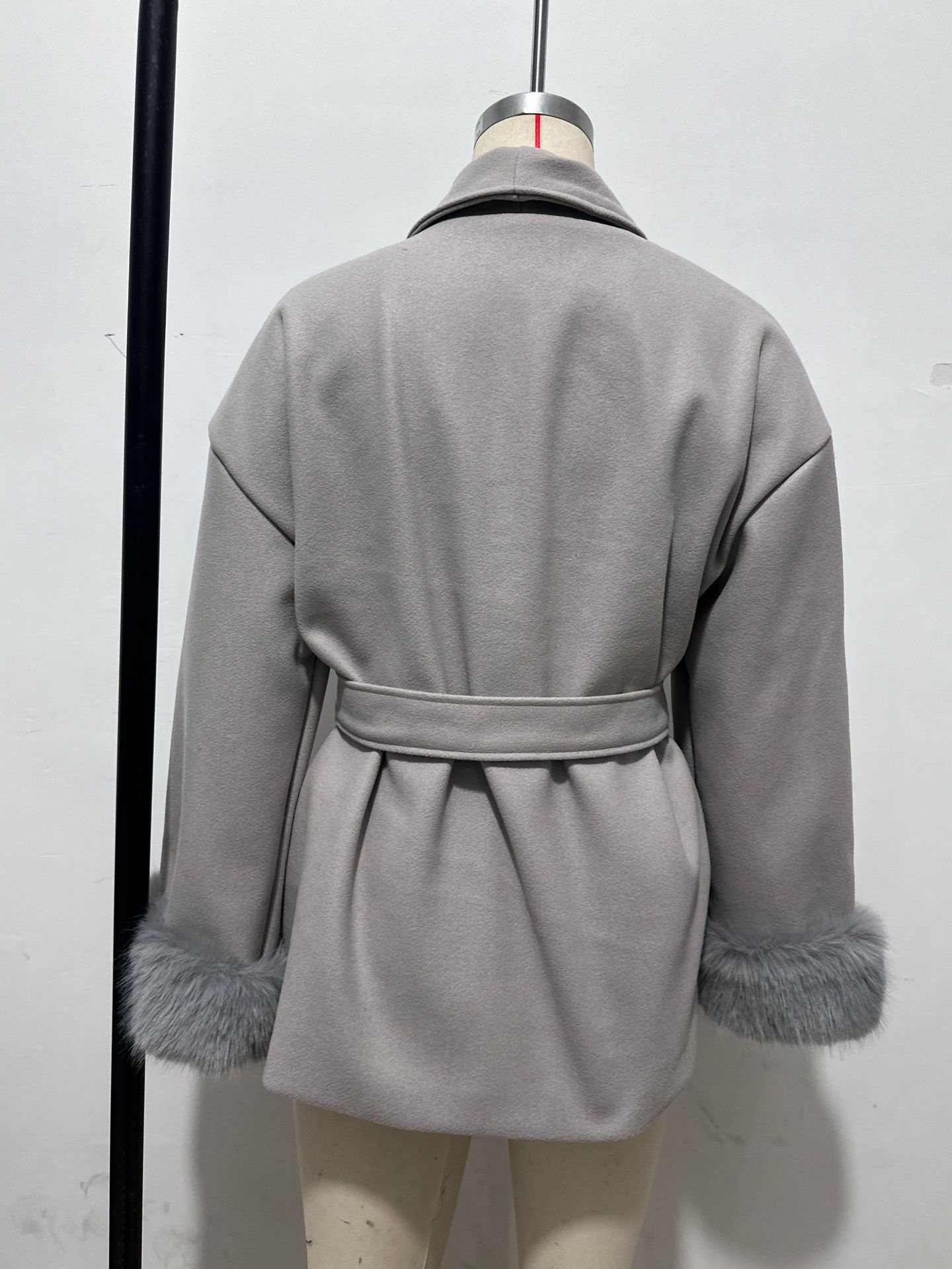 В наличии: Новая модель весна 2025 – элегантный пиджак с меховыми манжетами и отложным воротником для трансграничной торговли на платформах Amazon и других независимых площадках.